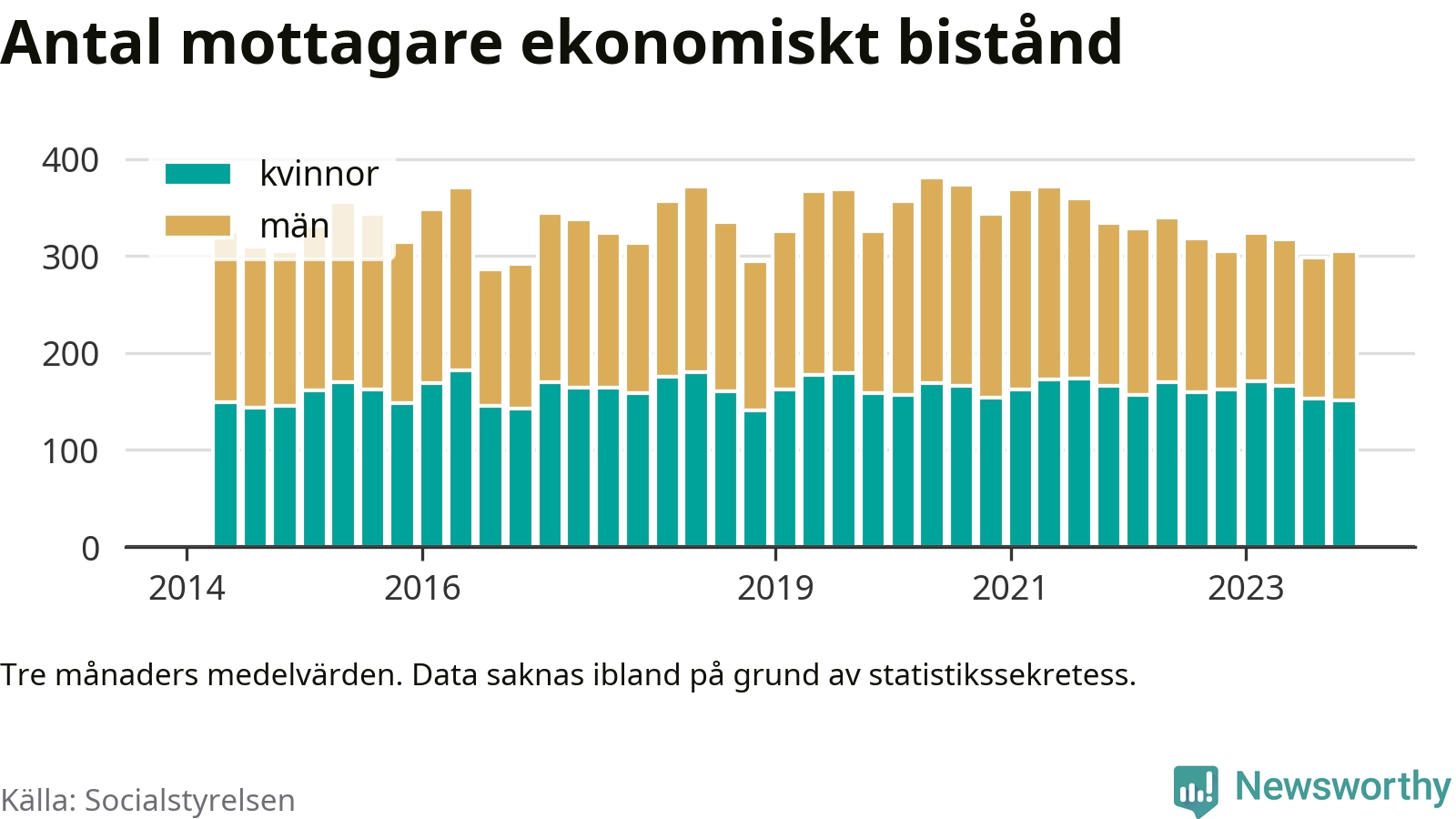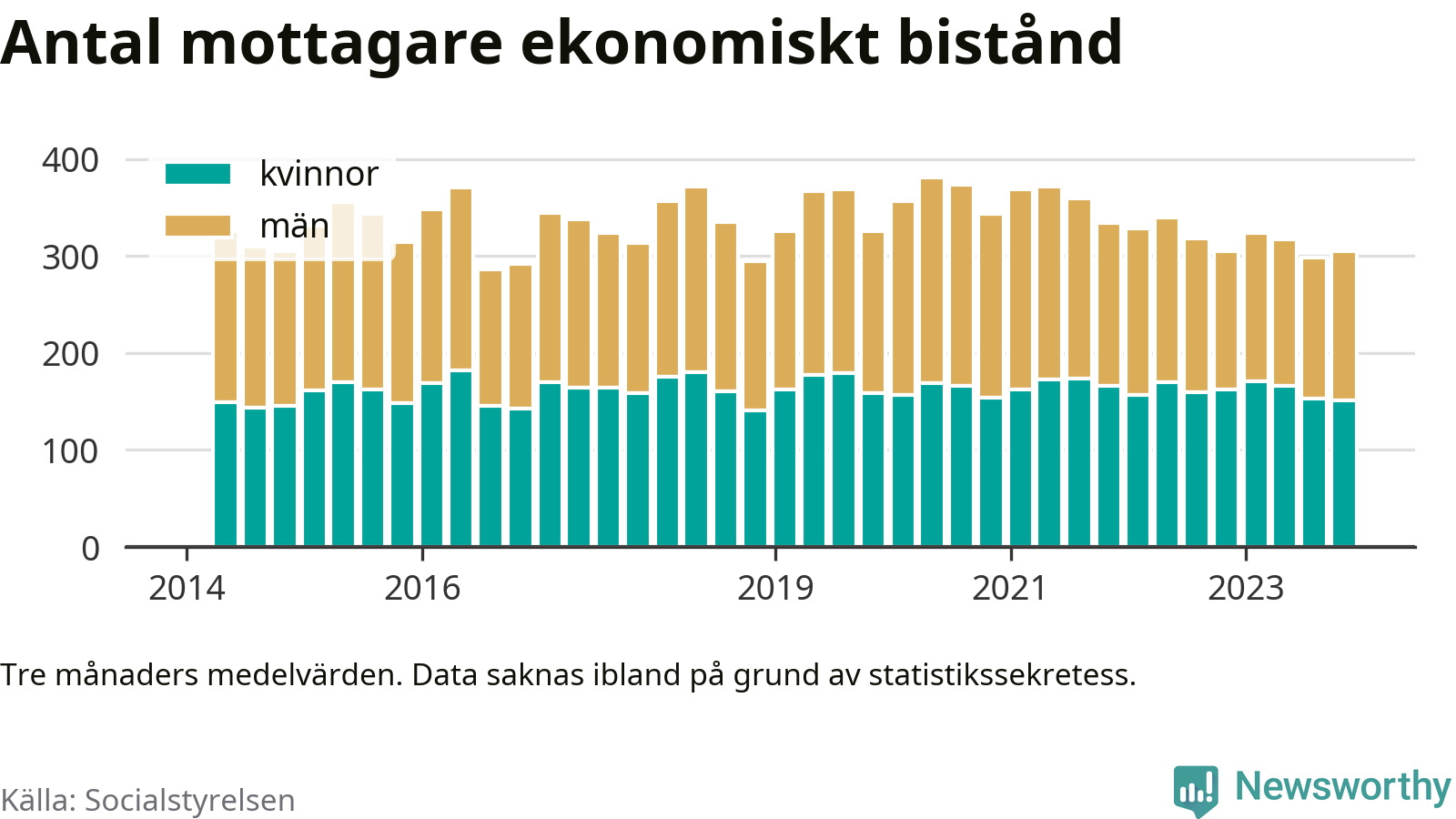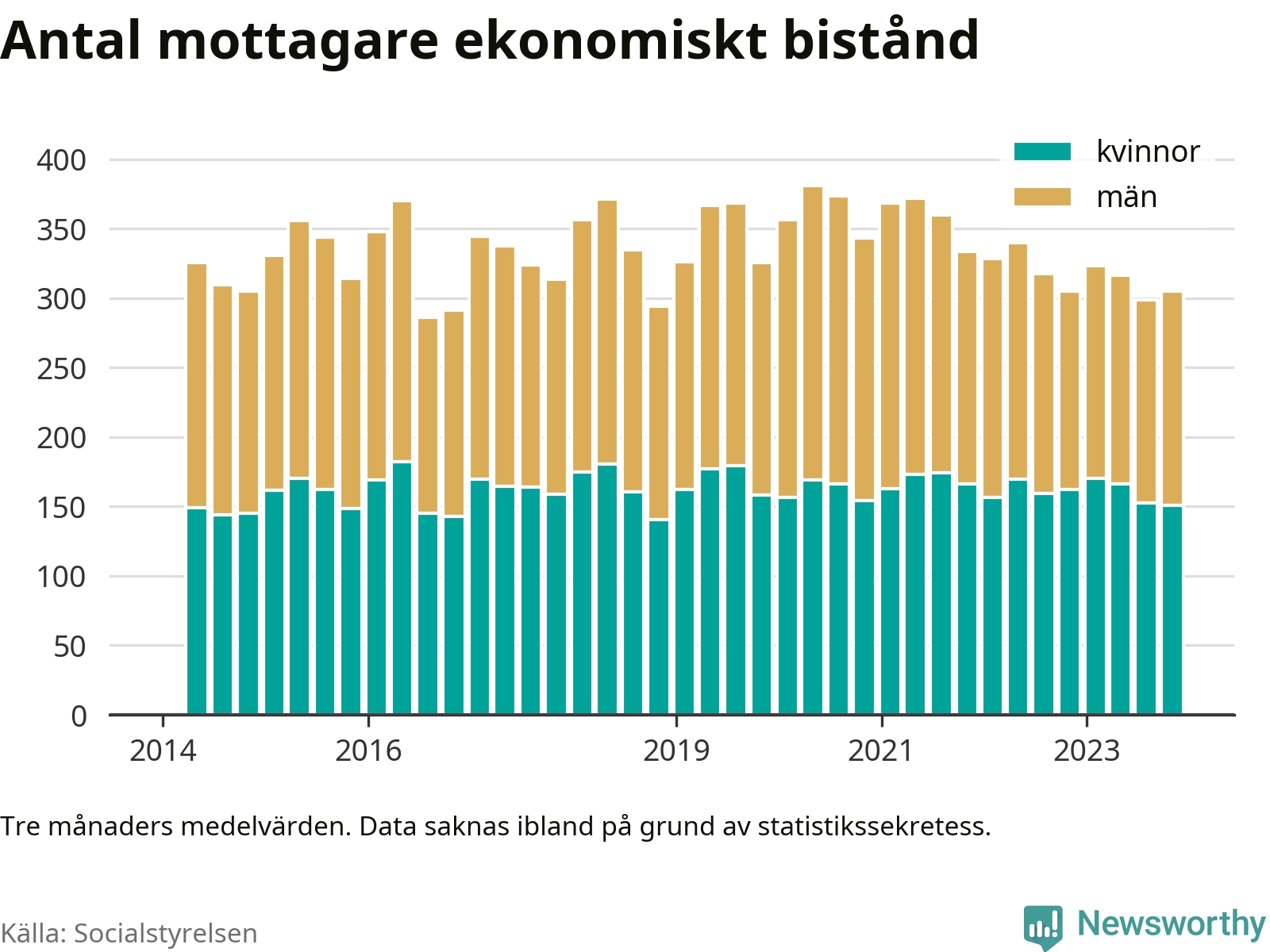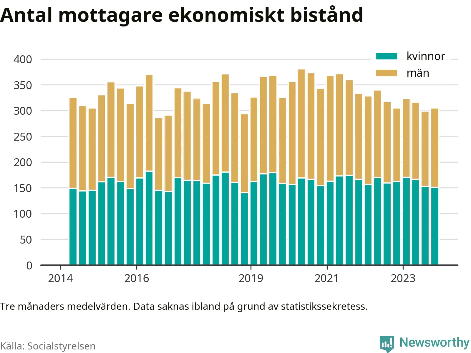 I genomsnitt 305 personer per månad fick ekonomiskt bistånd i Vetlanda kommun