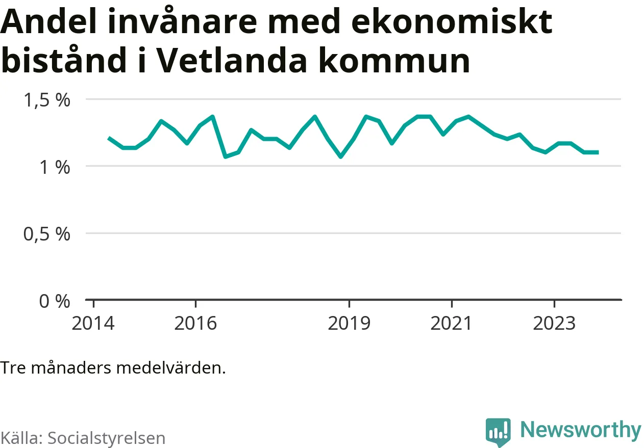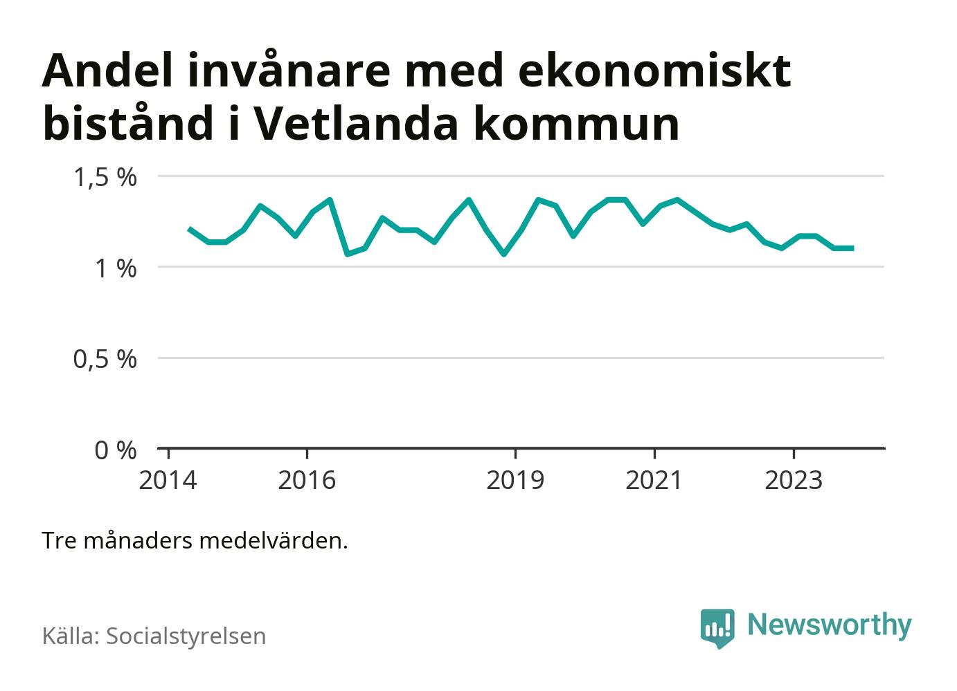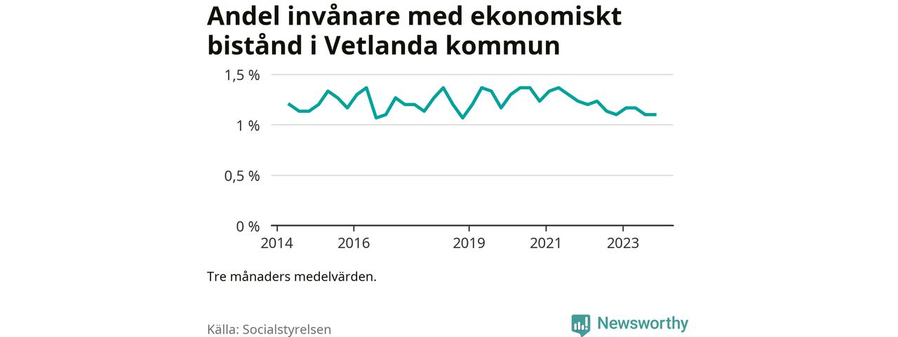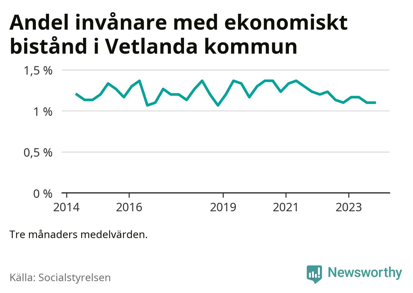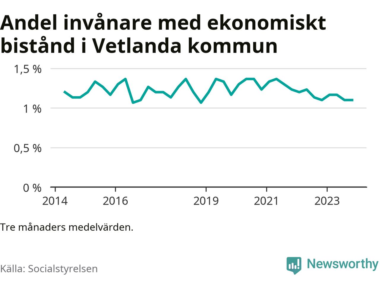 Andelen invånare med ekonomiskt bistånd i Vetlanda kommun