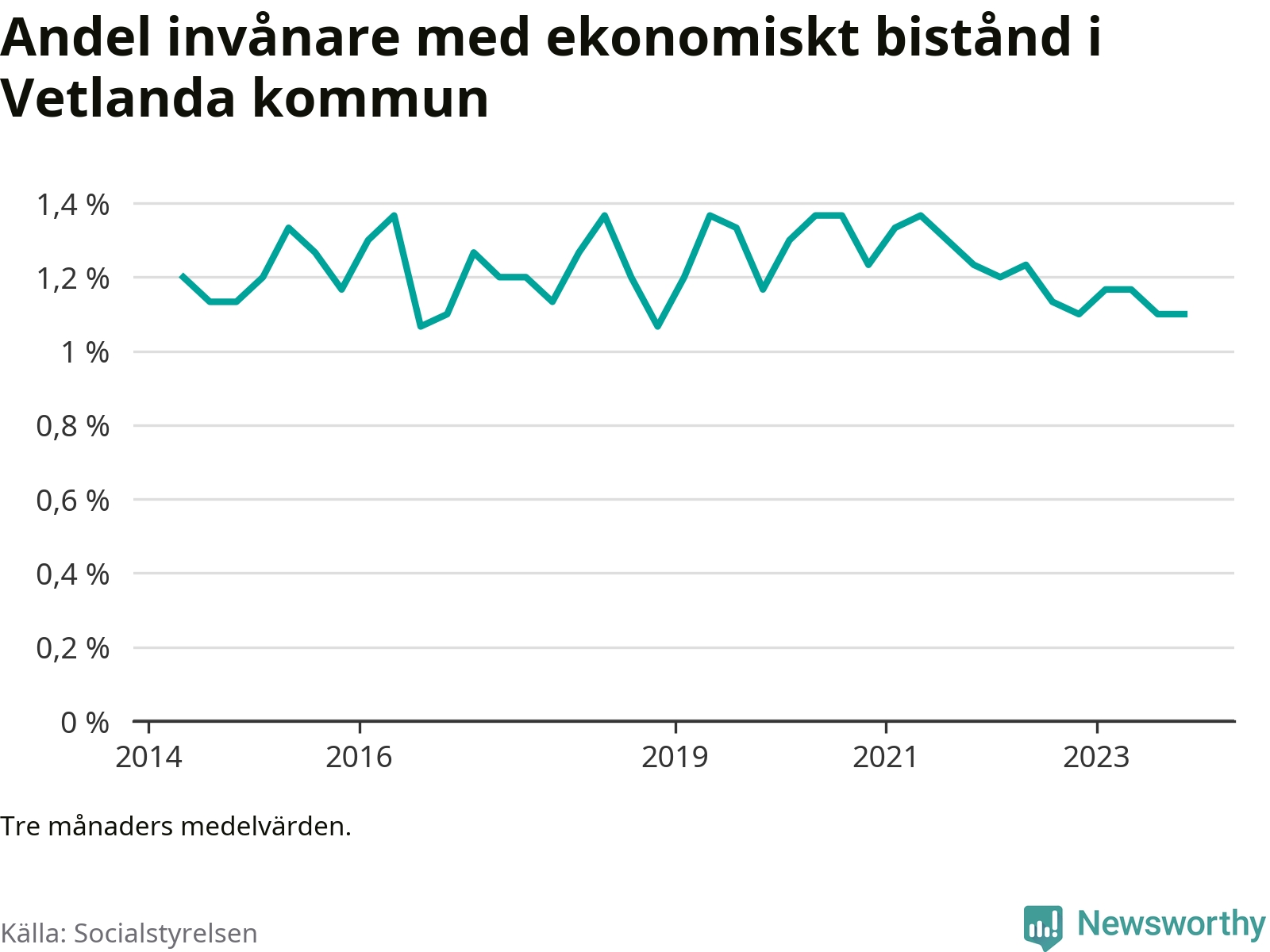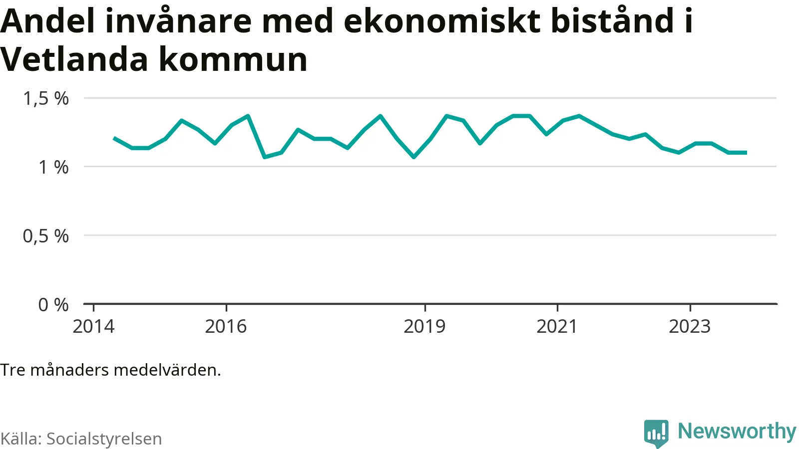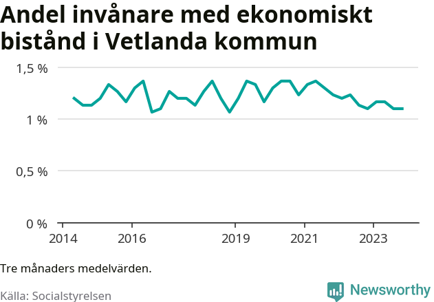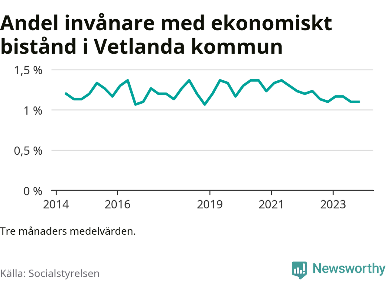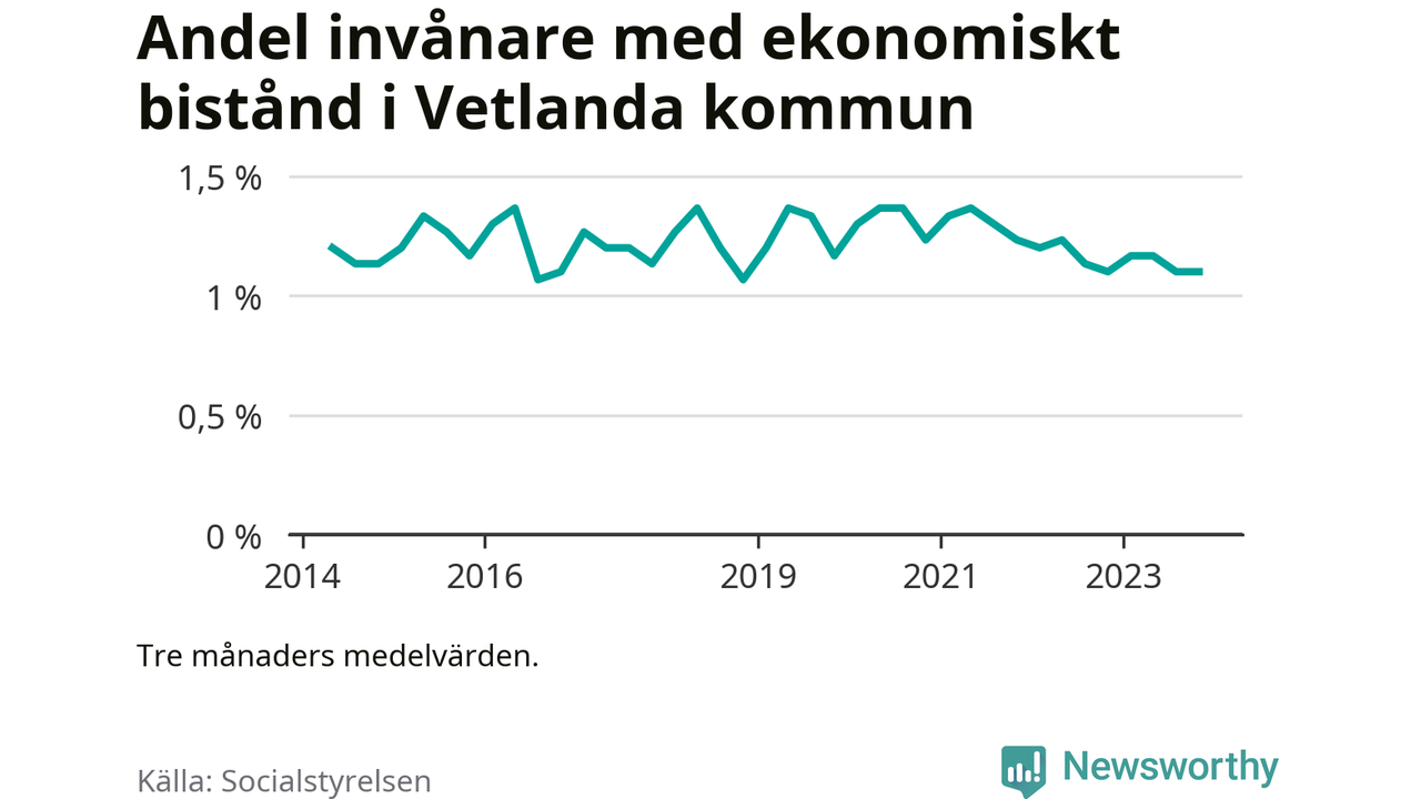 Andelen invånare med ekonomiskt bistånd i Vetlanda kommun