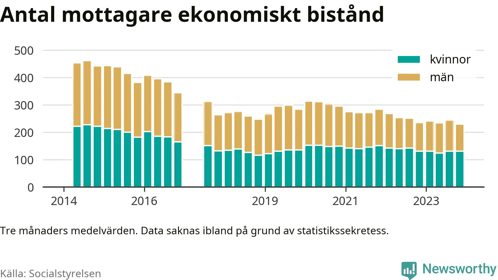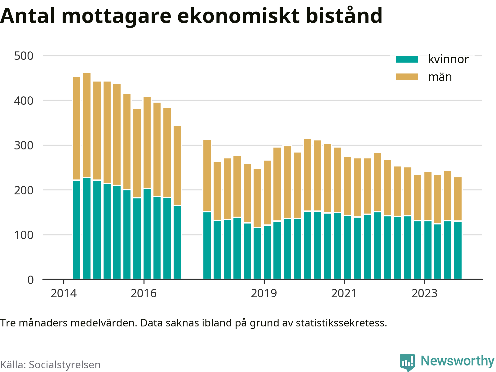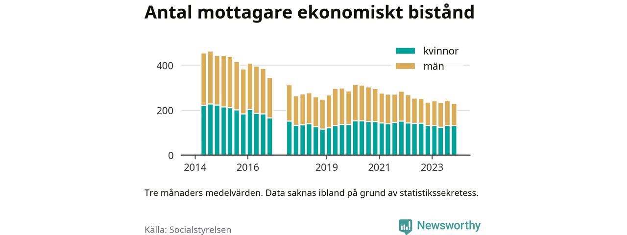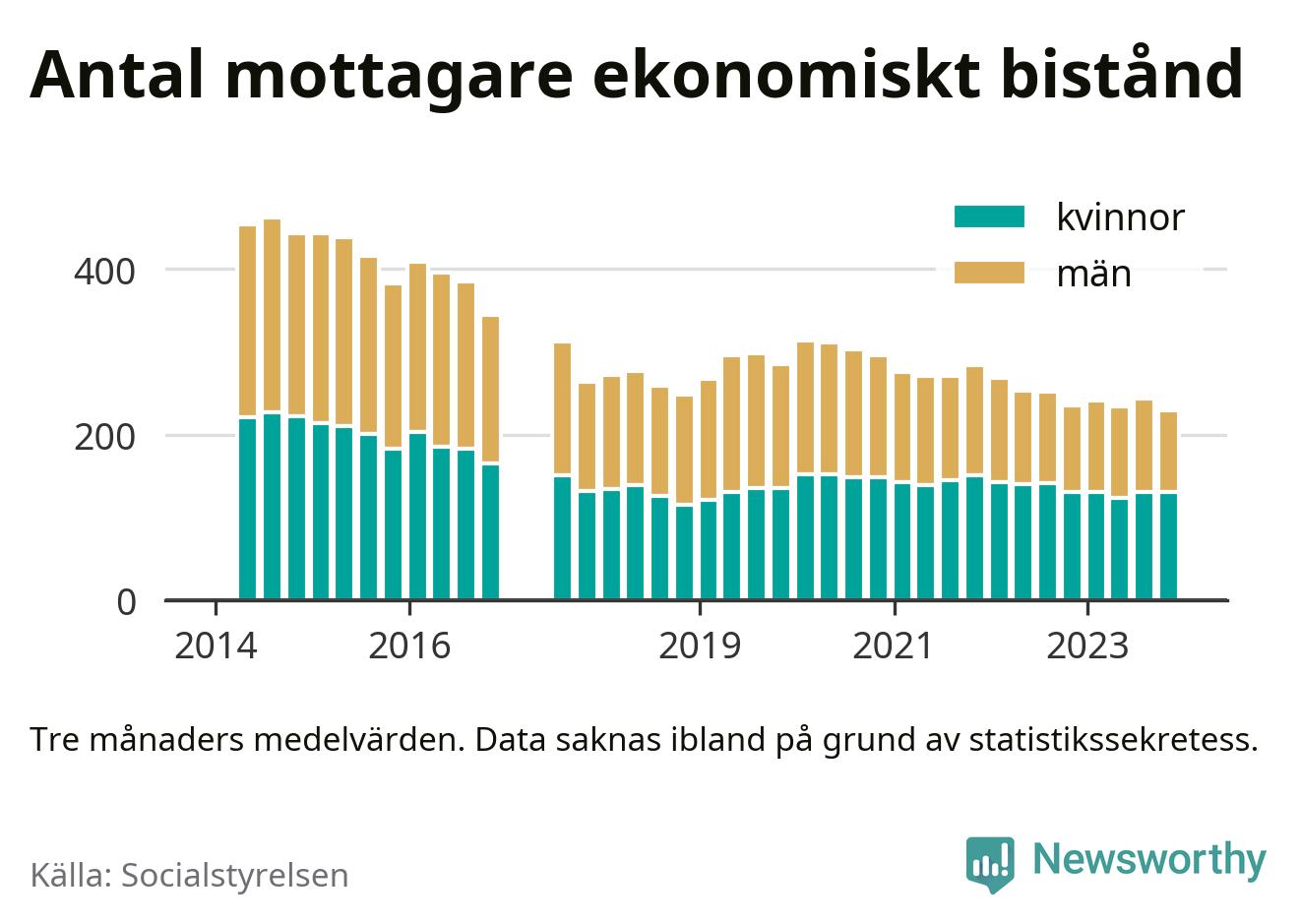 I genomsnitt 229 personer per månad fick ekonomiskt bistånd i Värnamo kommun