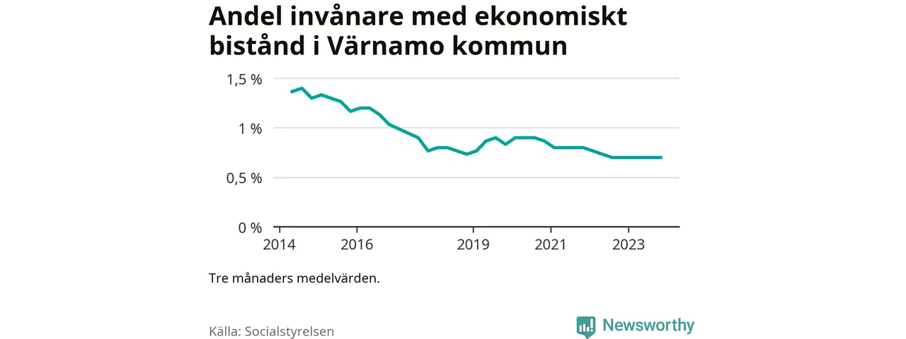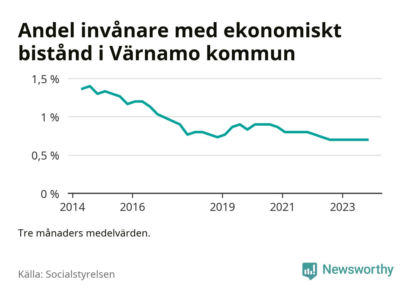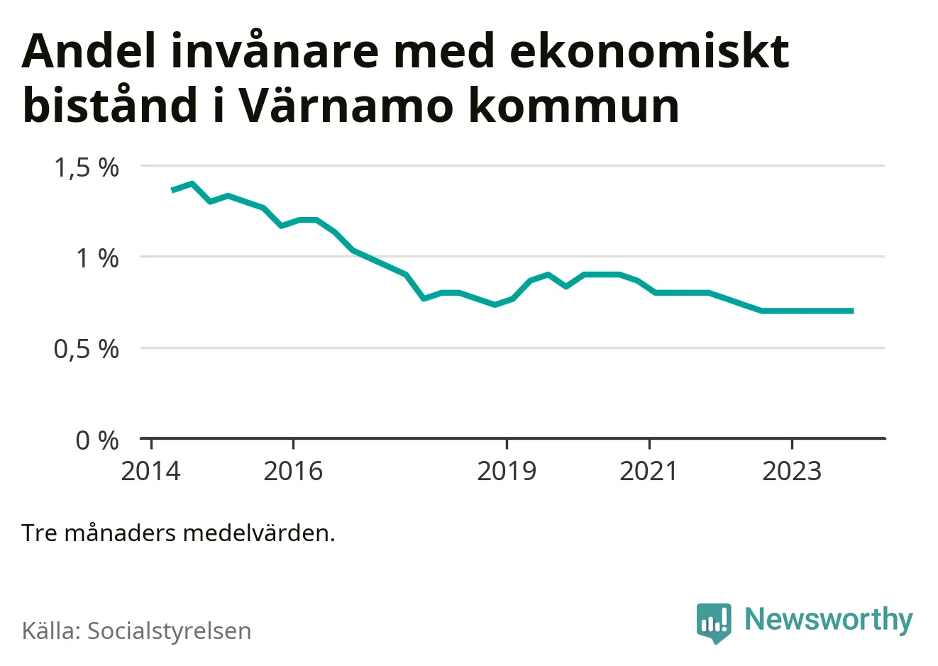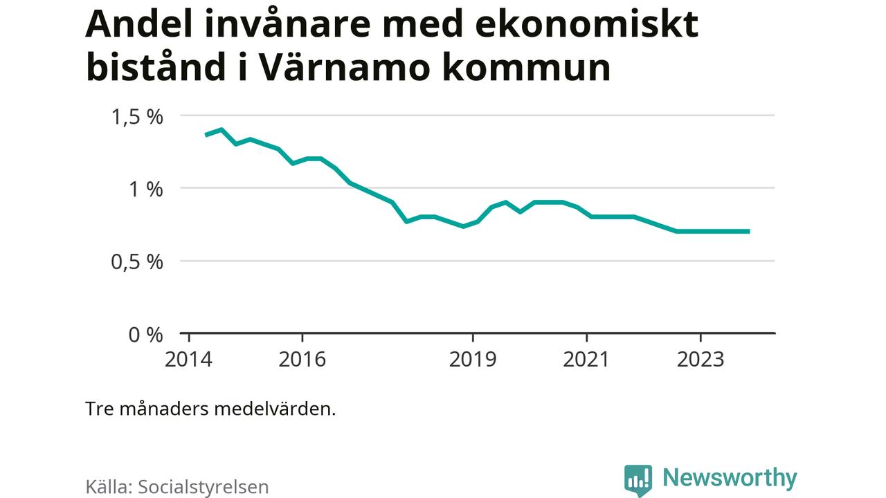 Andelen invånare med ekonomiskt bistånd i Värnamo kommun