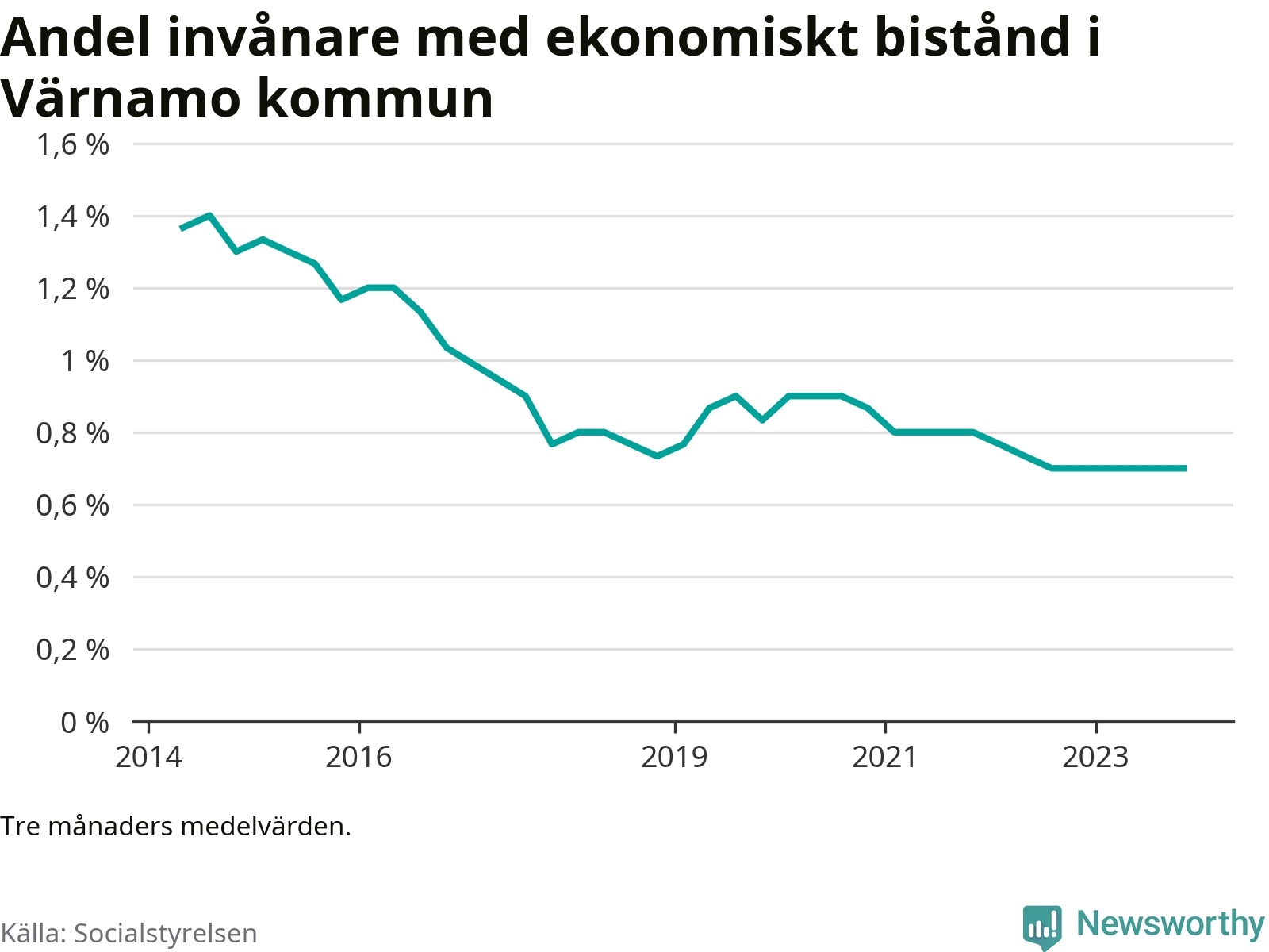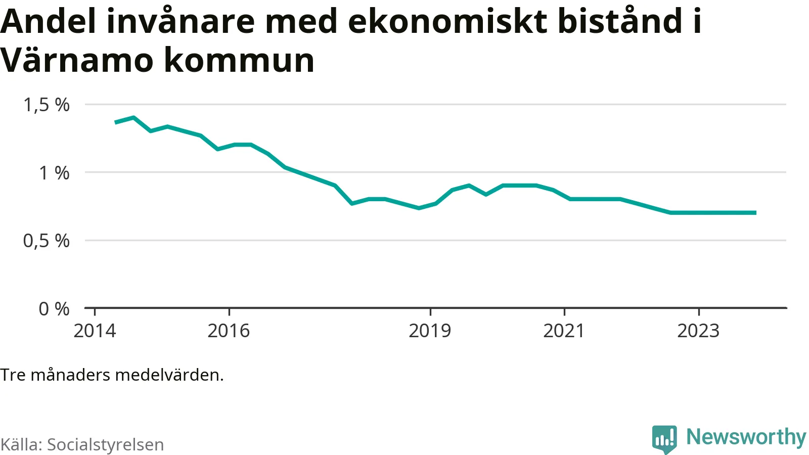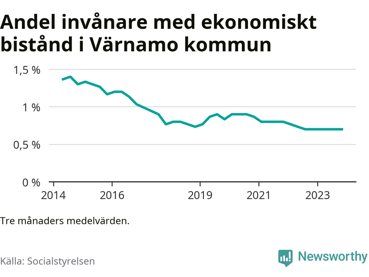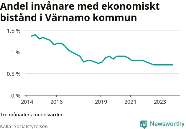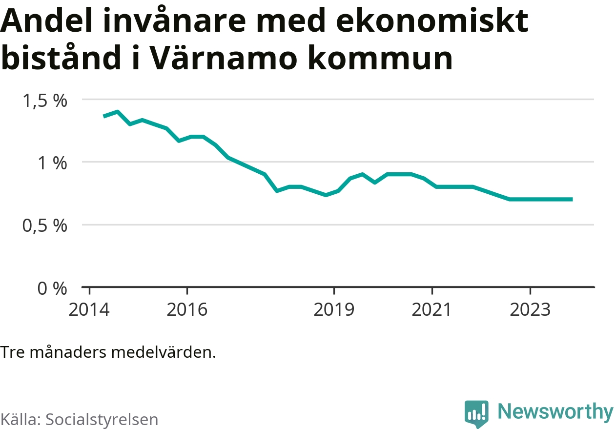 Andelen invånare med ekonomiskt bistånd i Värnamo kommun