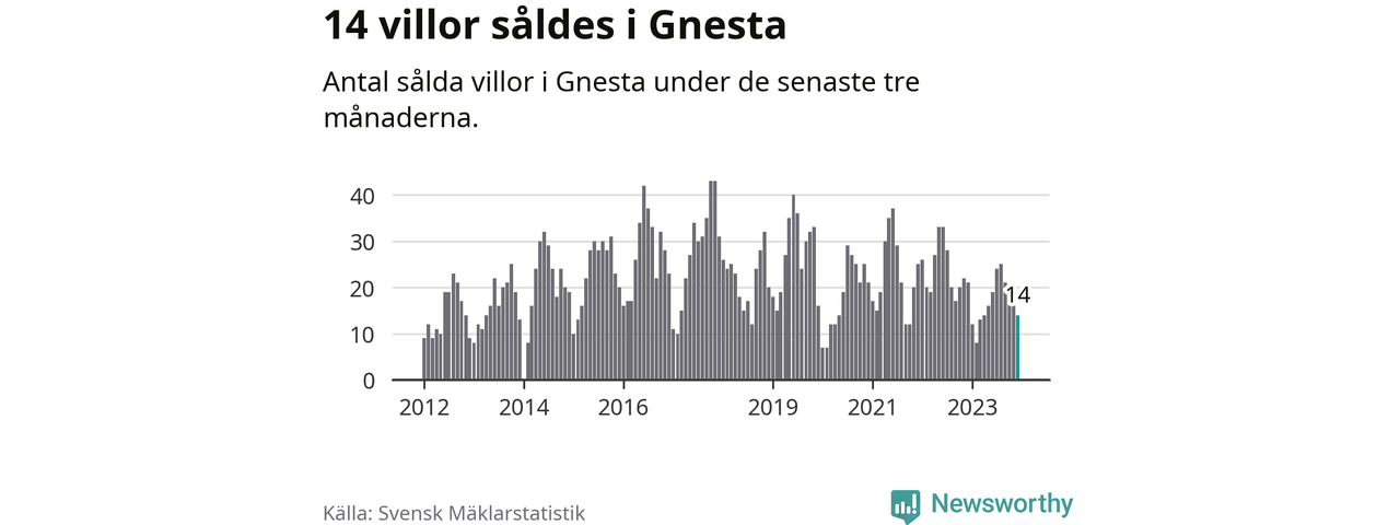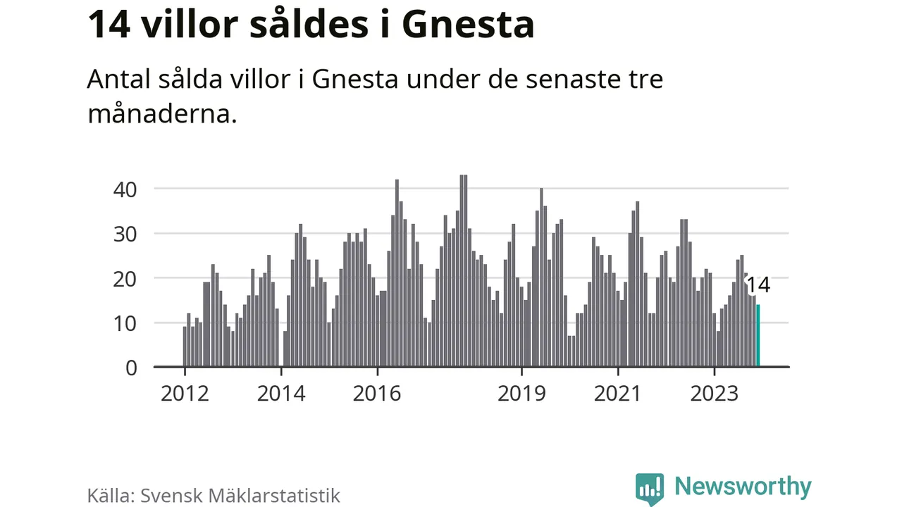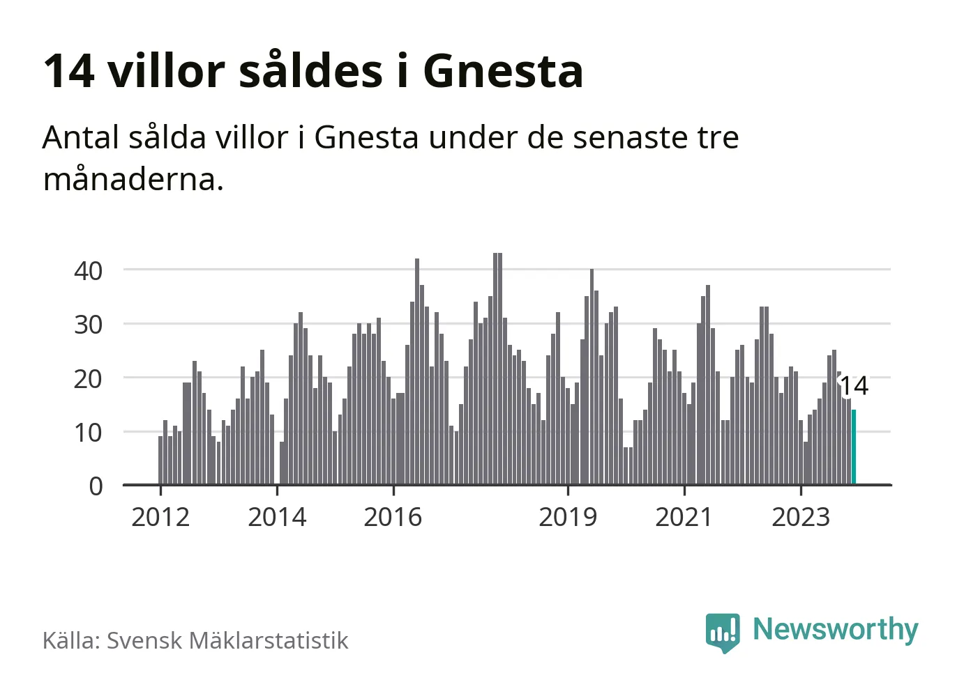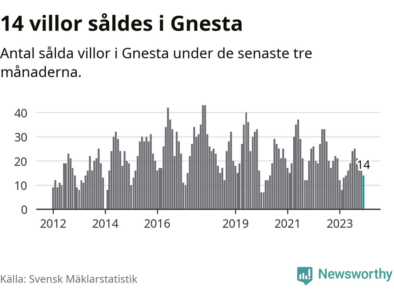 Mellan oktober och december gjordes sammanlagt 14 affärer med villor i Gnesta kommun. Det kan jämföras med 21 vid motsvarande tid i fjol.
