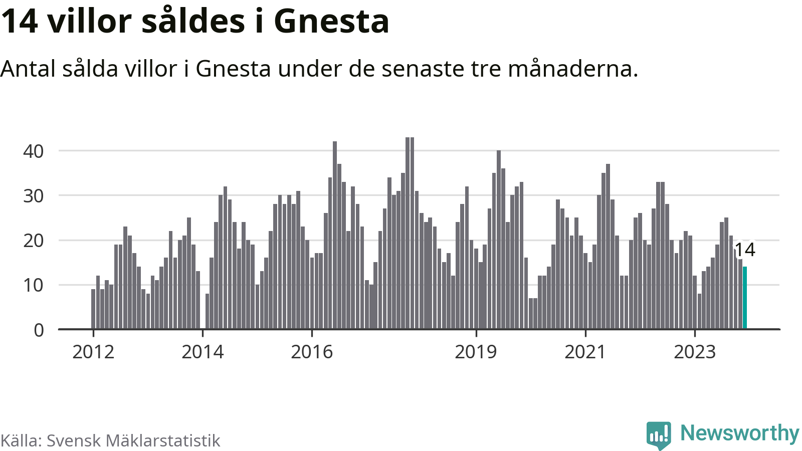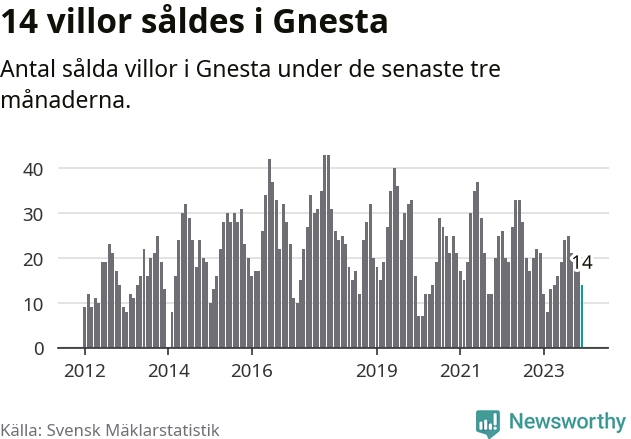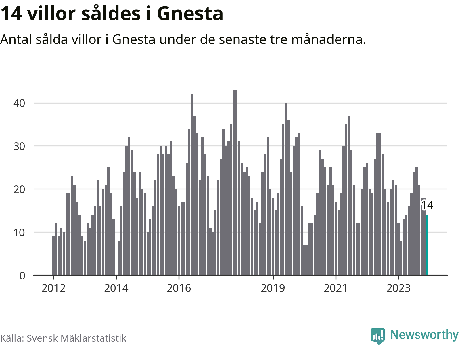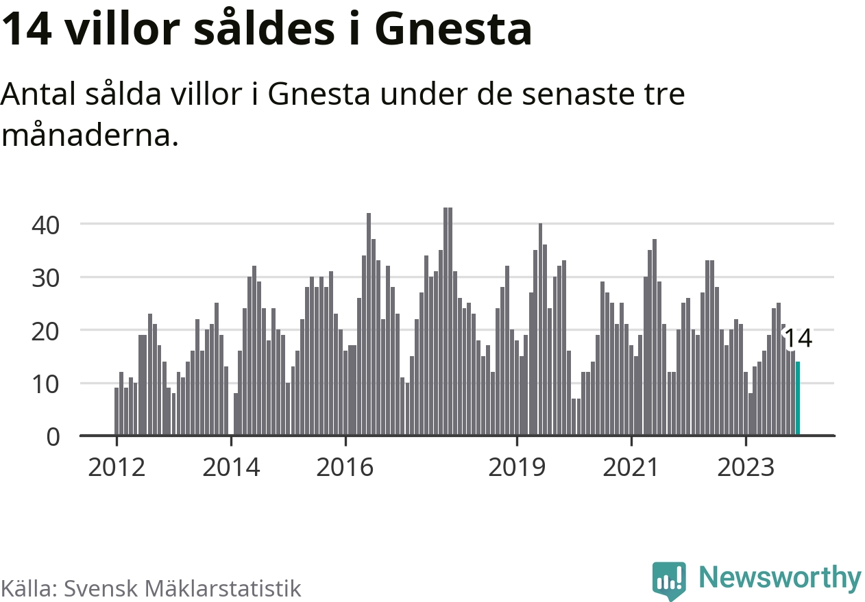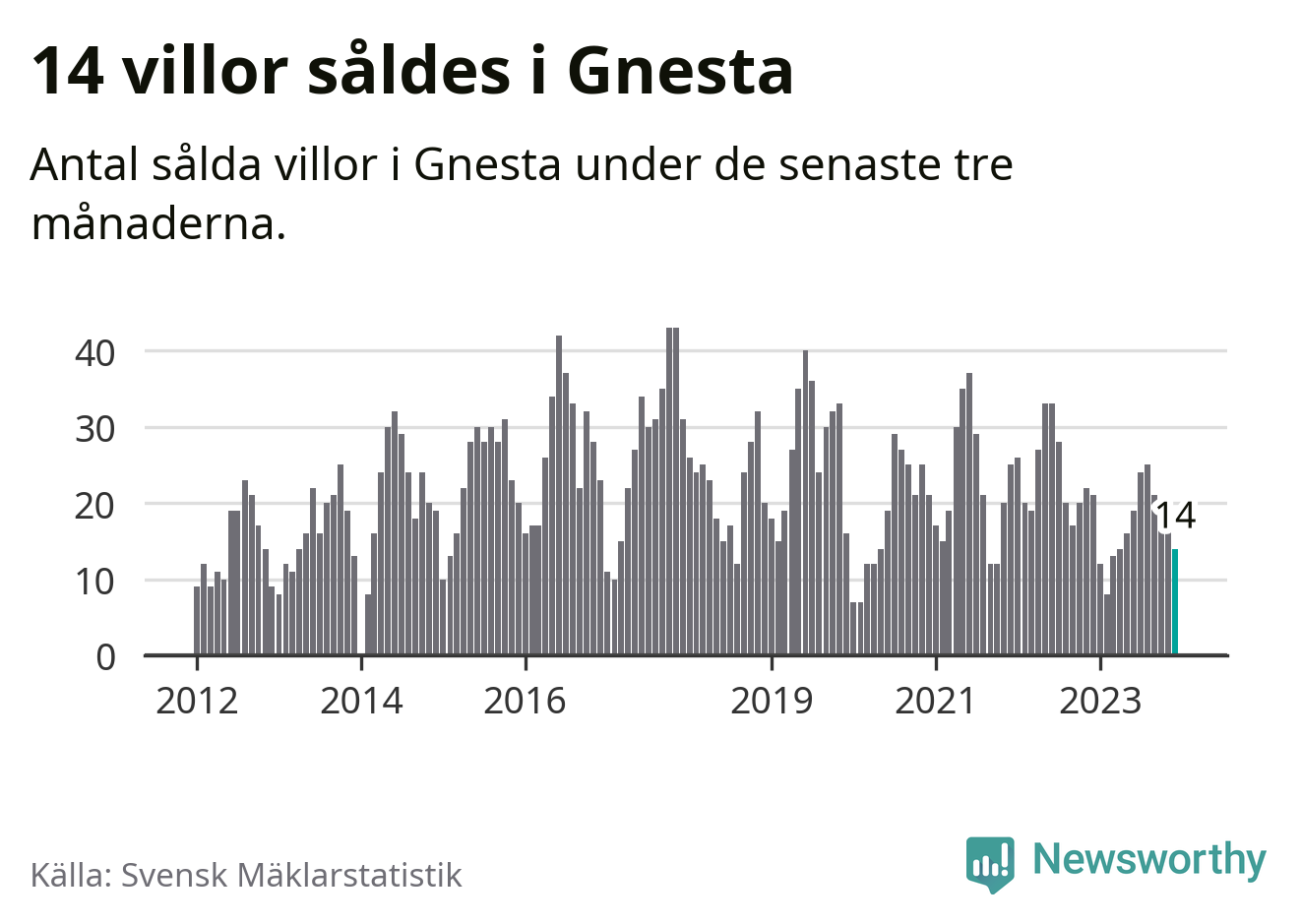Mellan oktober och december gjordes sammanlagt 14 affärer med villor i Gnesta kommun. Det kan jämföras med 21 vid motsvarande tid i fjol.