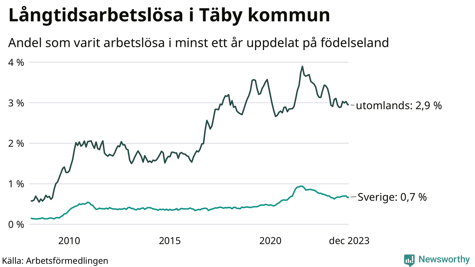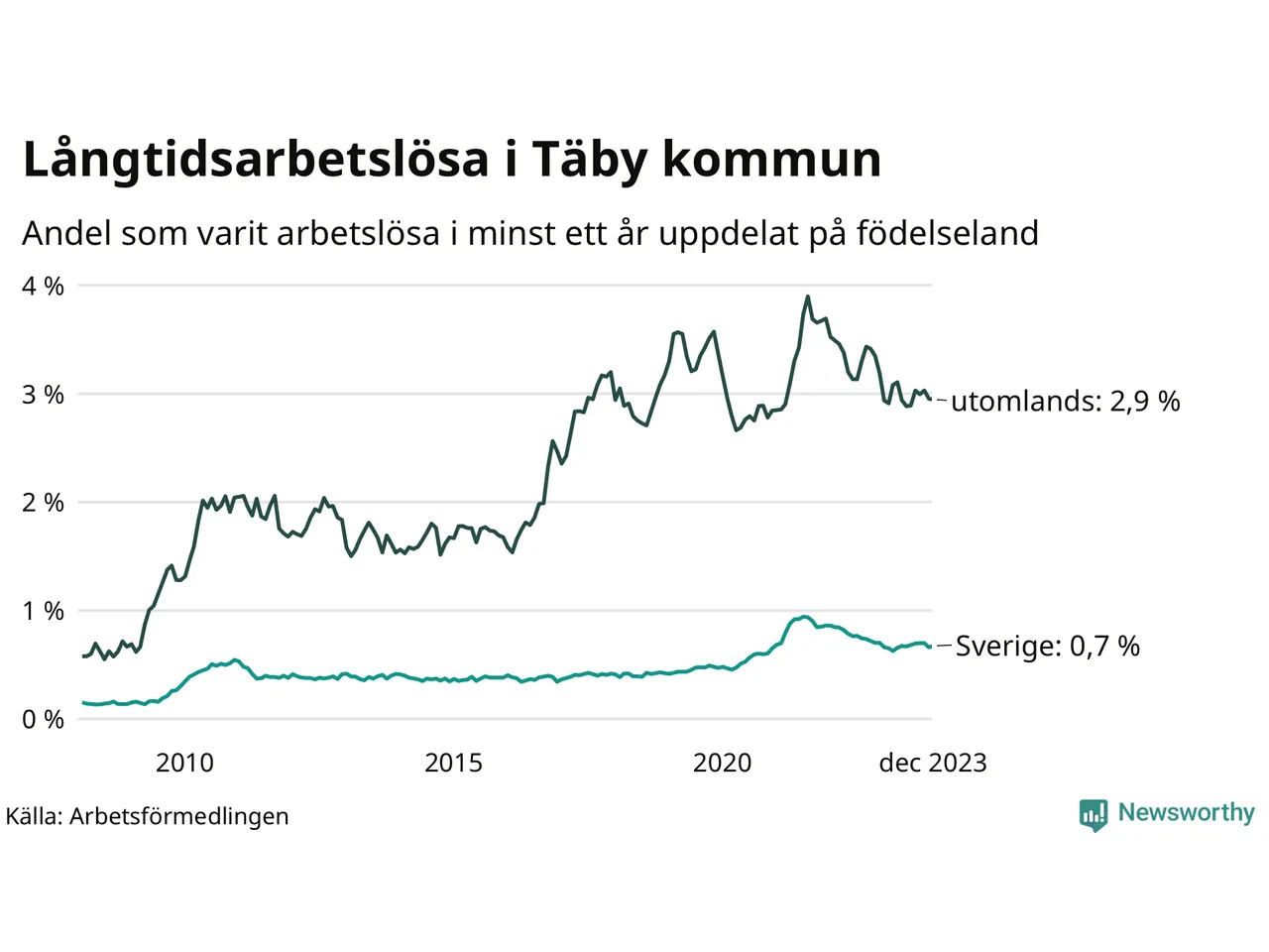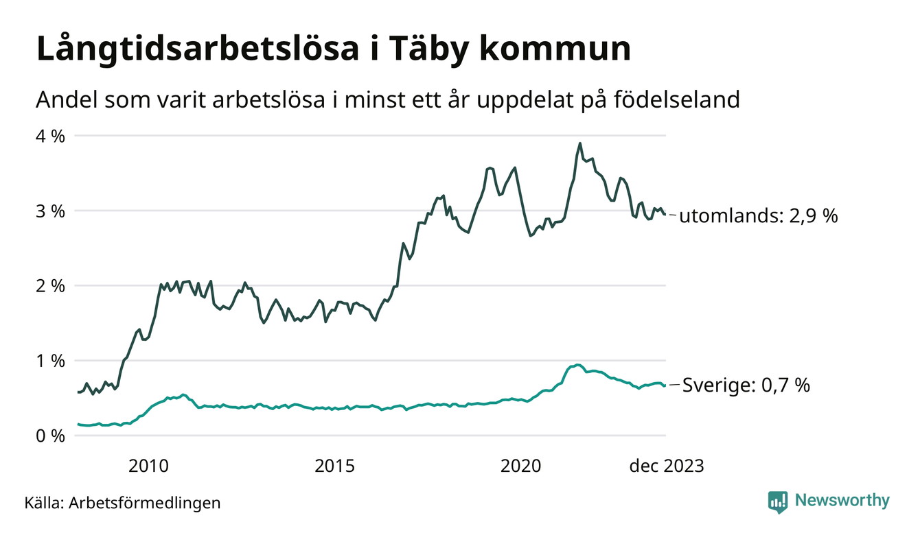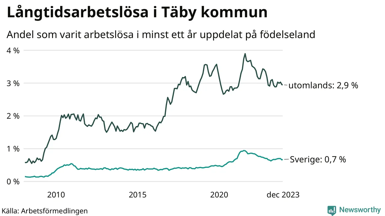 Långtidsarbetslöshet i Täby i december 2023