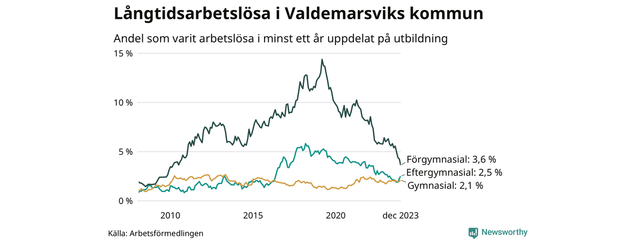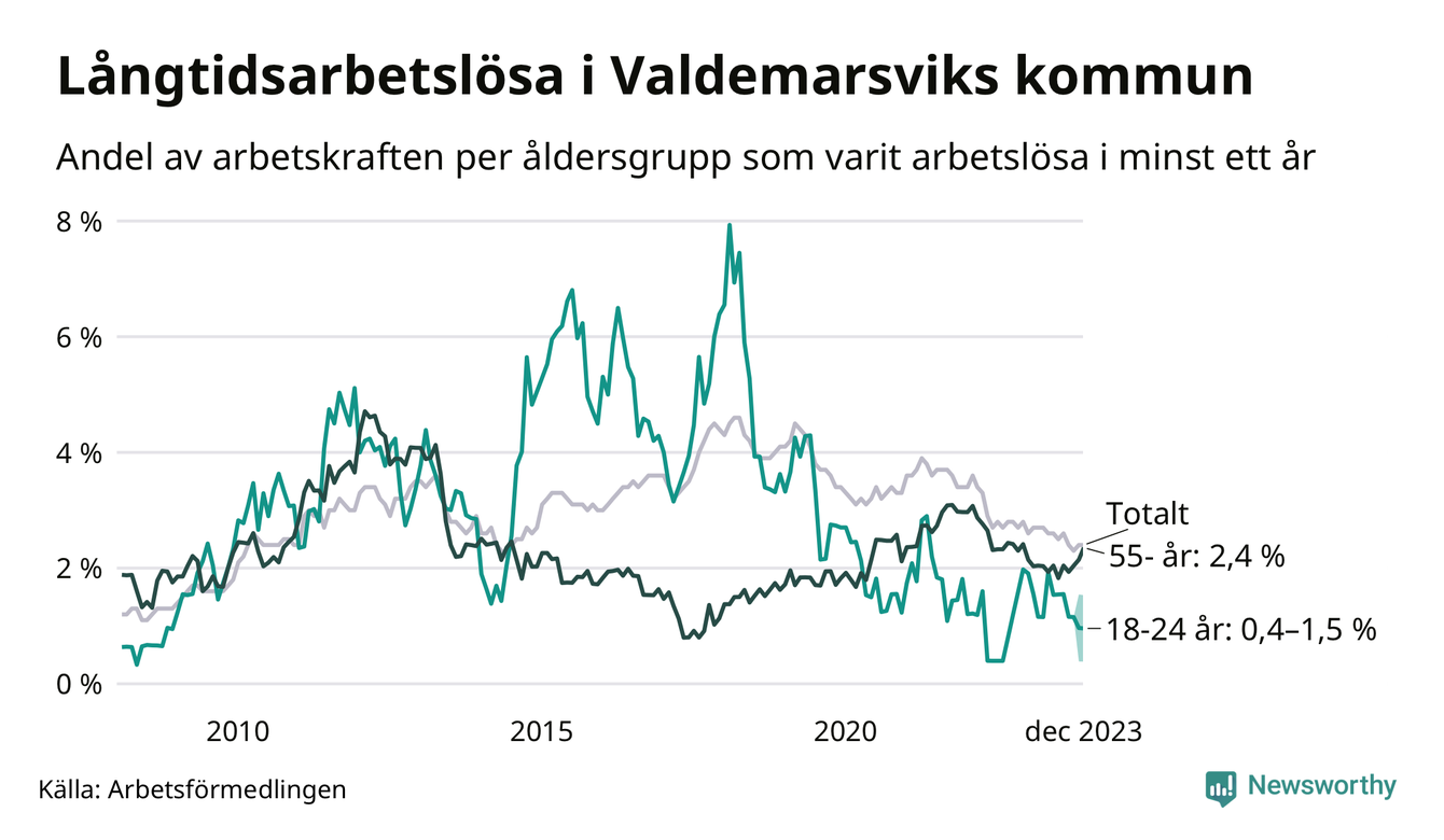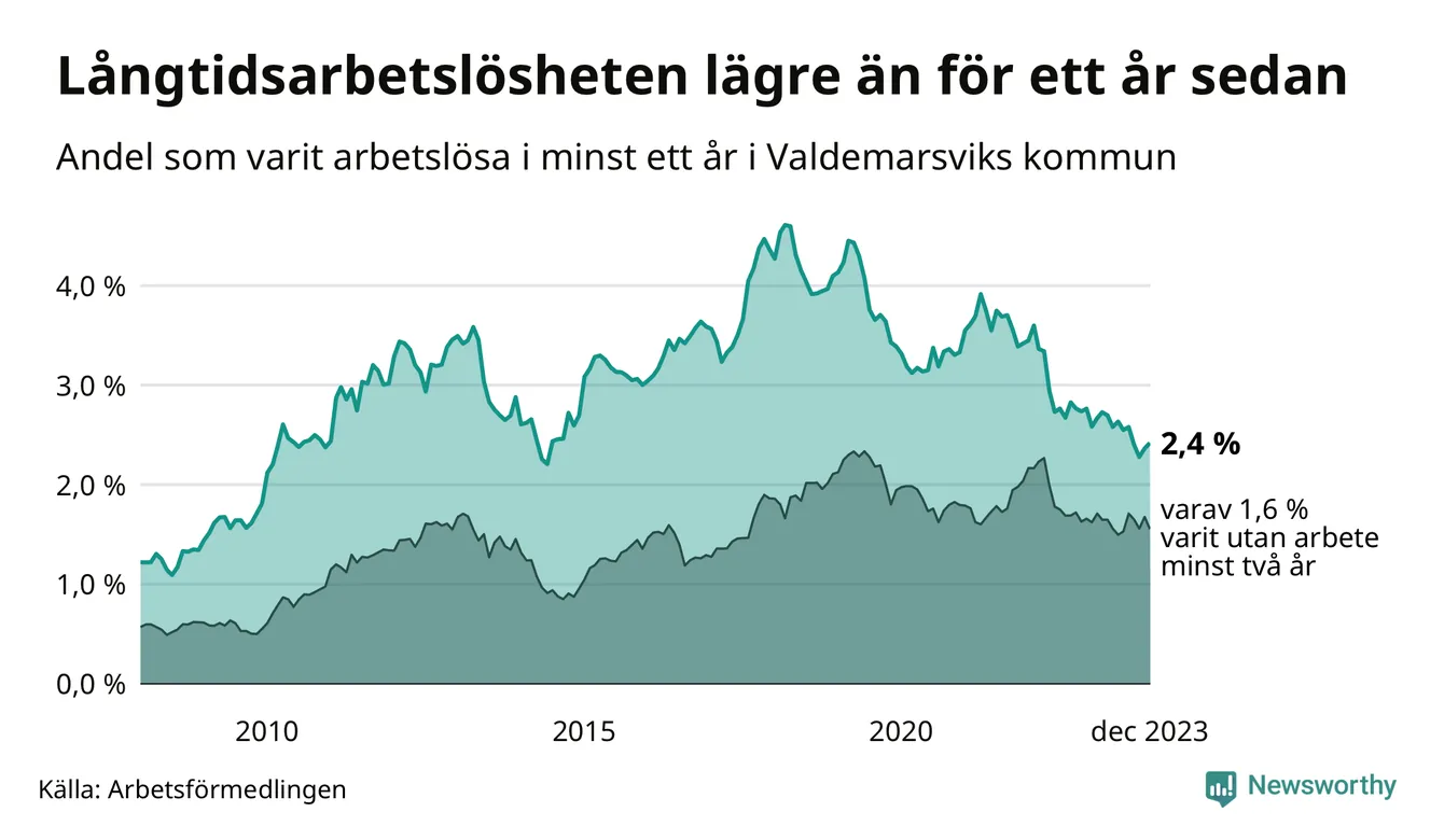 Långtidsarbetslöshet i Valdemarsvik i december 2023