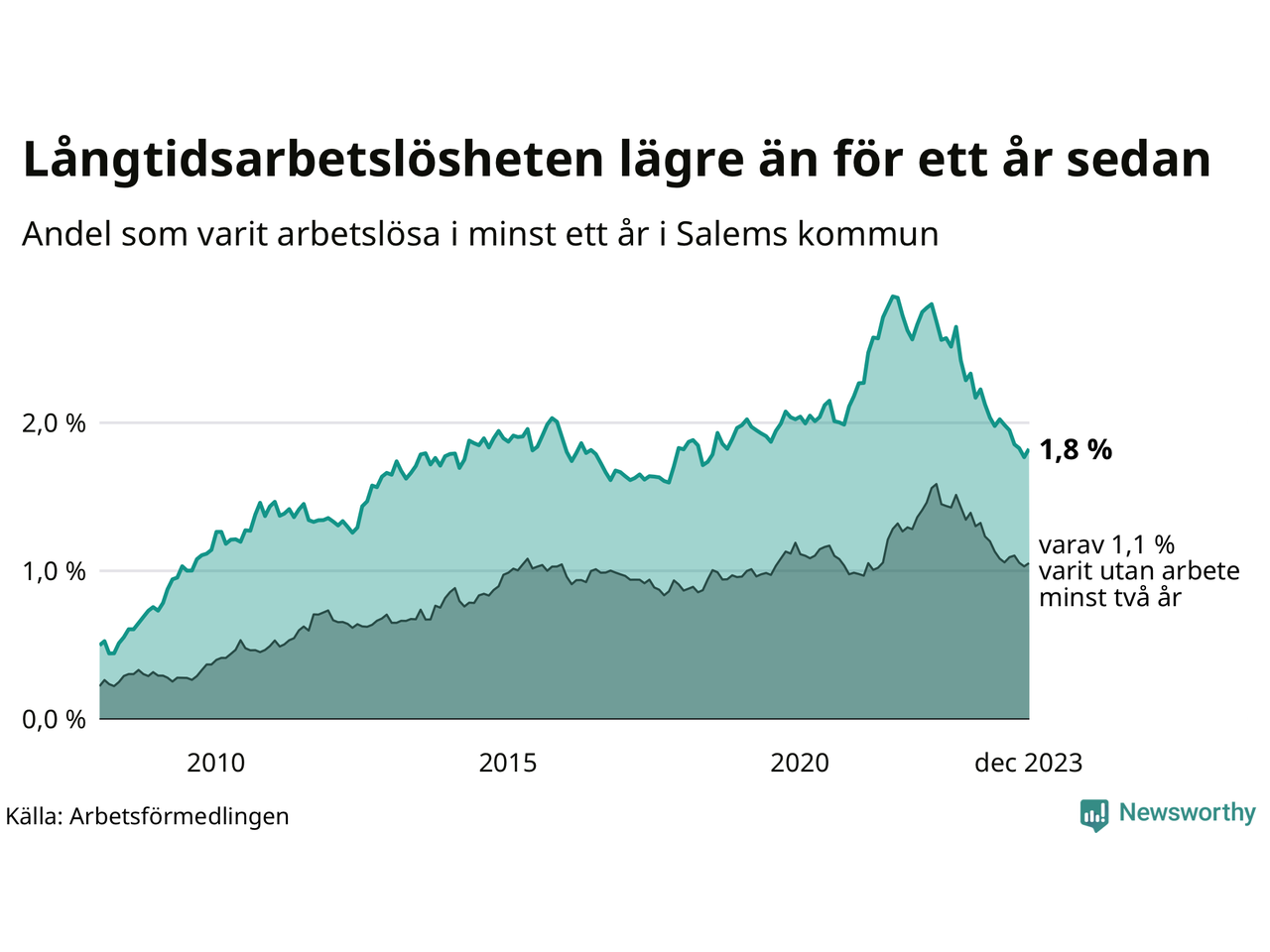 Andel arbetslösa i minst ett år 1,8 % 2,6 % 2,7 %