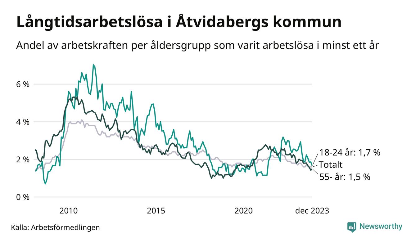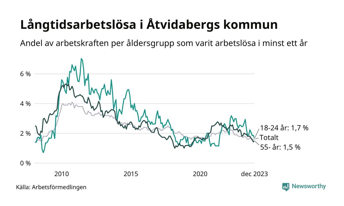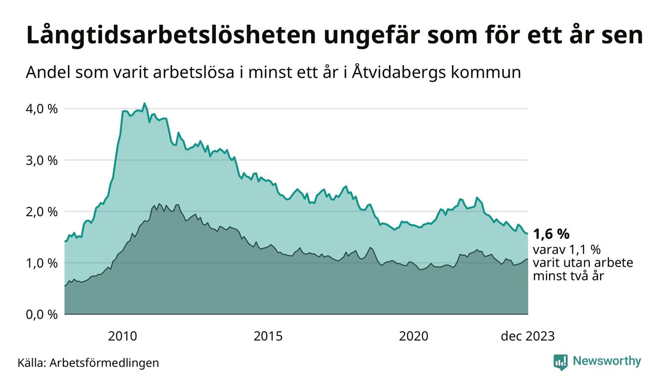 | Andel arbetslösa i minst två år | 1,1 % | 1,8 % | 1,5 % |