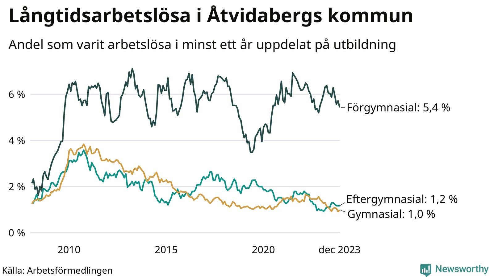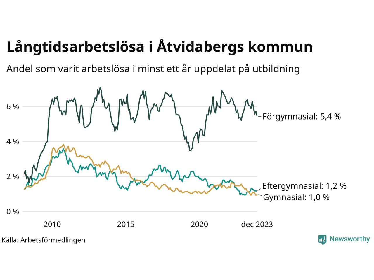 | Andel arbetslösa i minst ett år | 1,6 % | 3,0 % | 2,7 % |