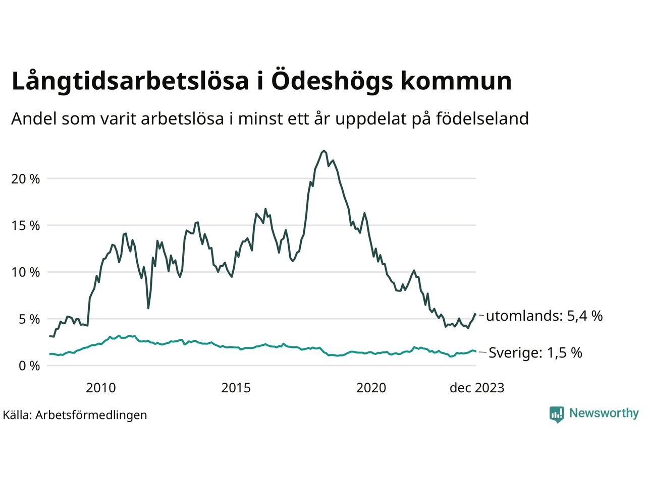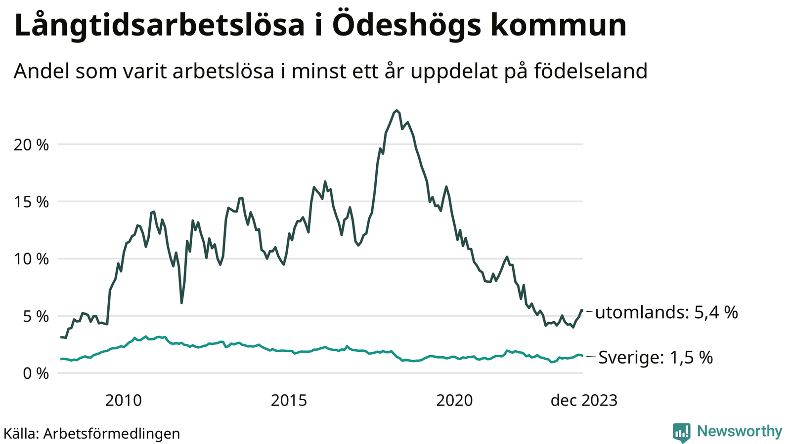 Graf: Andel arbetslösa uppdelat på födelseland i Ödeshög