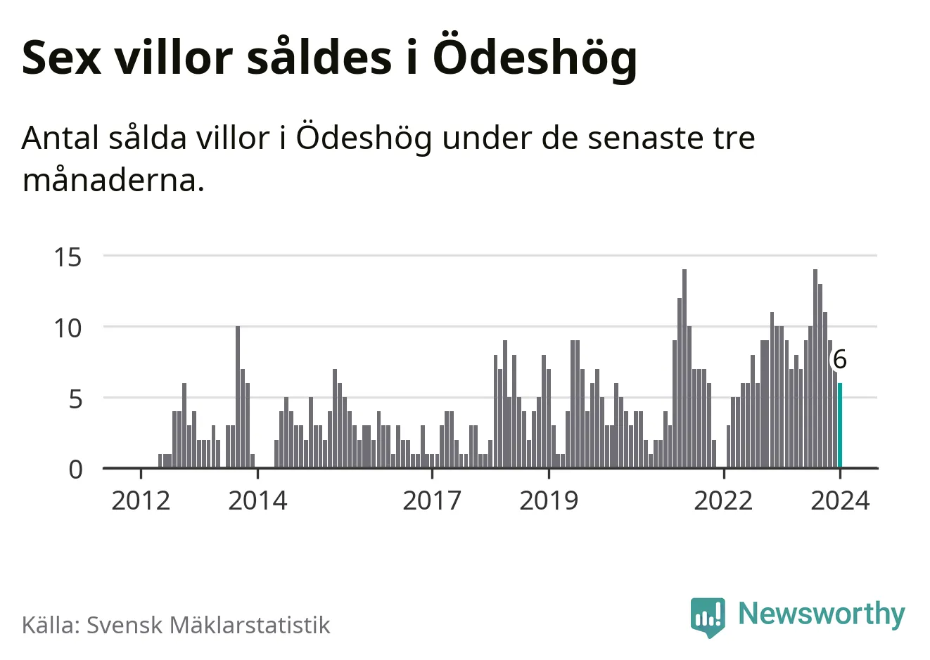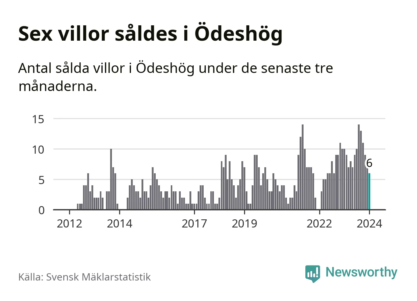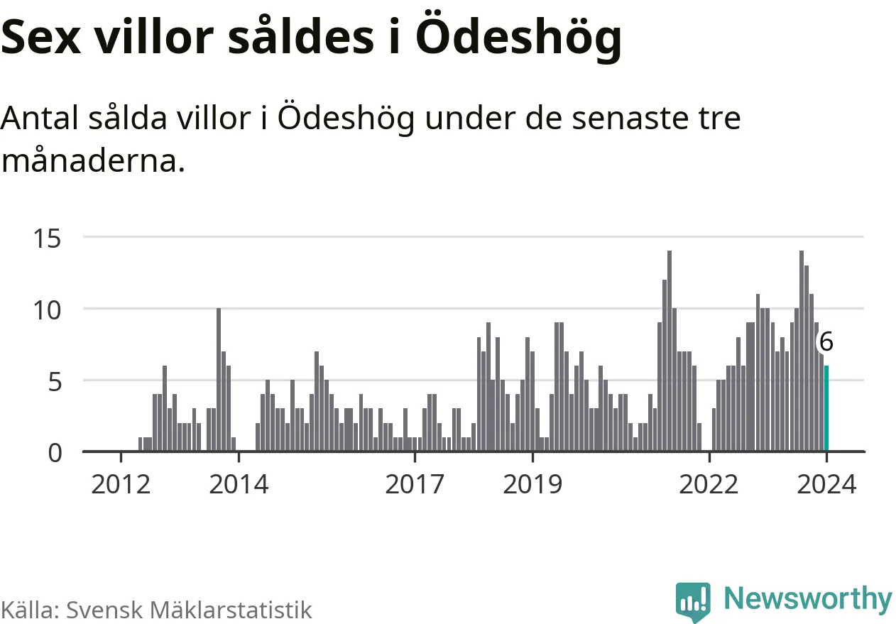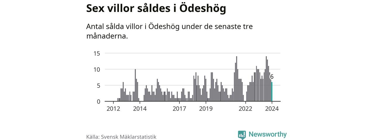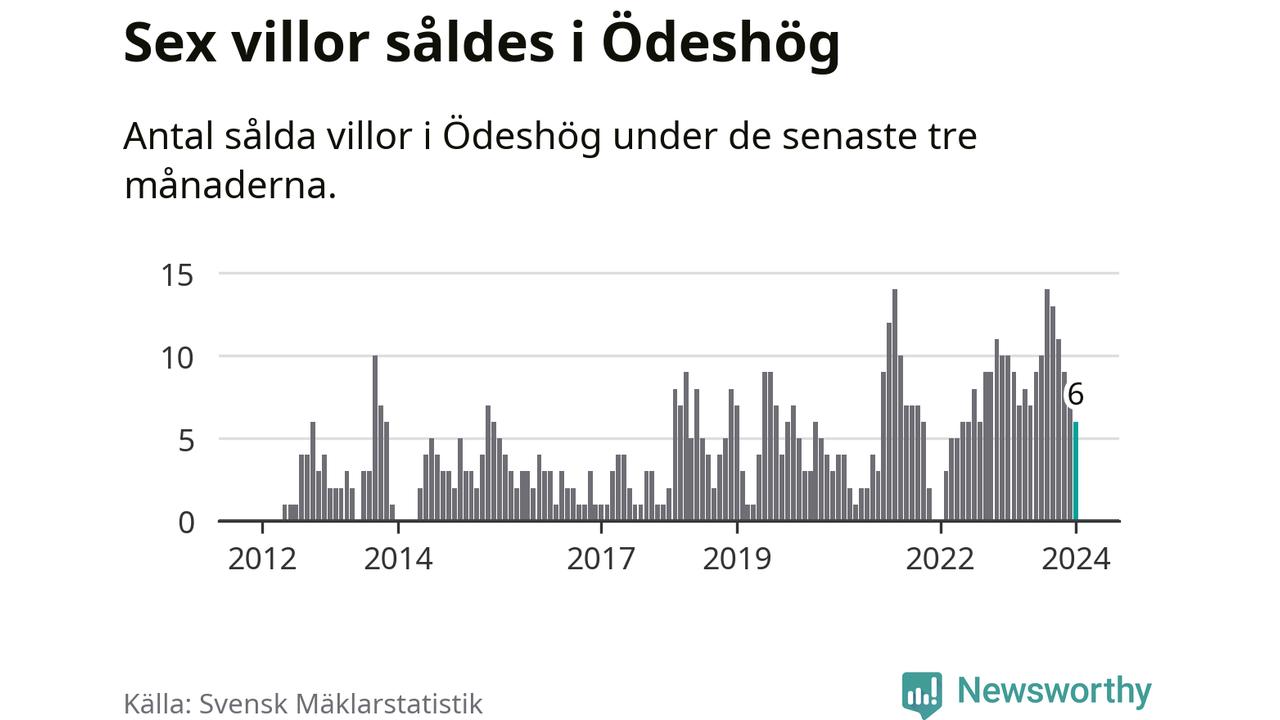 Mellan november och januari gjordes sammanlagt sex affärer med villor i Ödeshögs kommun. Det kan jämföras med tio vid motsvarande tid i fjol.
