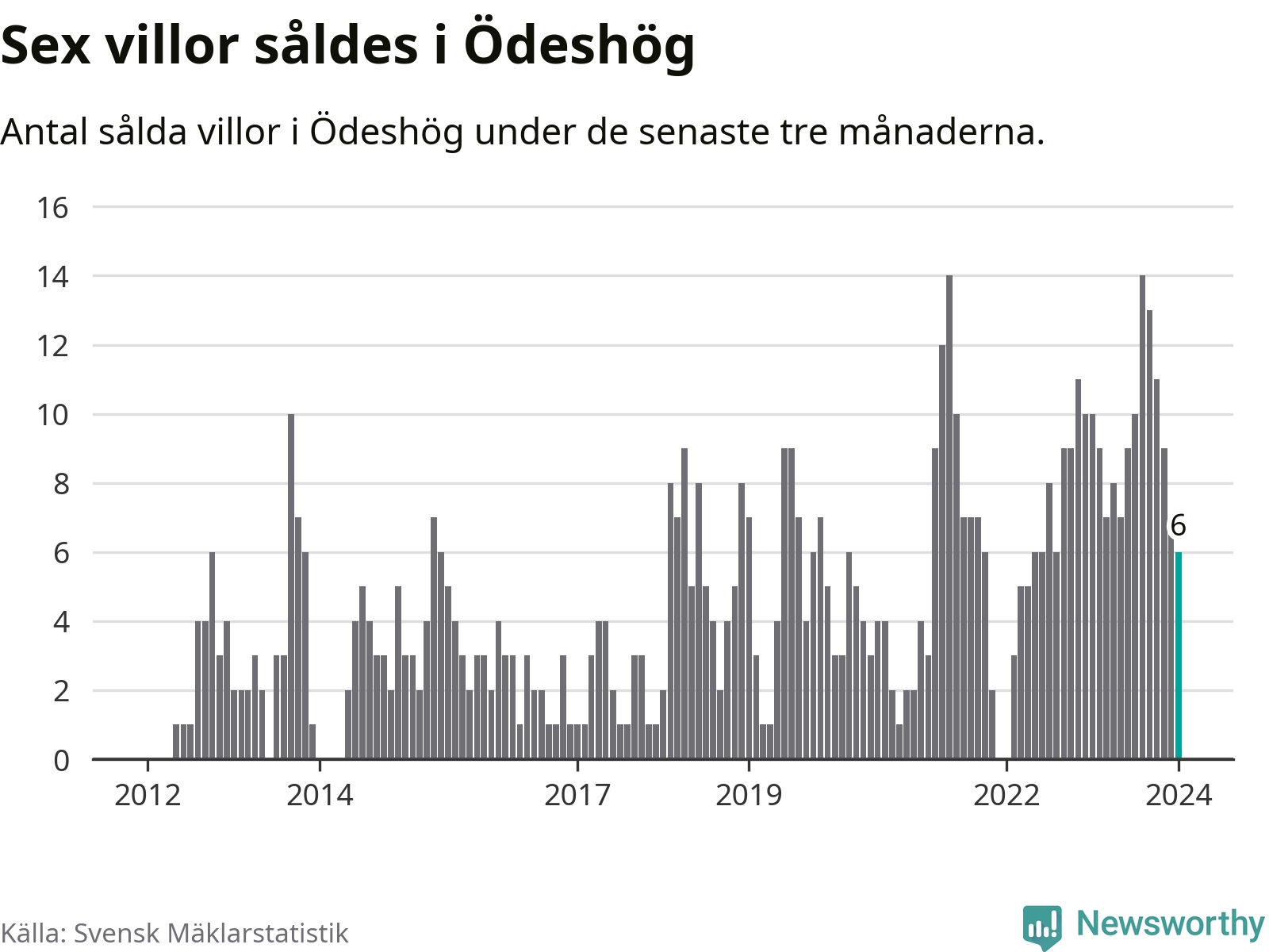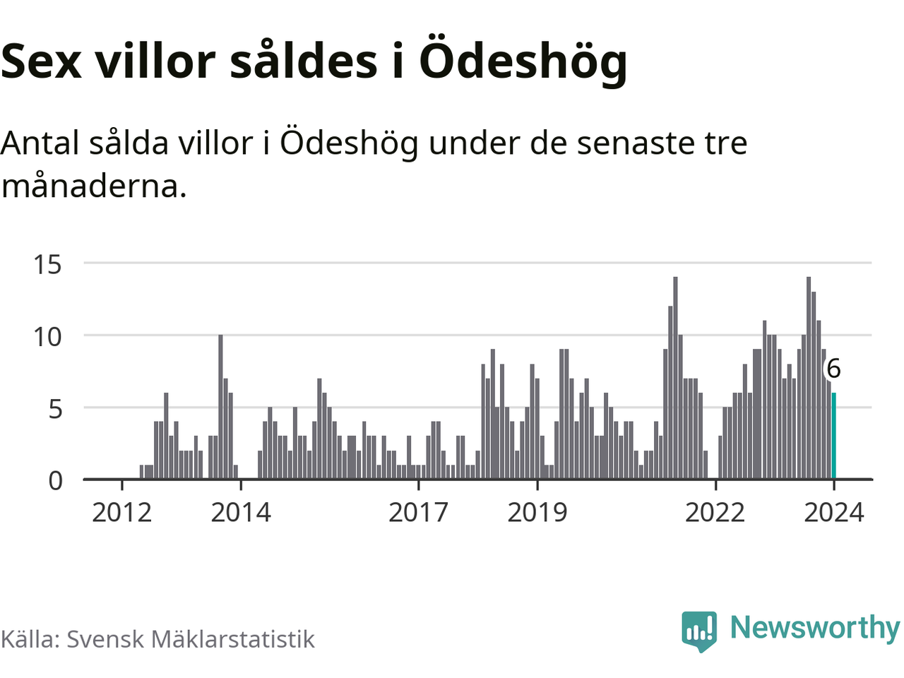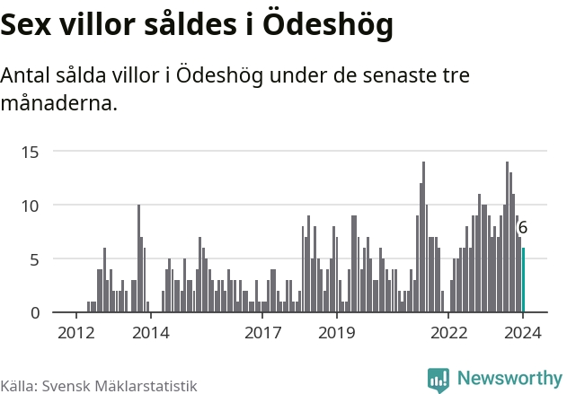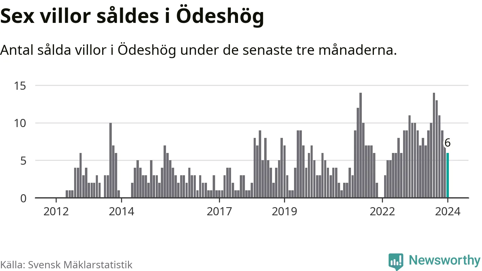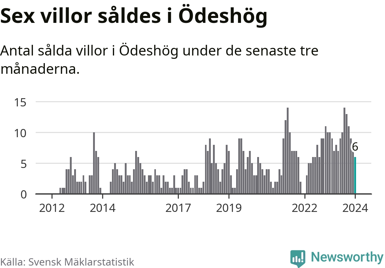 Mellan november och januari gjordes sammanlagt sex affärer med villor i Ödeshögs kommun. Det kan jämföras med tio vid motsvarande tid i fjol.