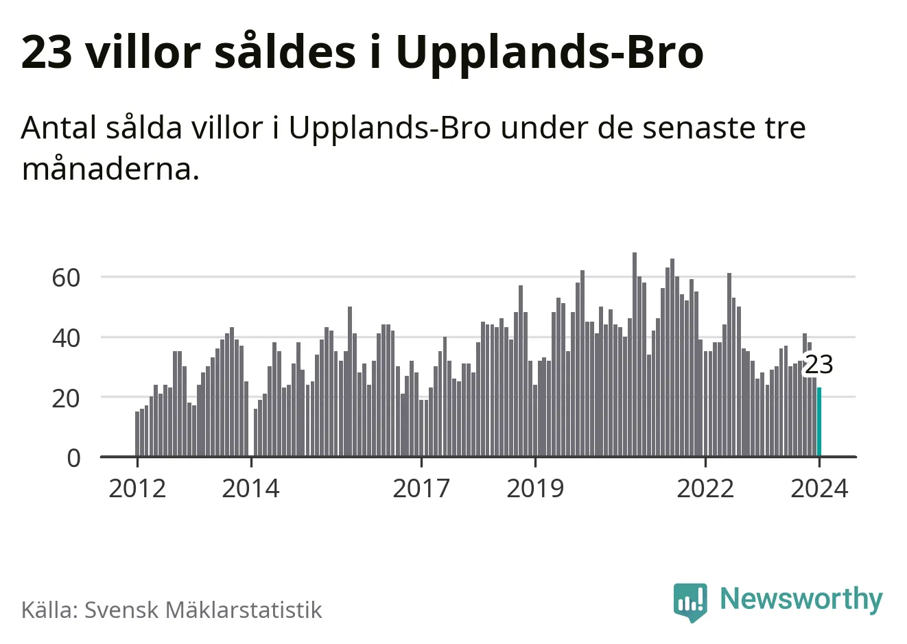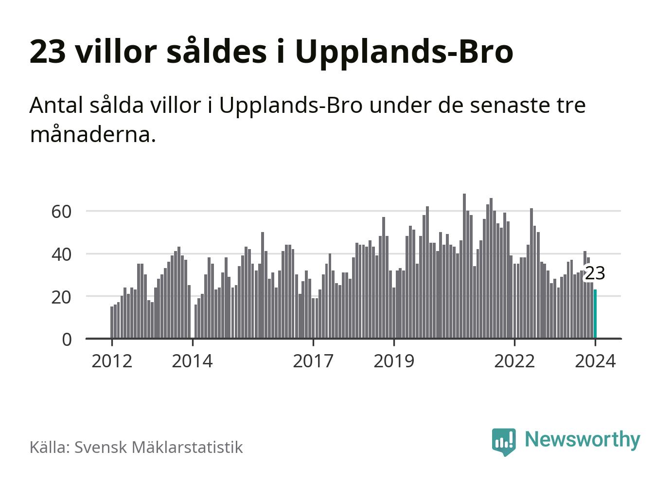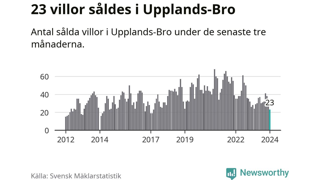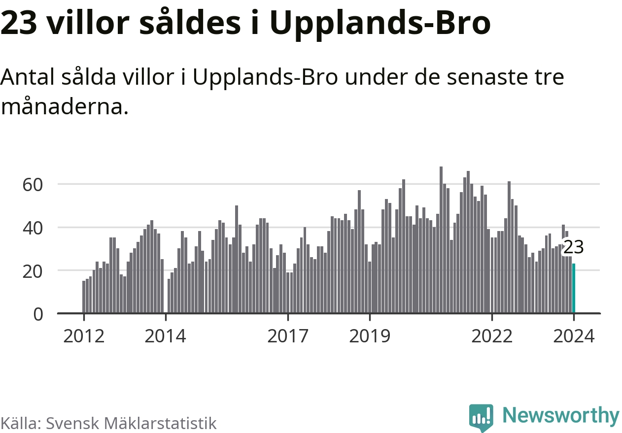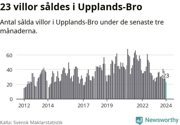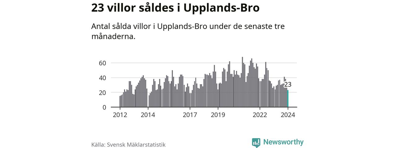 Mellan november och januari såldes 23 villor i Upplands-Bro kommun. Det är färre än någon tremånadersperiod sedan 2017.