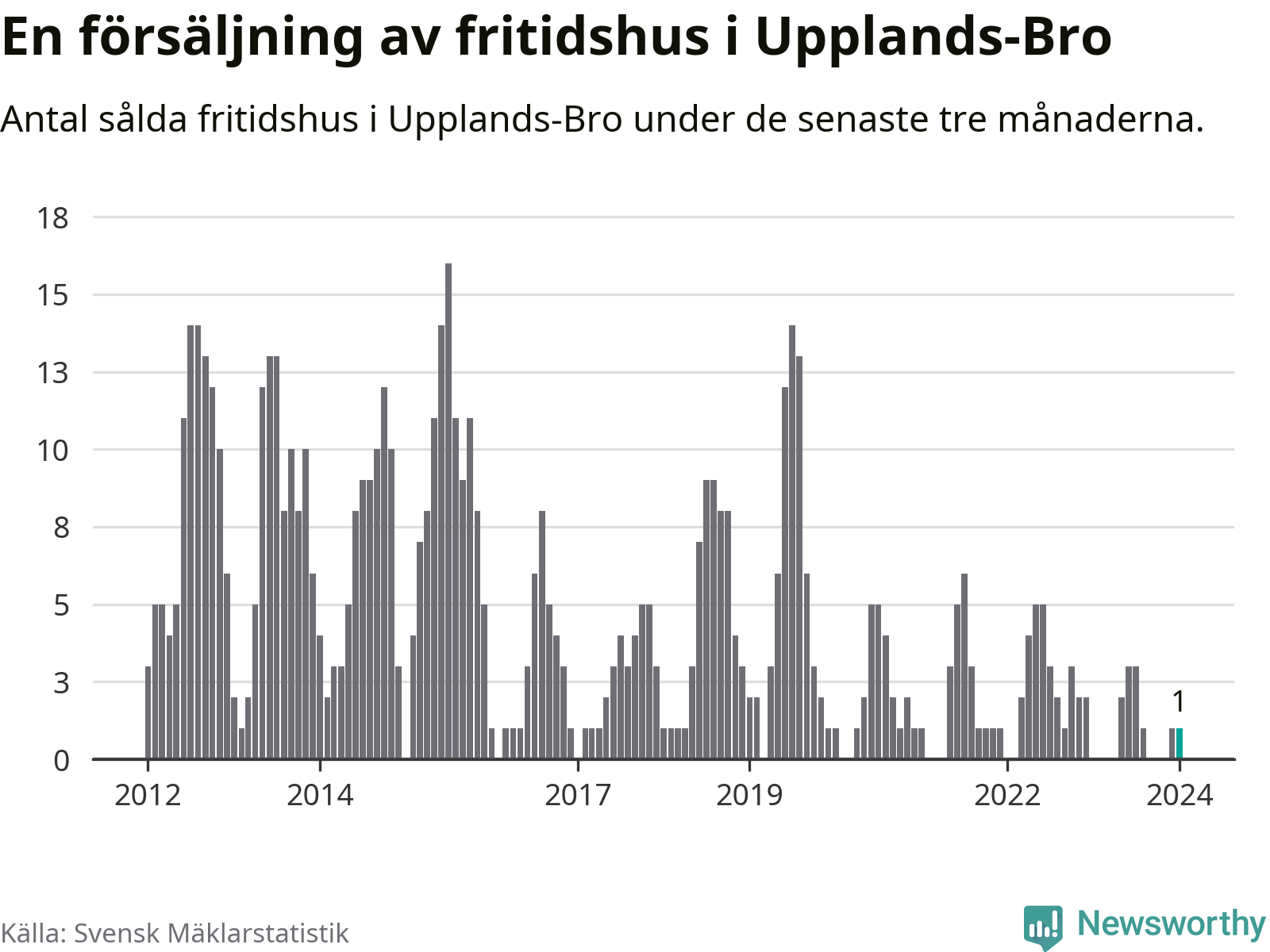 Mellan november och januari gjordes sammanlagt en affär med fritidshus i Upplands-Bro kommun.