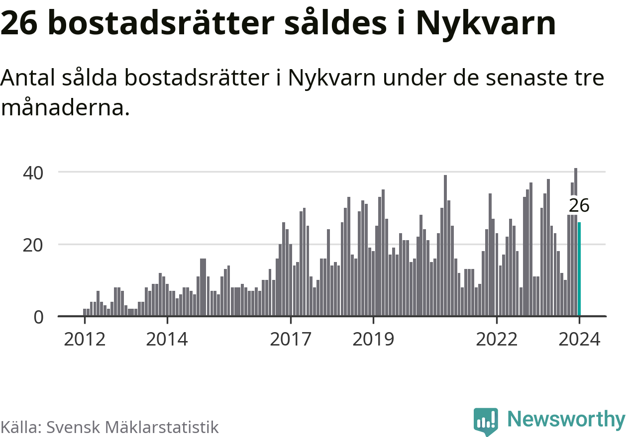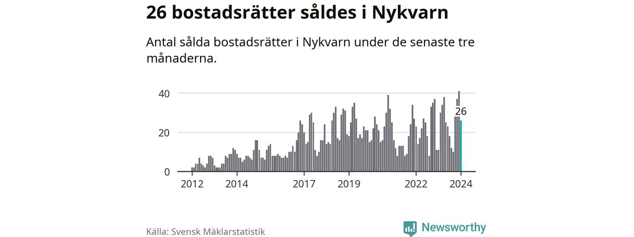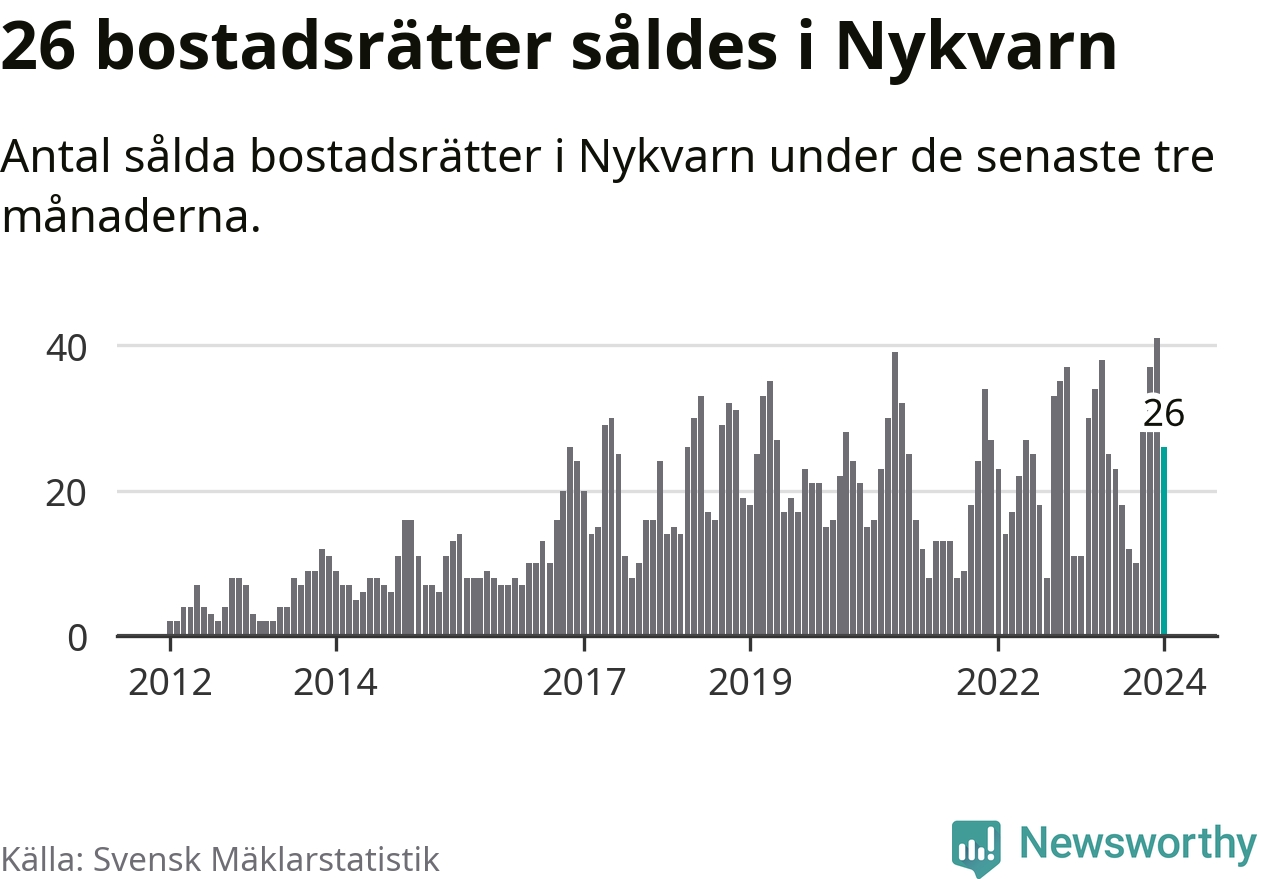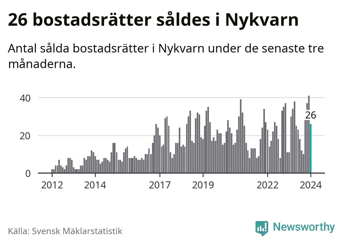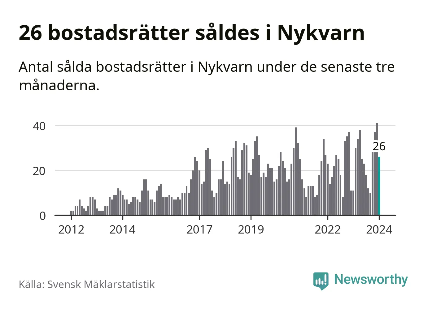 Mellan november och januari gjordes sammanlagt 26 affärer med bostadsrätter i Nykvarns kommun. Det kan jämföras med elva vid motsvarande tid i fjol.