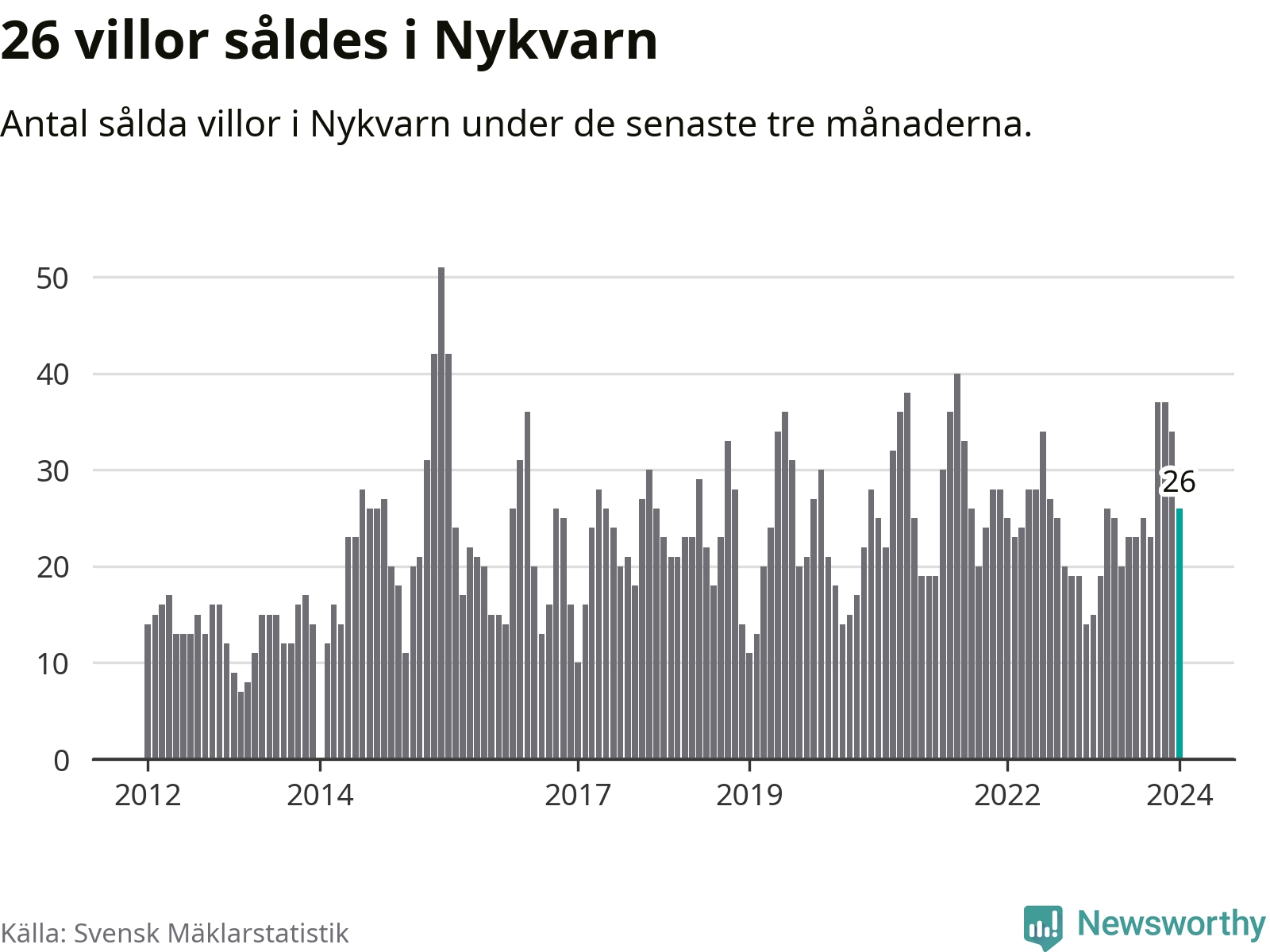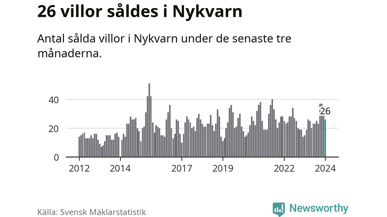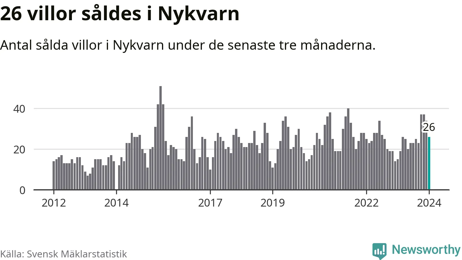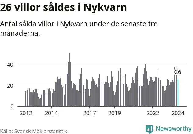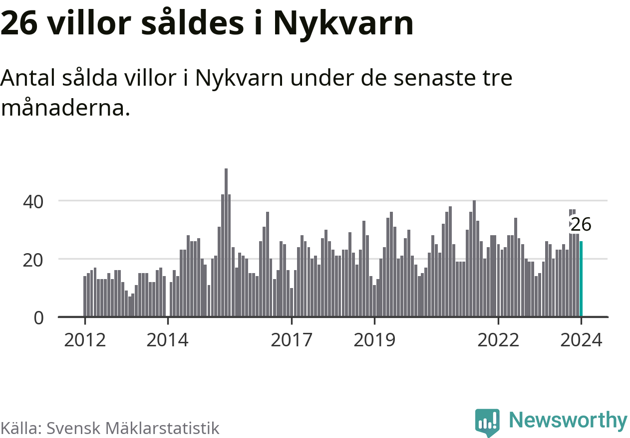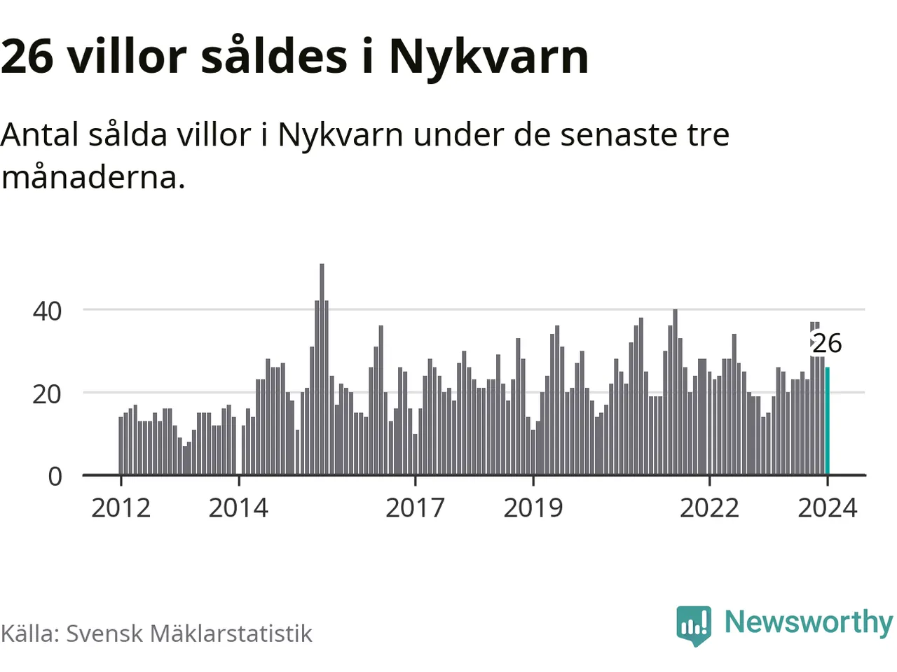 Mellan november och januari gjordes sammanlagt 26 affärer med villor i Nykvarns kommun. Det kan jämföras med 15 vid motsvarande tid i fjol.