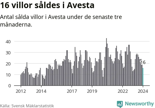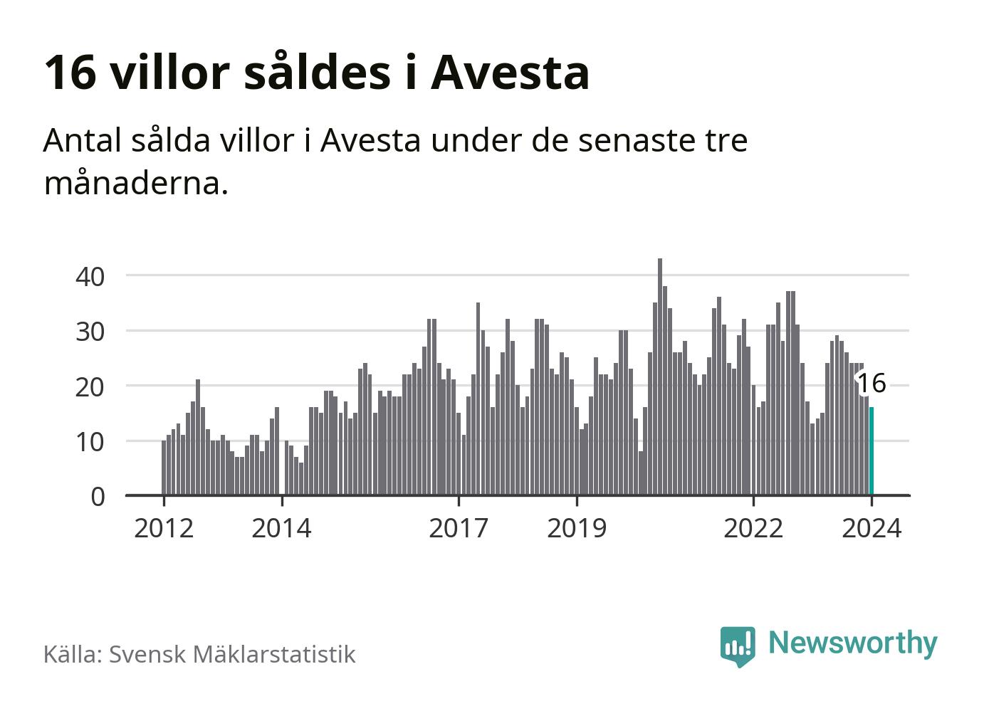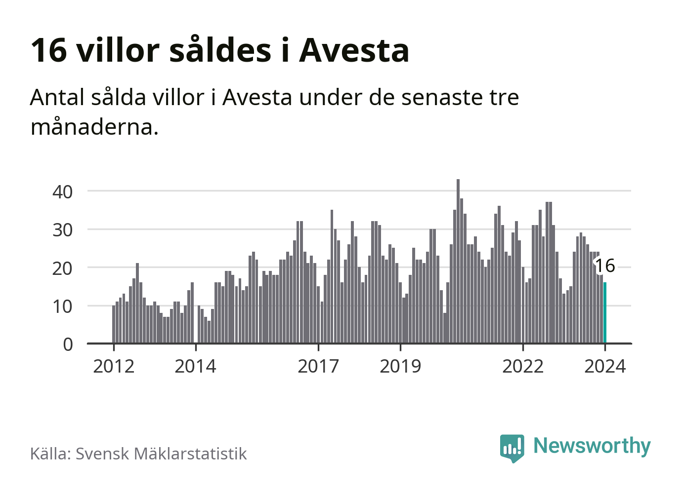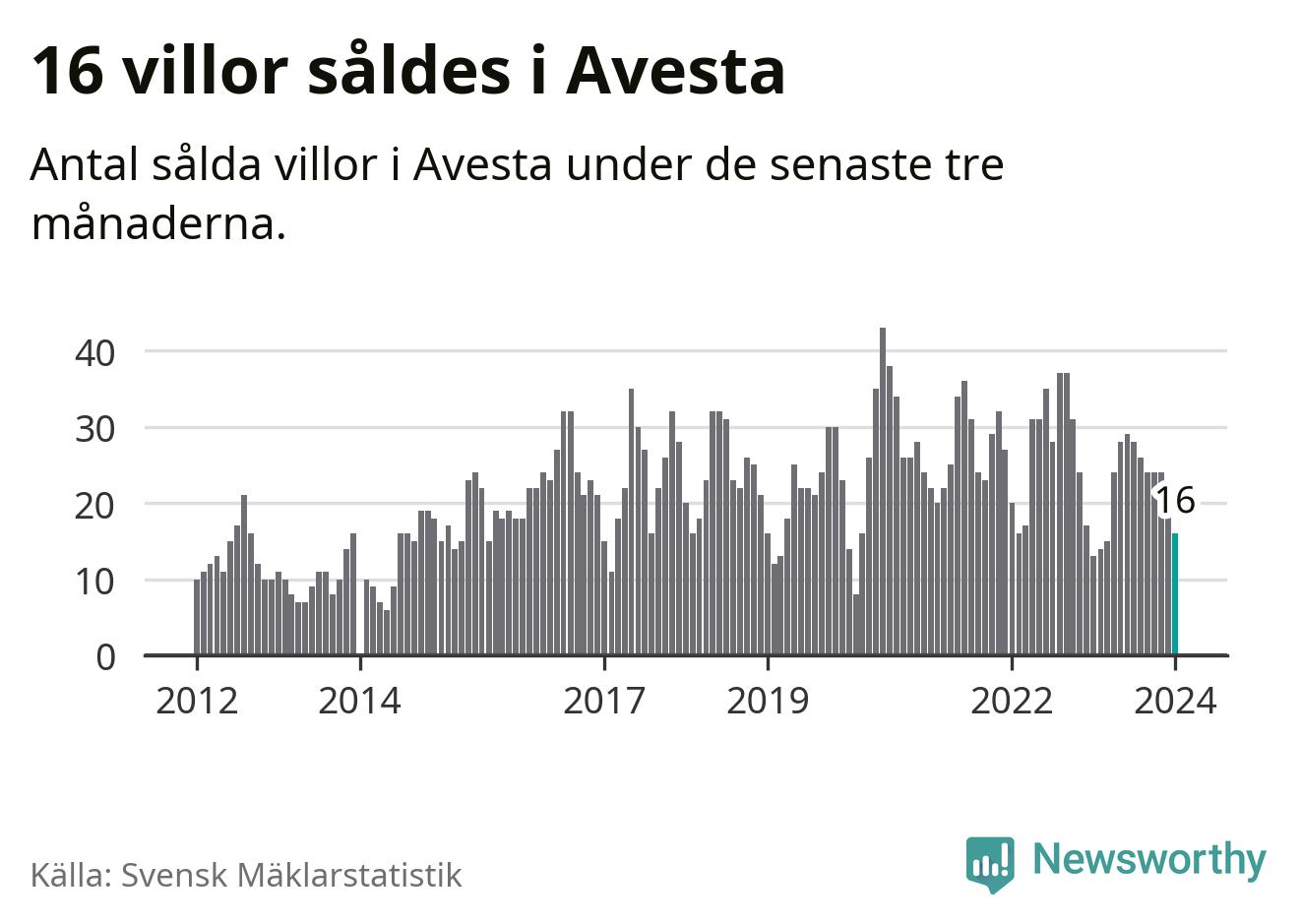 Mellan november och januari gjordes sammanlagt 16 affärer med villor i Avesta kommun. Det kan jämföras med 13 vid motsvarande tid i fjol.
