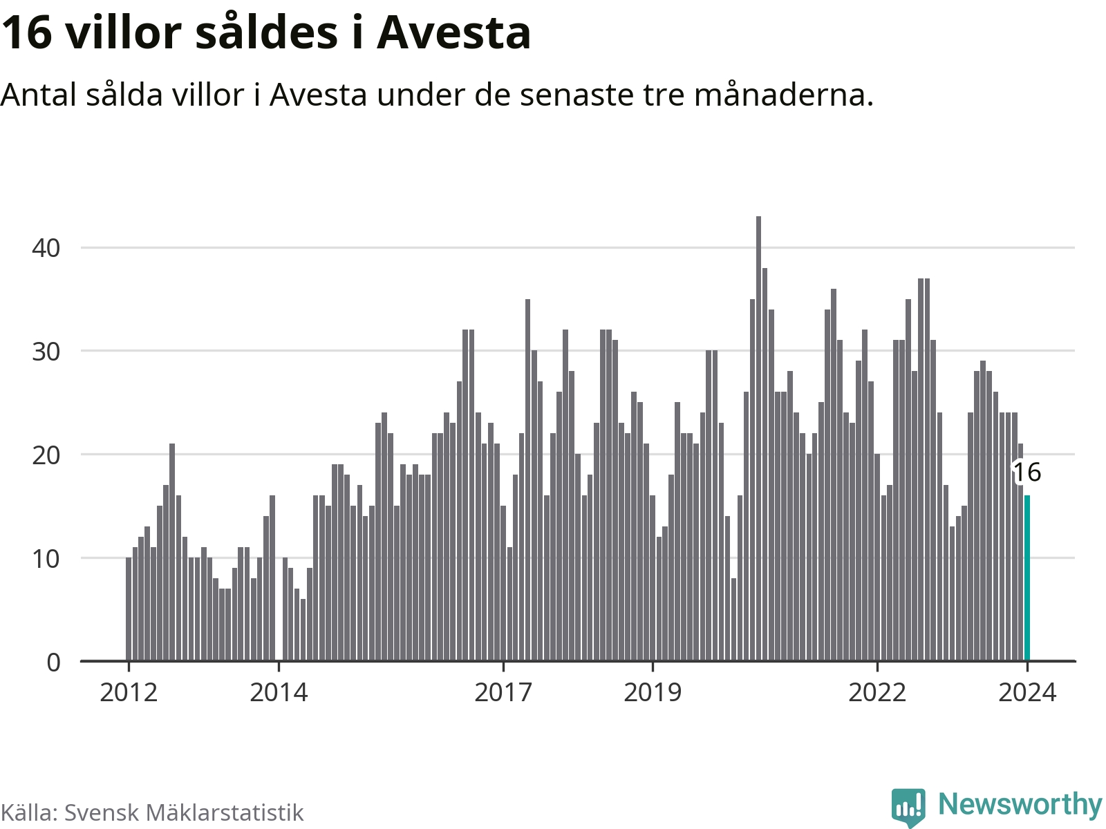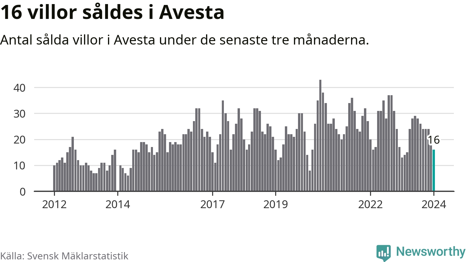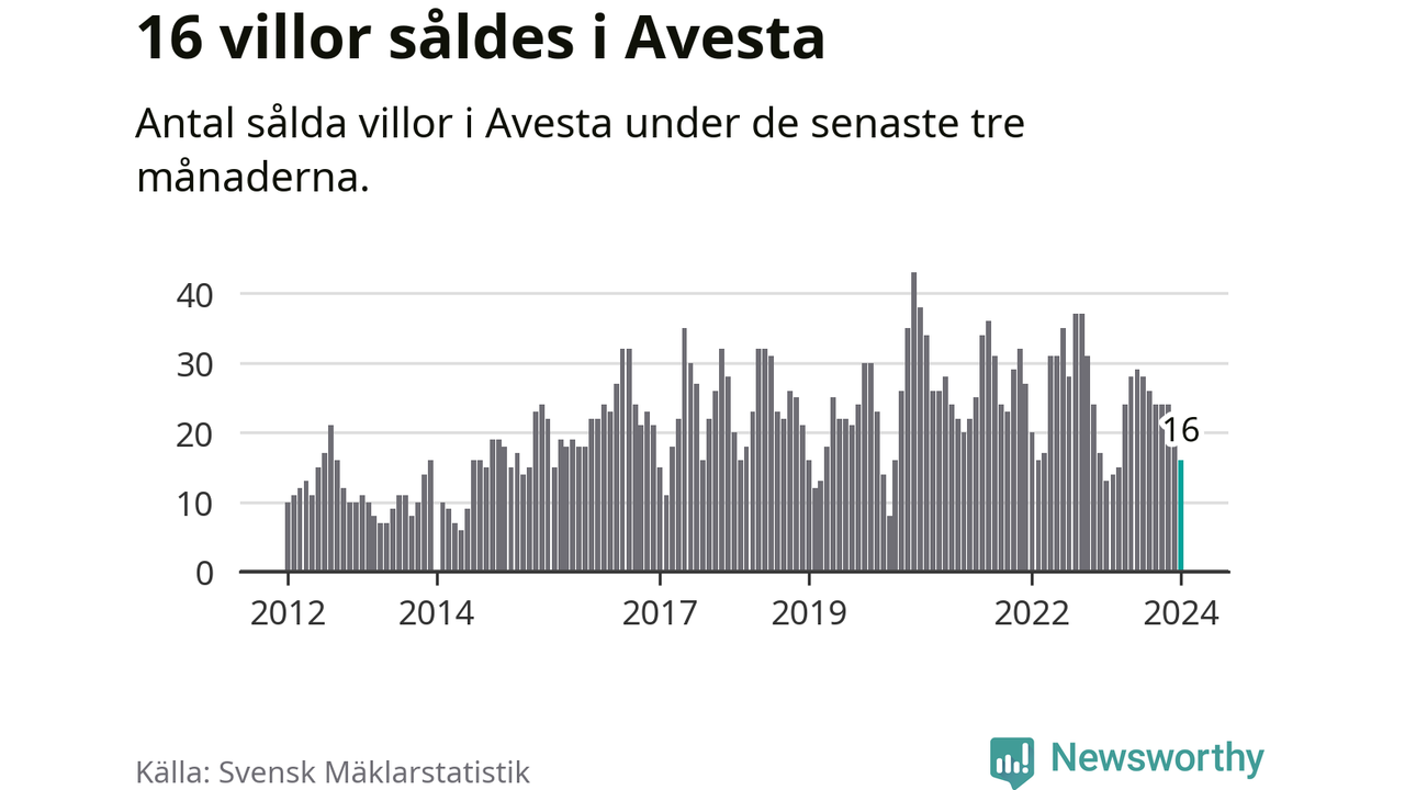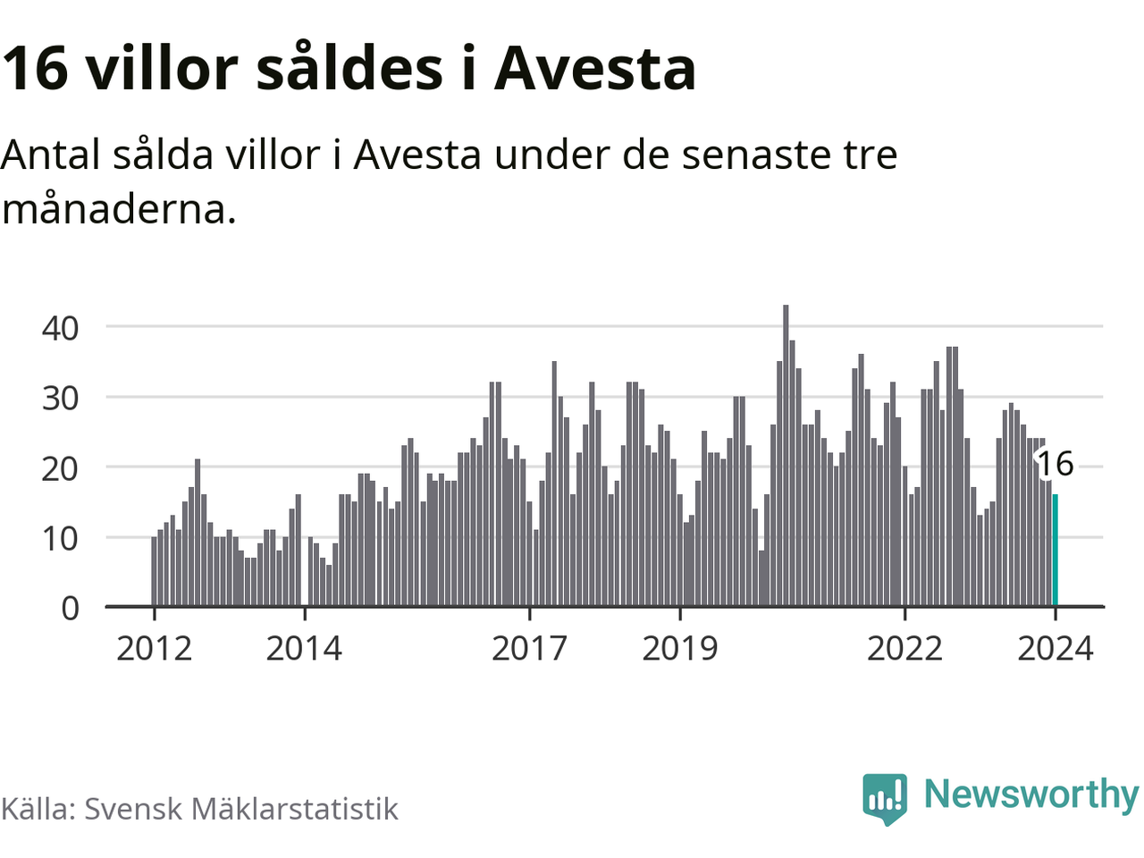Mellan november och januari gjordes sammanlagt 16 affärer med villor i Avesta kommun. Det kan jämföras med 13 vid motsvarande tid i fjol.