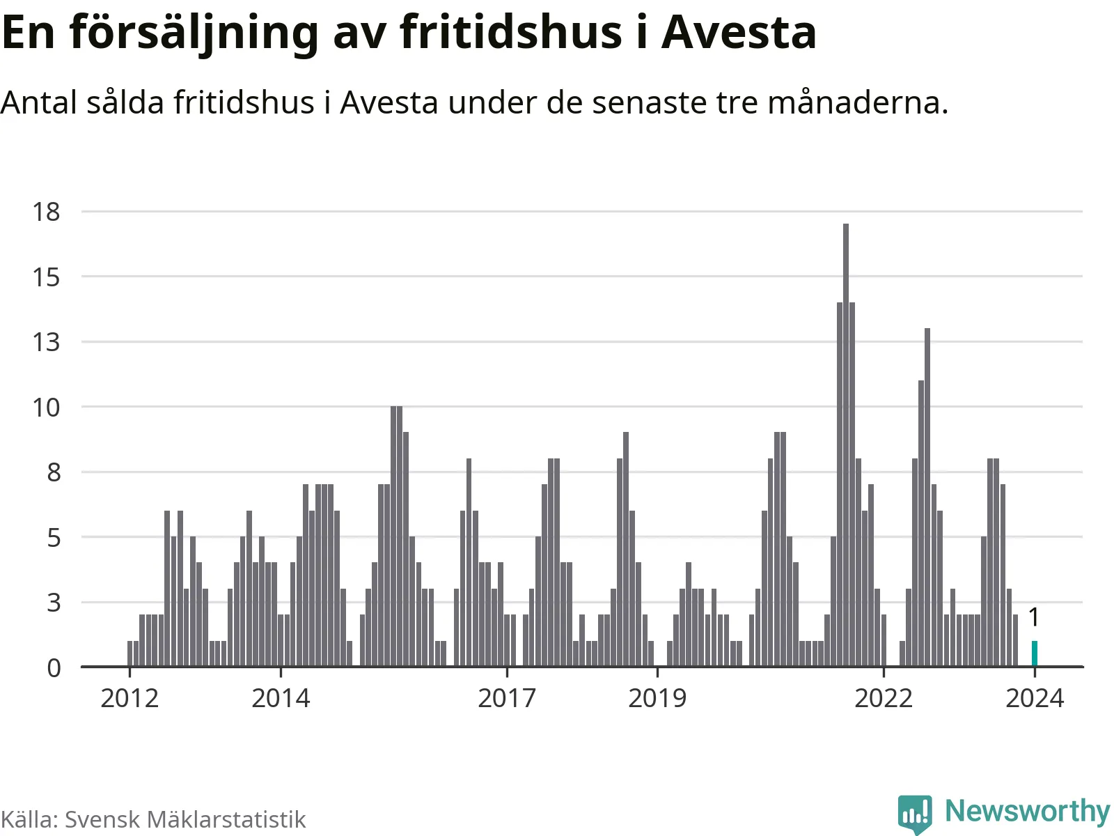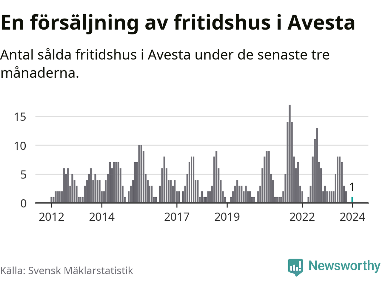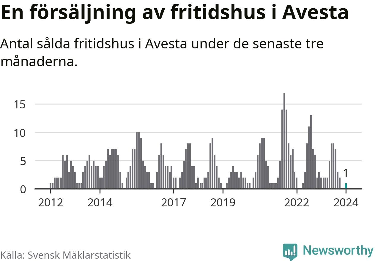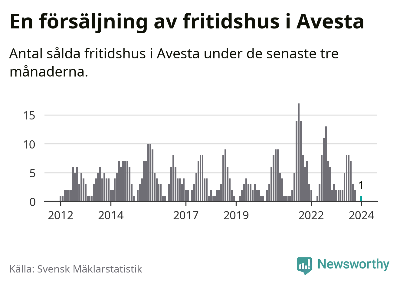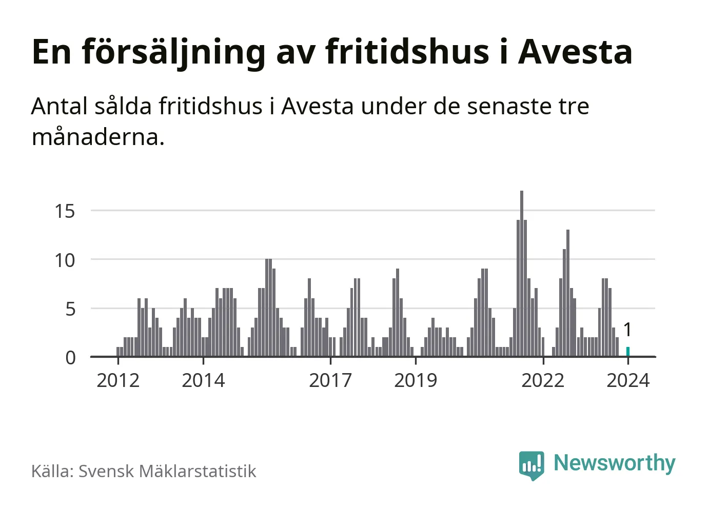 Mellan november och januari gjordes sammanlagt en affär med fritidshus i Avesta kommun. Det kan jämföras med två vid motsvarande tid i fjol.