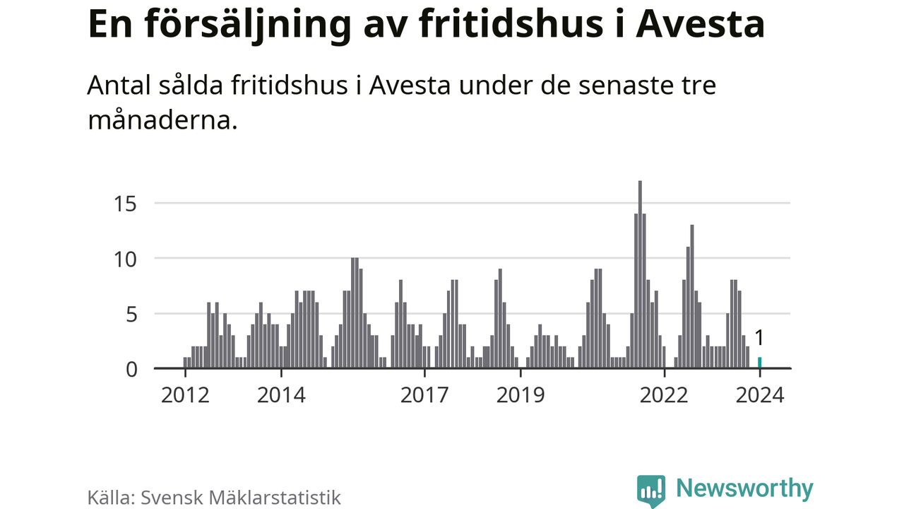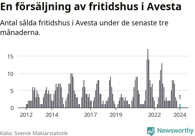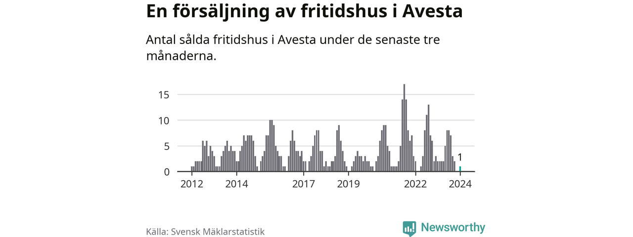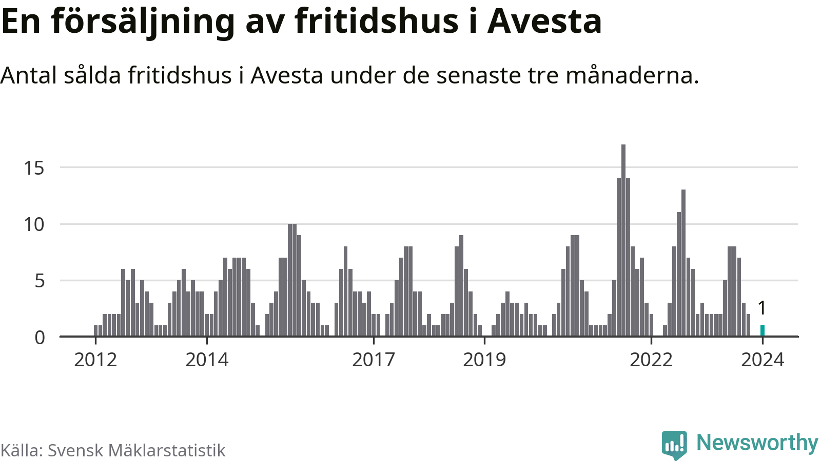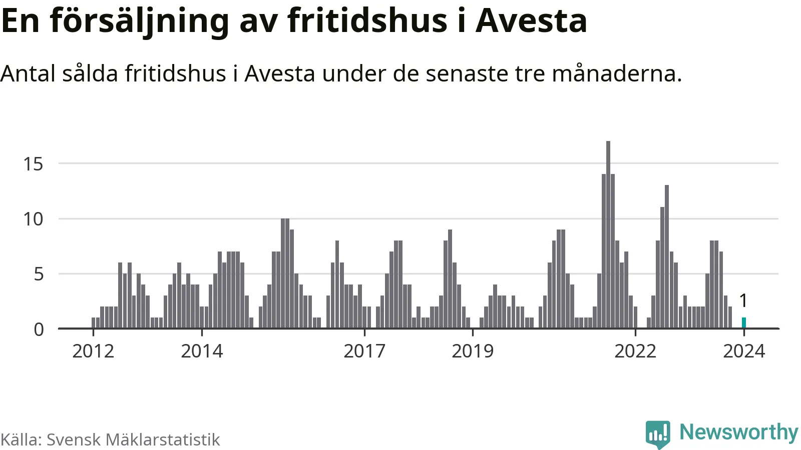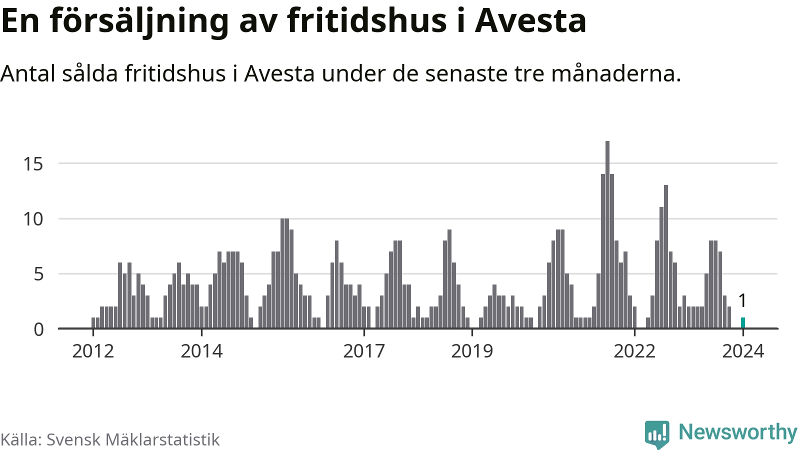 Mellan november och januari gjordes sammanlagt en affär med fritidshus i Avesta kommun. Det kan jämföras med två vid motsvarande tid i fjol.