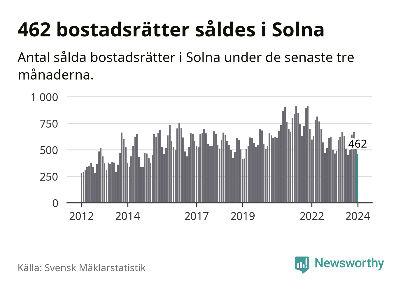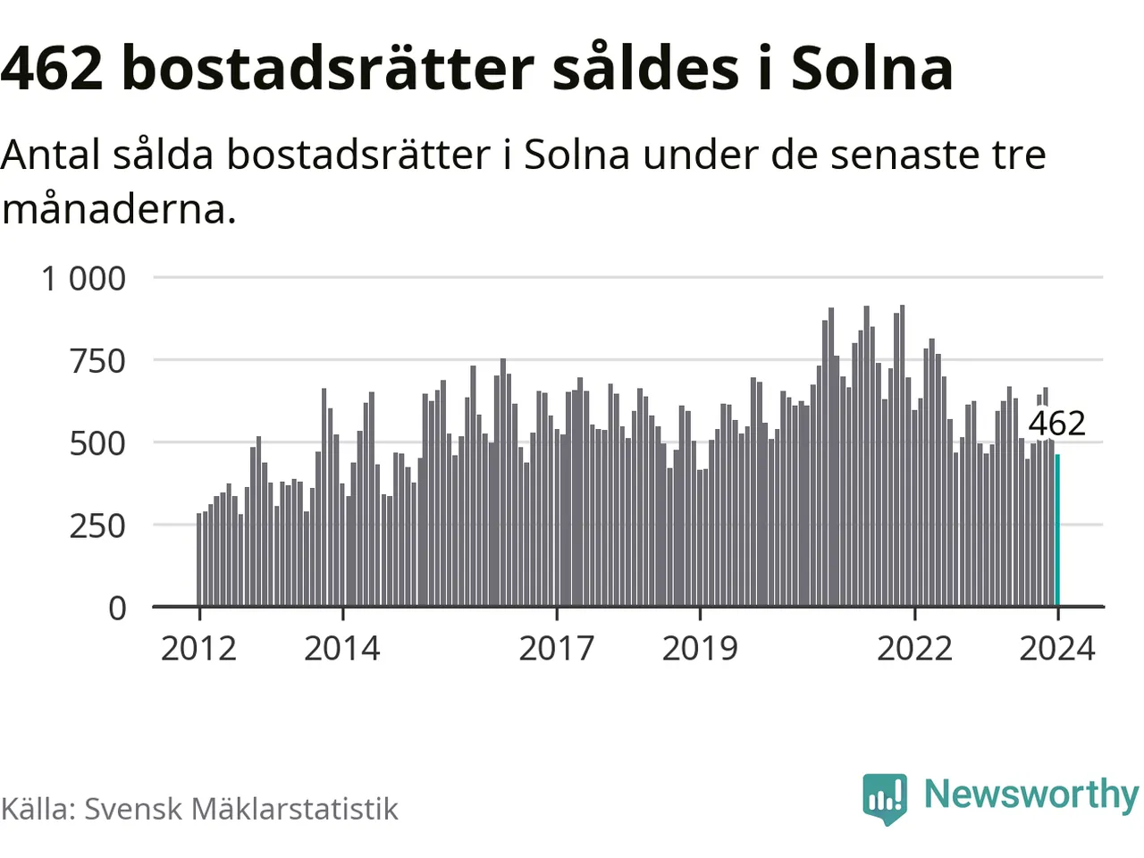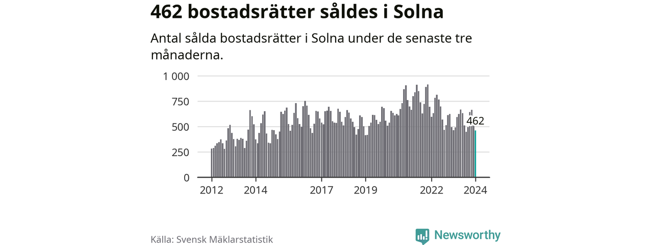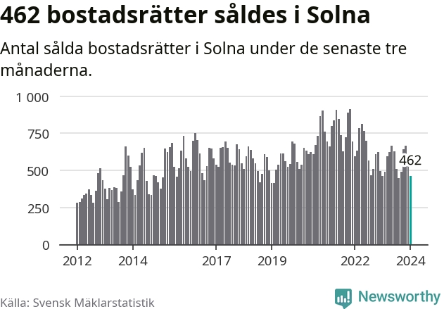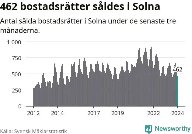 Solna | −4 % ▼ | 462 | 3,7 miljoner |