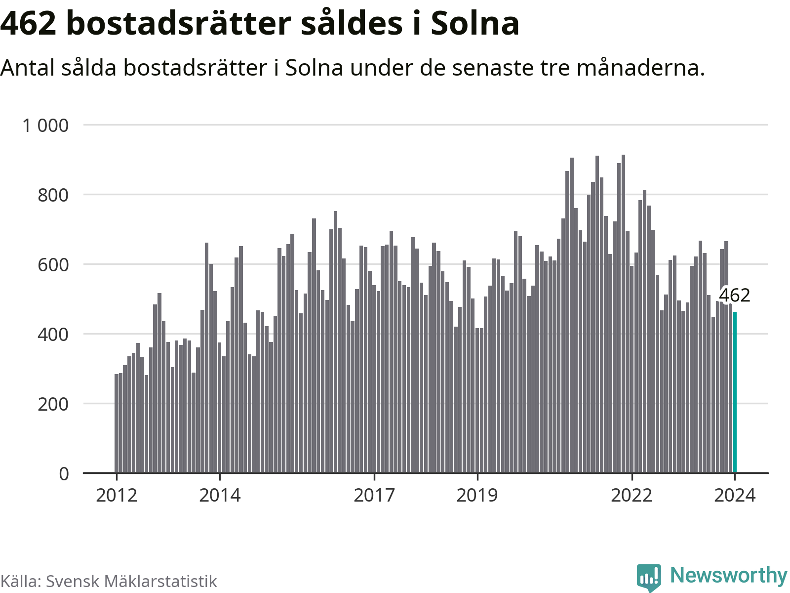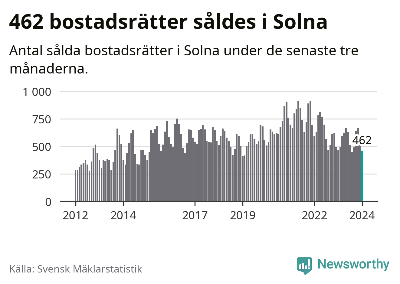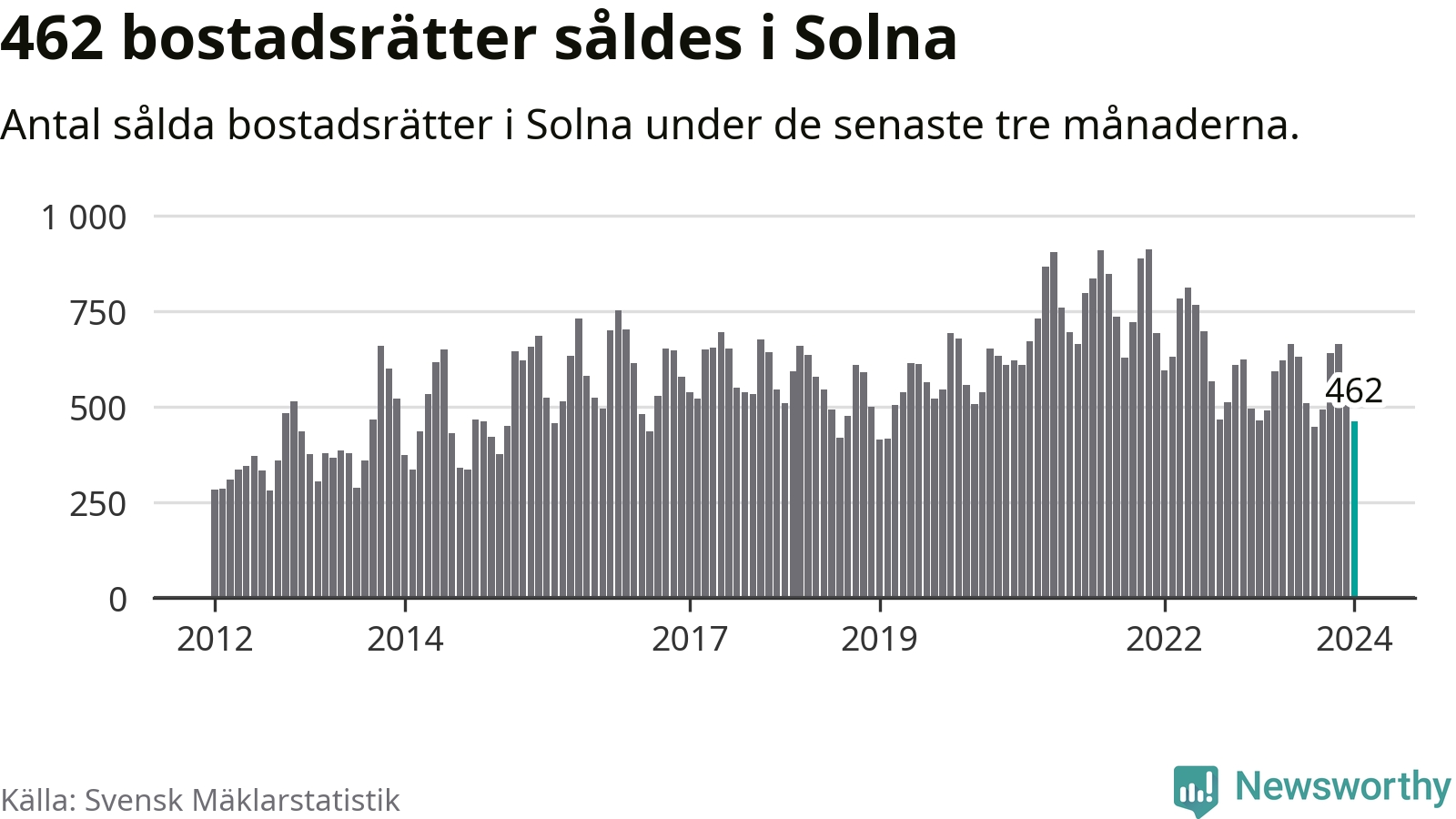 Solna | −4 % ▼ | 462 | 3,7 miljoner |