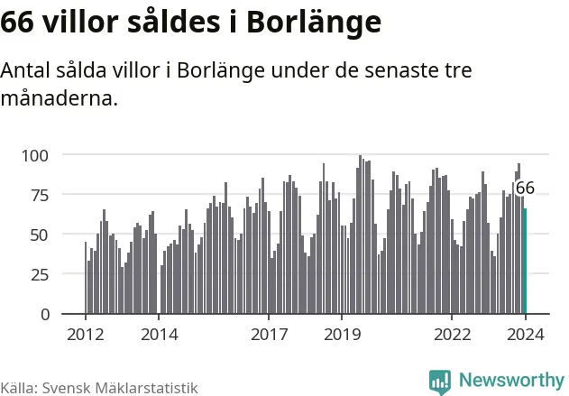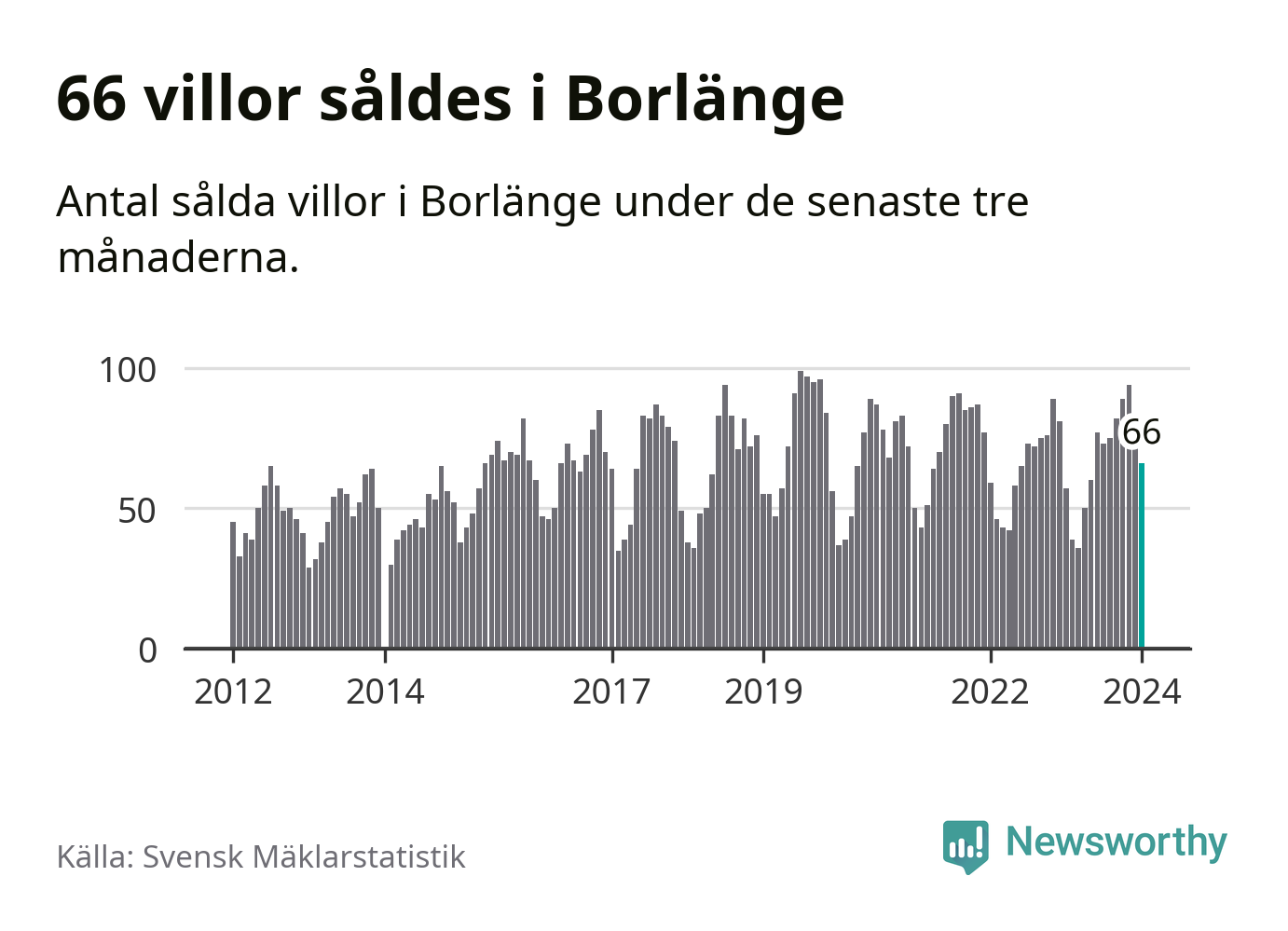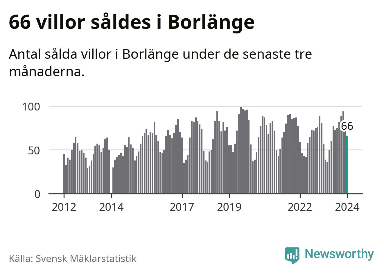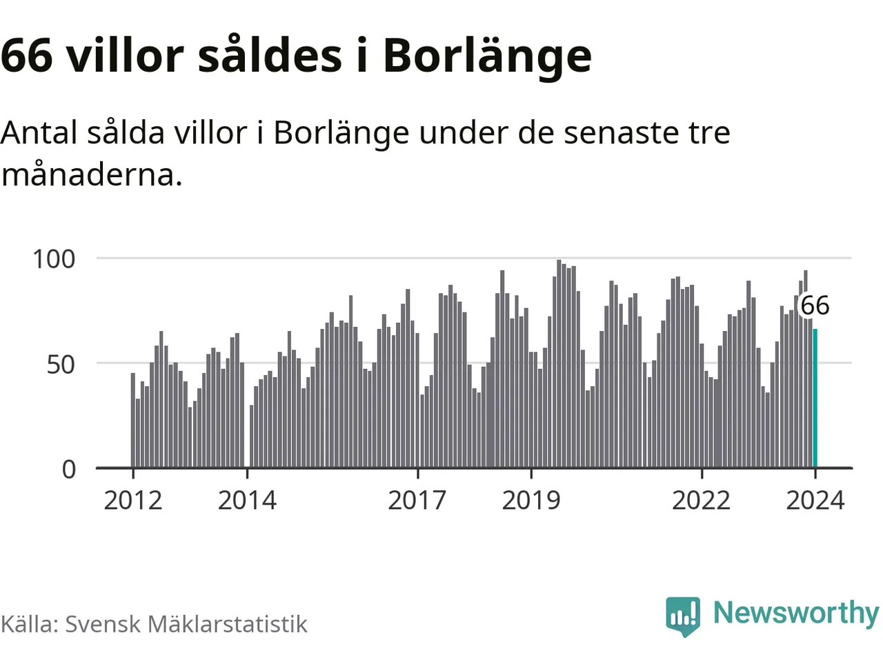 Sammanlagt såldes 66 villor i Borlänge kommun mellan november och januari till ett genomsnittligt pris på 2,6 miljoner kronor. I fjol gjordes 57 affärer vid den här tiden på året.