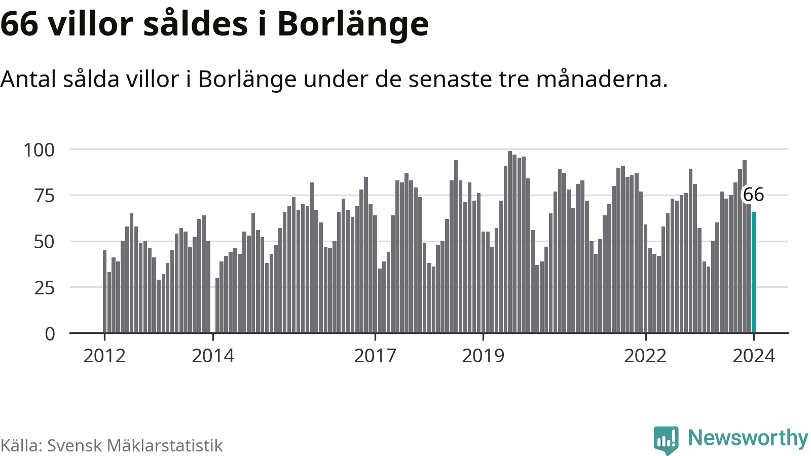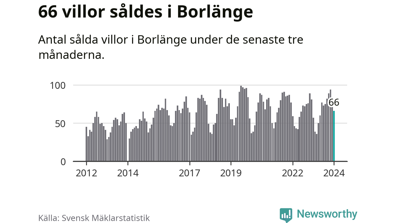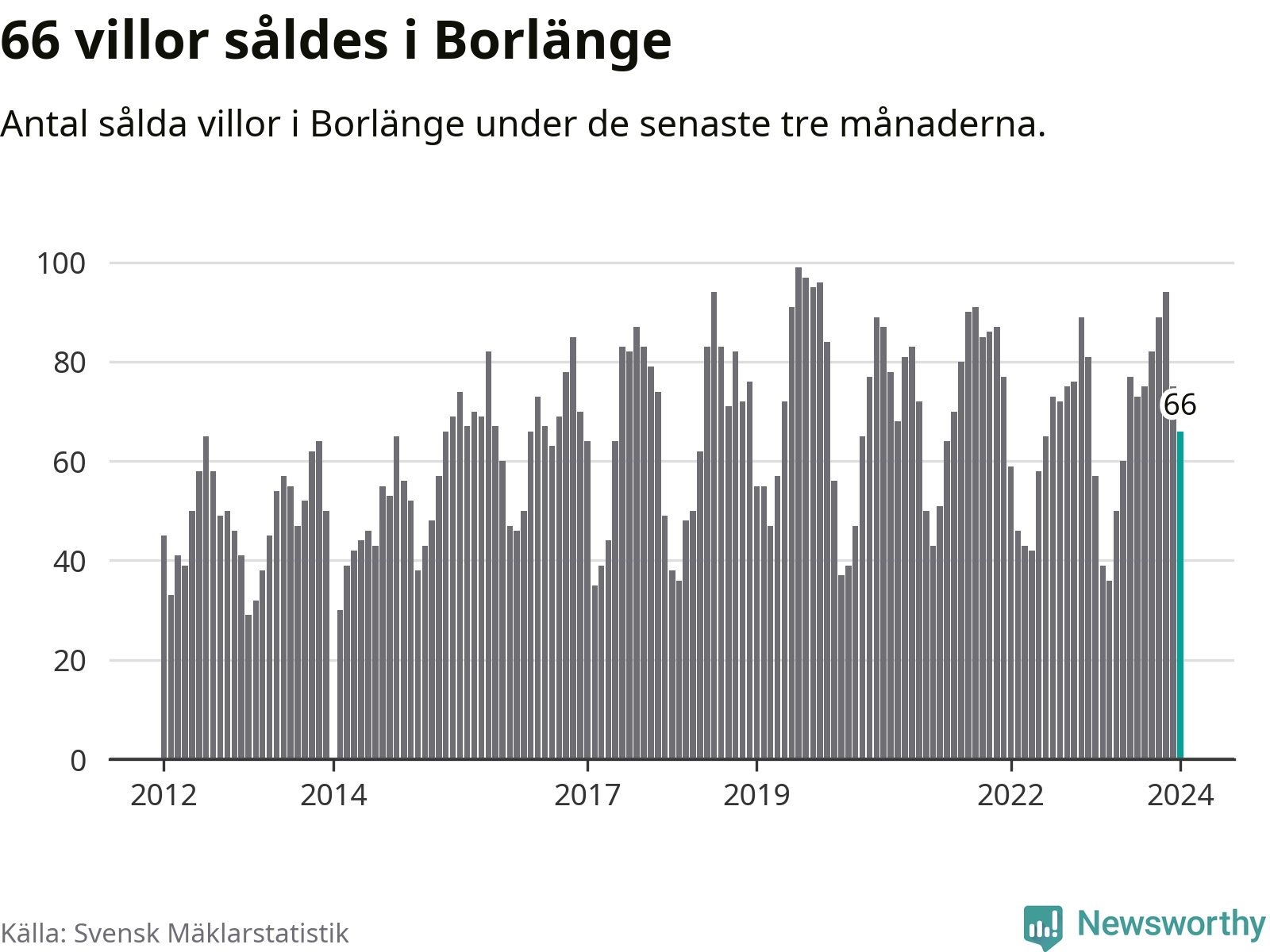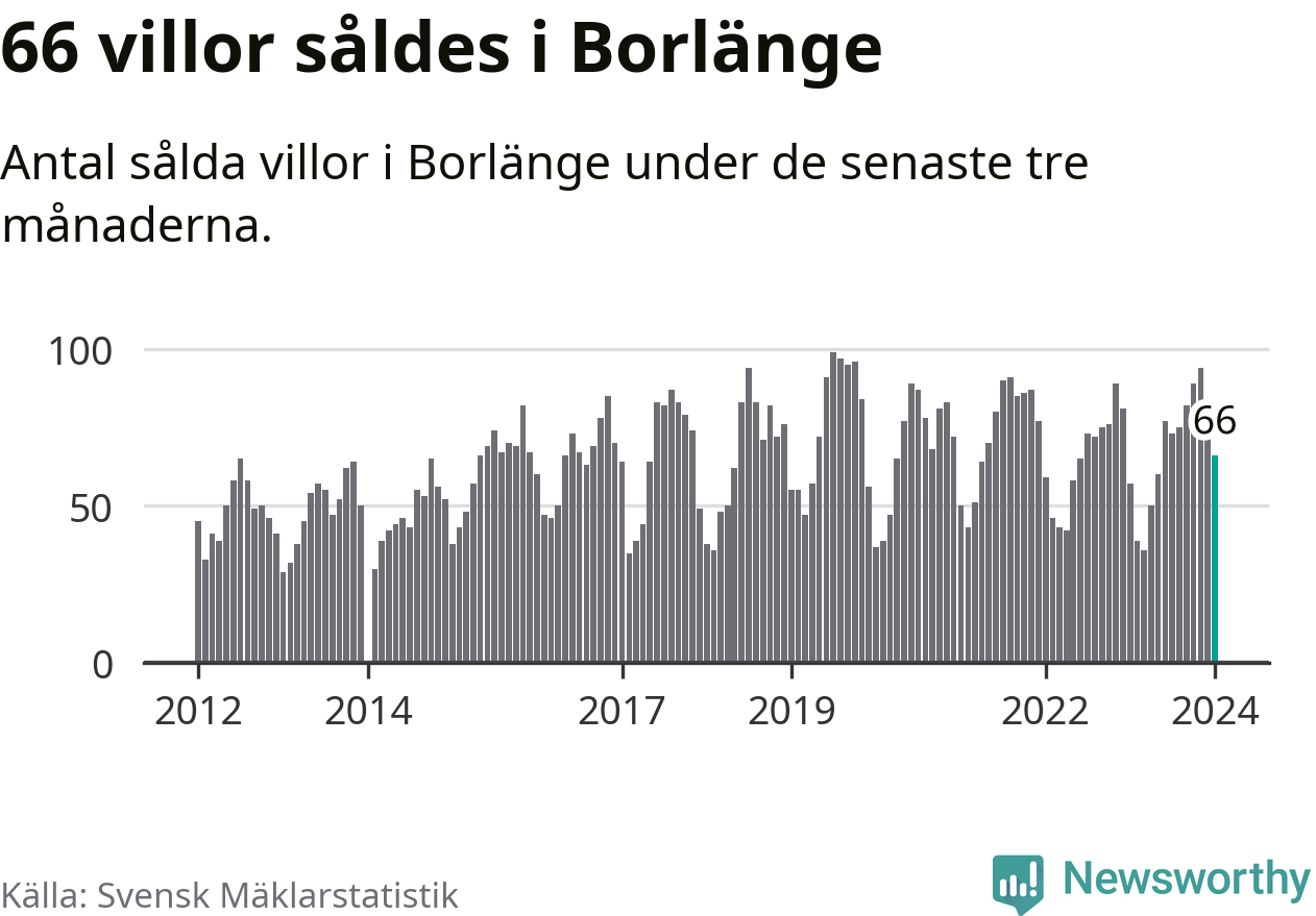 Sammanlagt såldes 66 villor i Borlänge kommun mellan november och januari till ett genomsnittligt pris på 2,6 miljoner kronor. I fjol gjordes 57 affärer vid den här tiden på året.