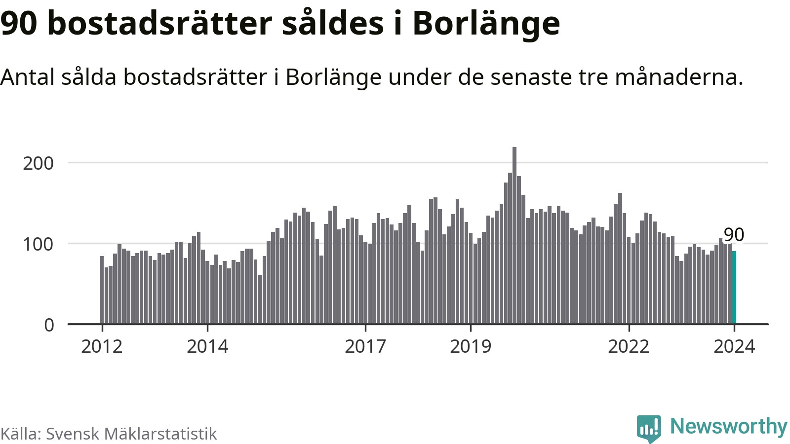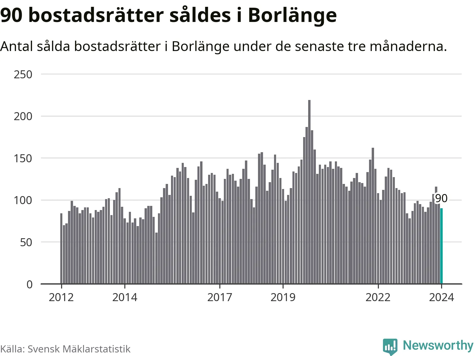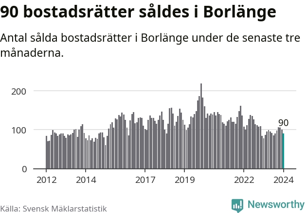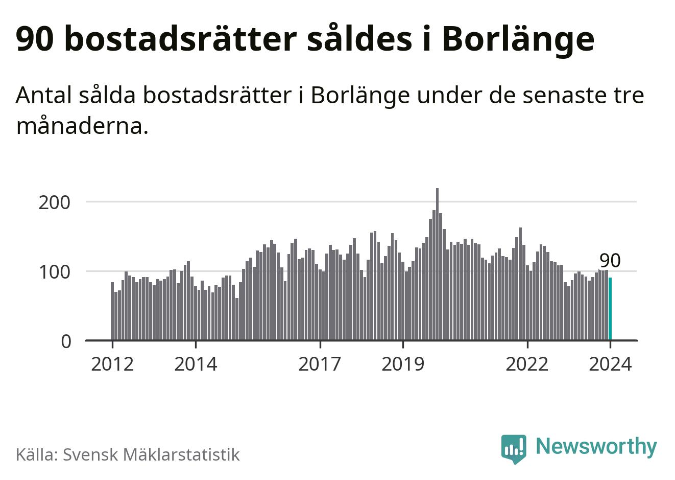 Graf: Antal sålda bostadsrätter i Borlänge kommun