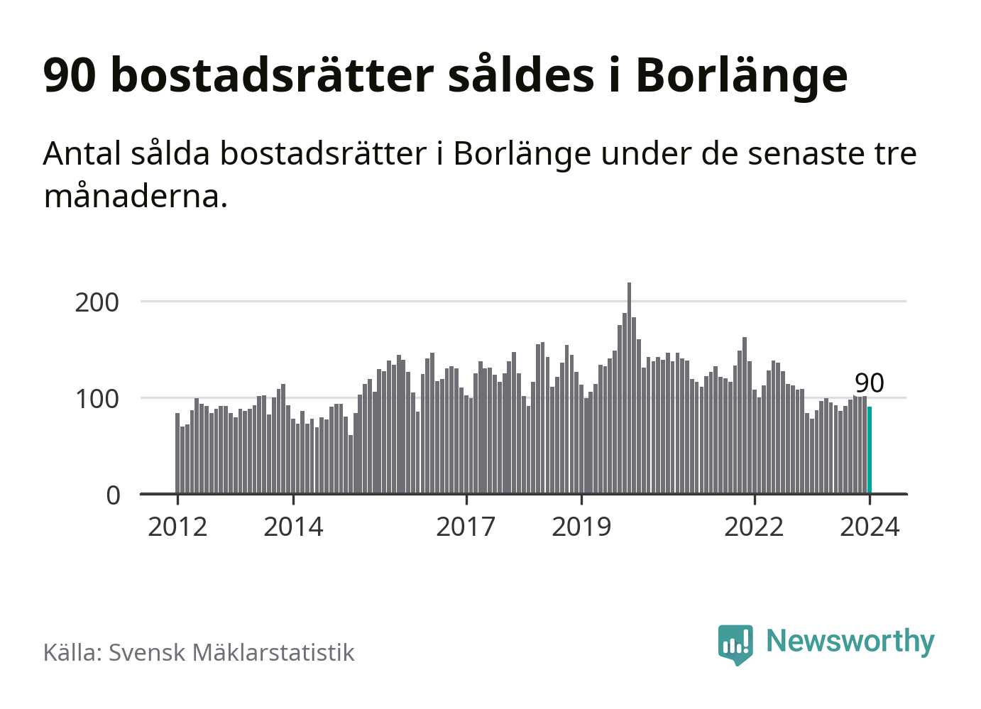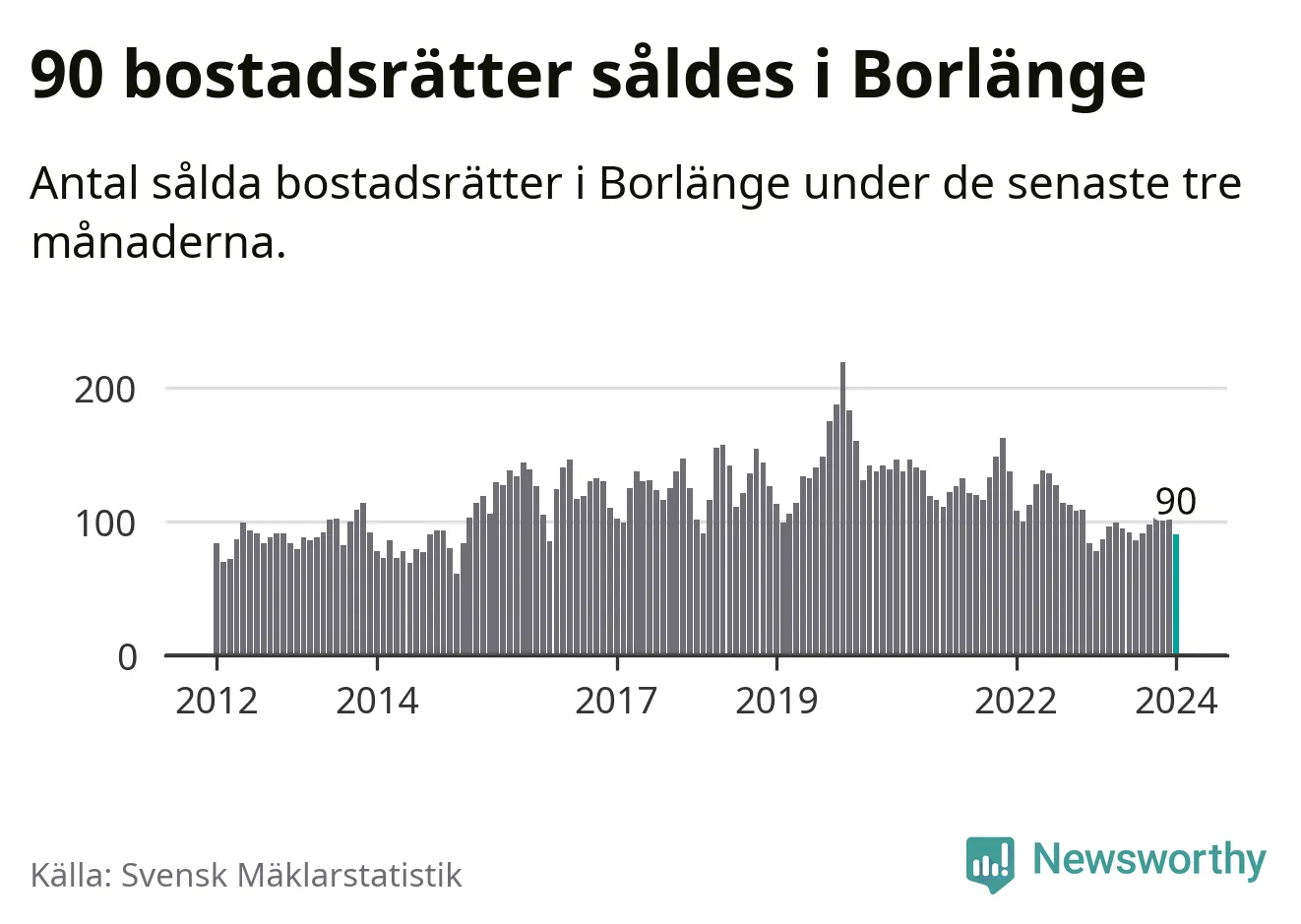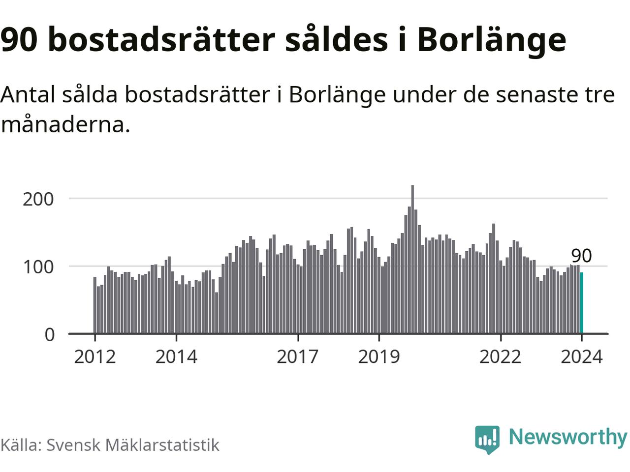 Sammanlagt såldes 90 bostadsrätter i Borlänge kommun mellan november och januari till ett genomsnittligt pris på 1,1 miljoner kronor. I fjol gjordes 78 affärer vid den här tiden på året.