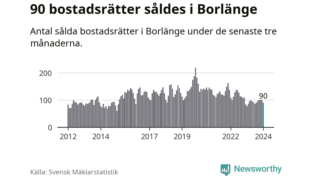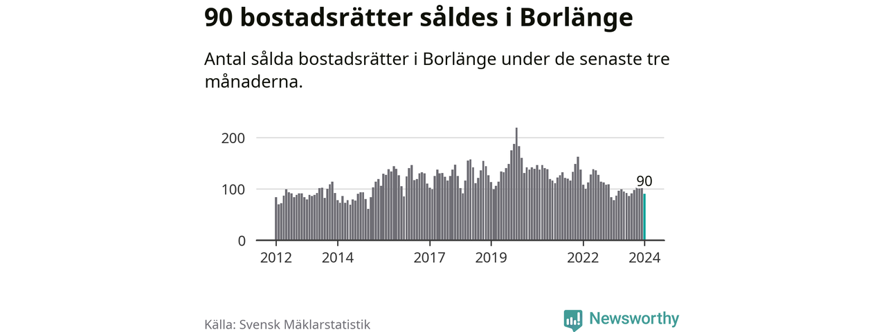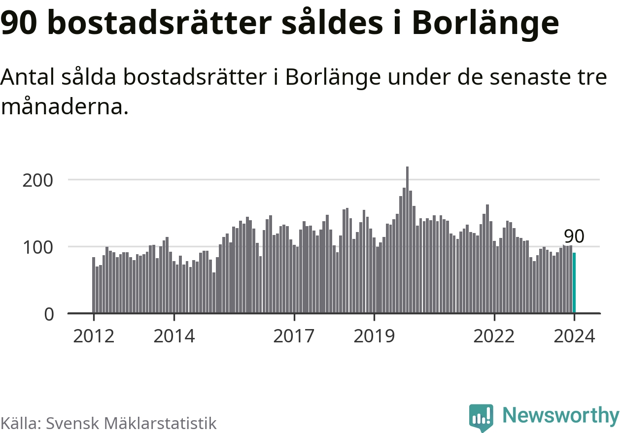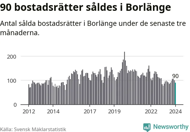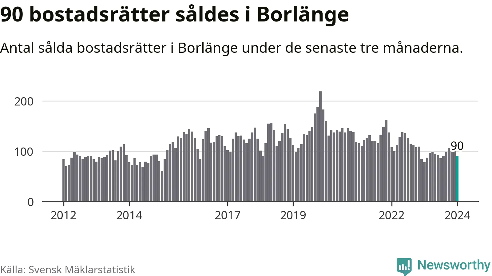 Sammanlagt såldes 90 bostadsrätter i Borlänge kommun mellan november och januari till ett genomsnittligt pris på 1,1 miljoner kronor. I fjol gjordes 78 affärer vid den här tiden på året.