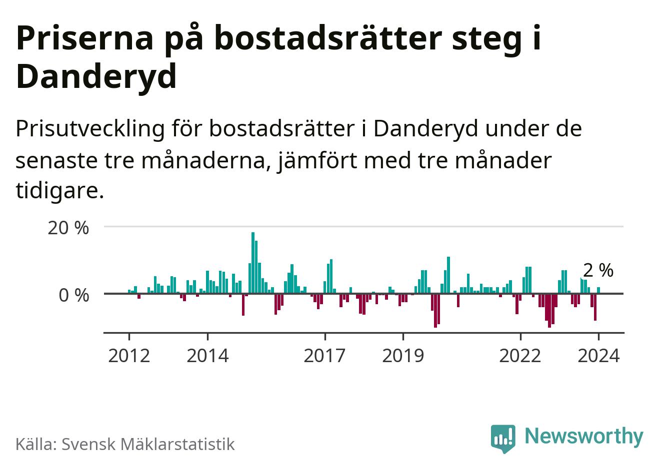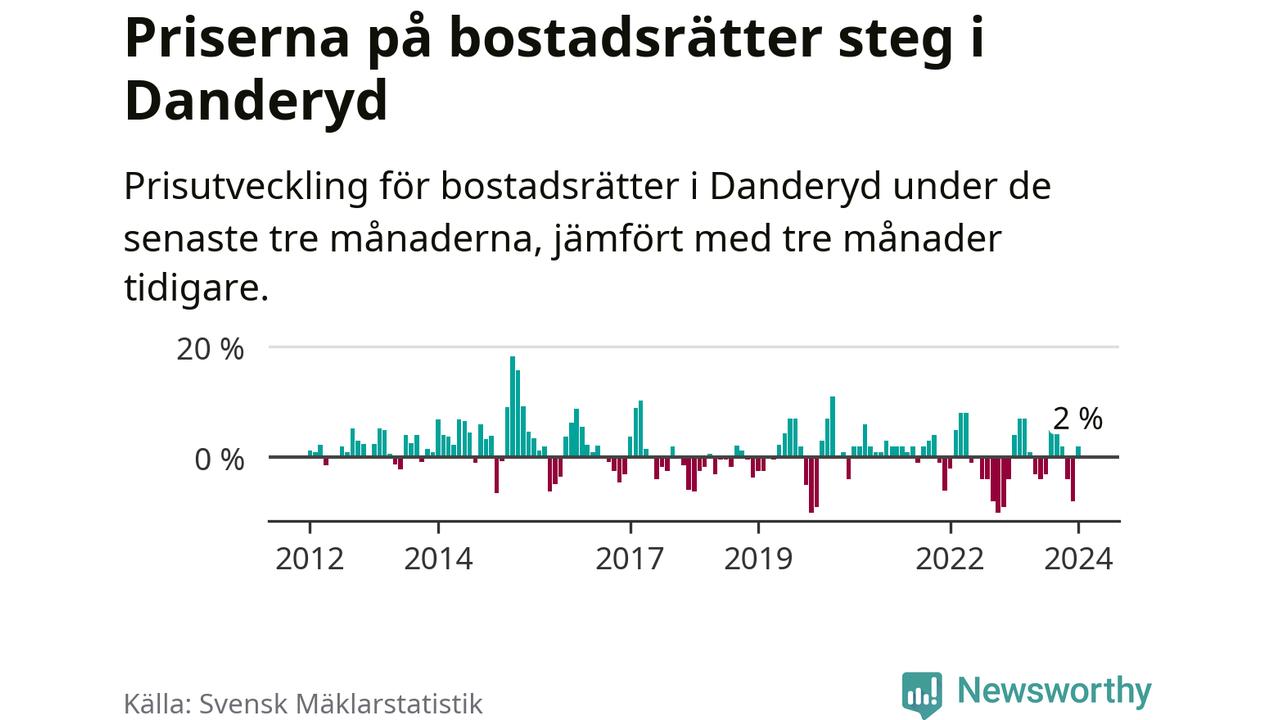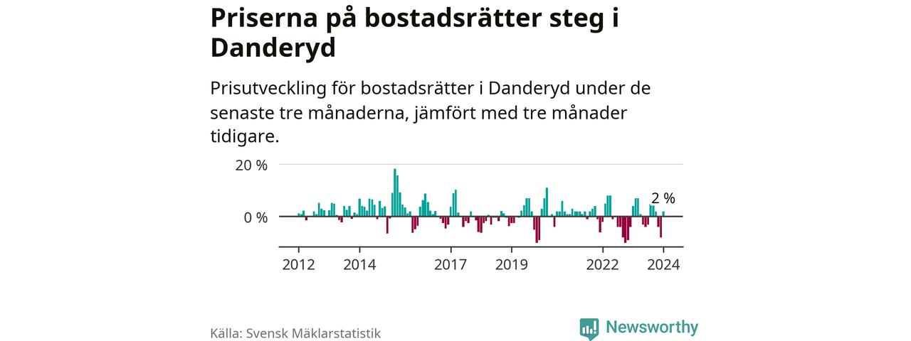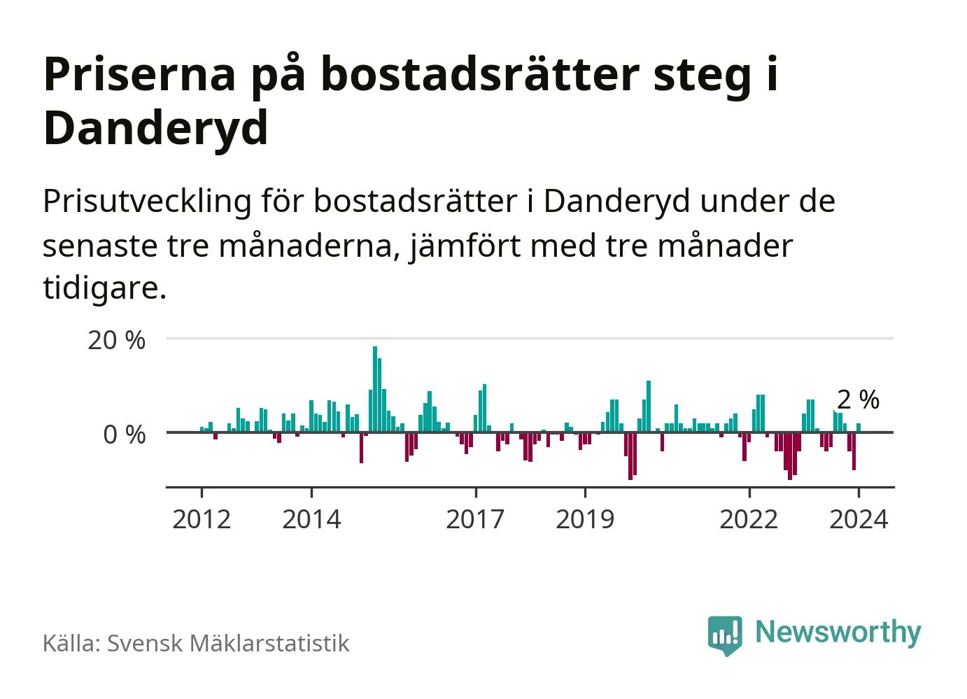 Priserna på bostadsrätter har gått upp i Danderyds kommun. Medelpriset på försäljningarna under de senaste tre månaderna visar på en uppgång med 2 procent.