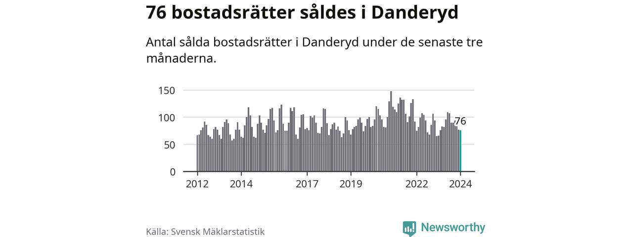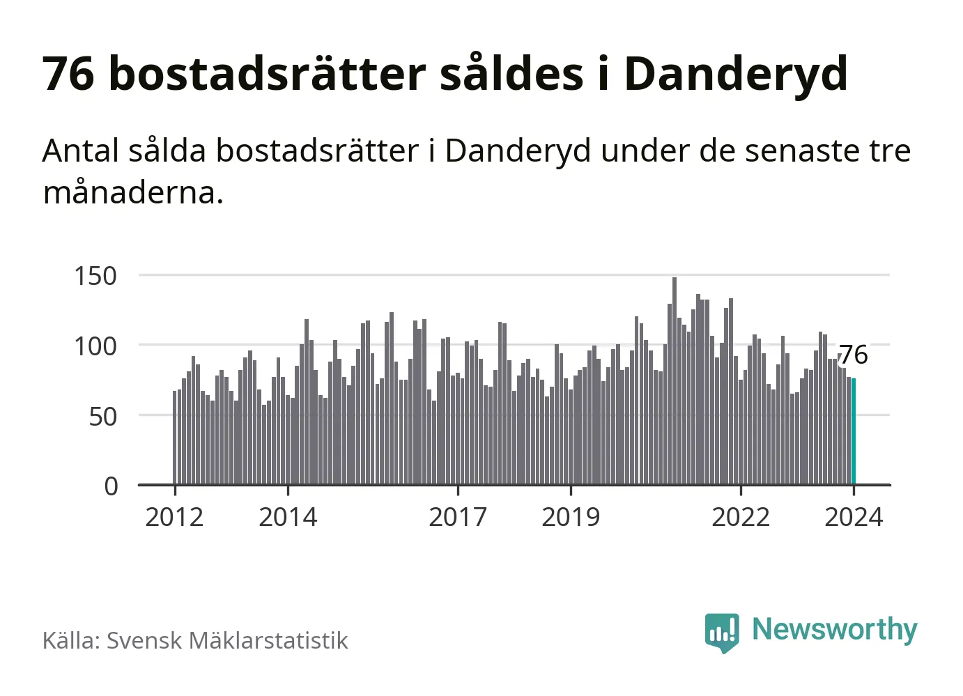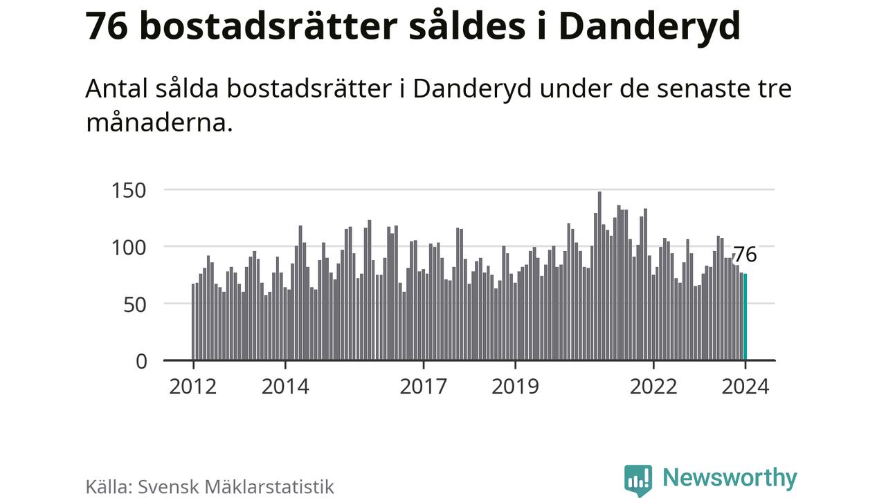 Sammanlagt såldes 76 bostadsrätter i Danderyds kommun mellan november och januari till ett genomsnittligt pris på 4,4 miljoner kronor. I fjol gjordes 66 affärer vid den här tiden på året.
