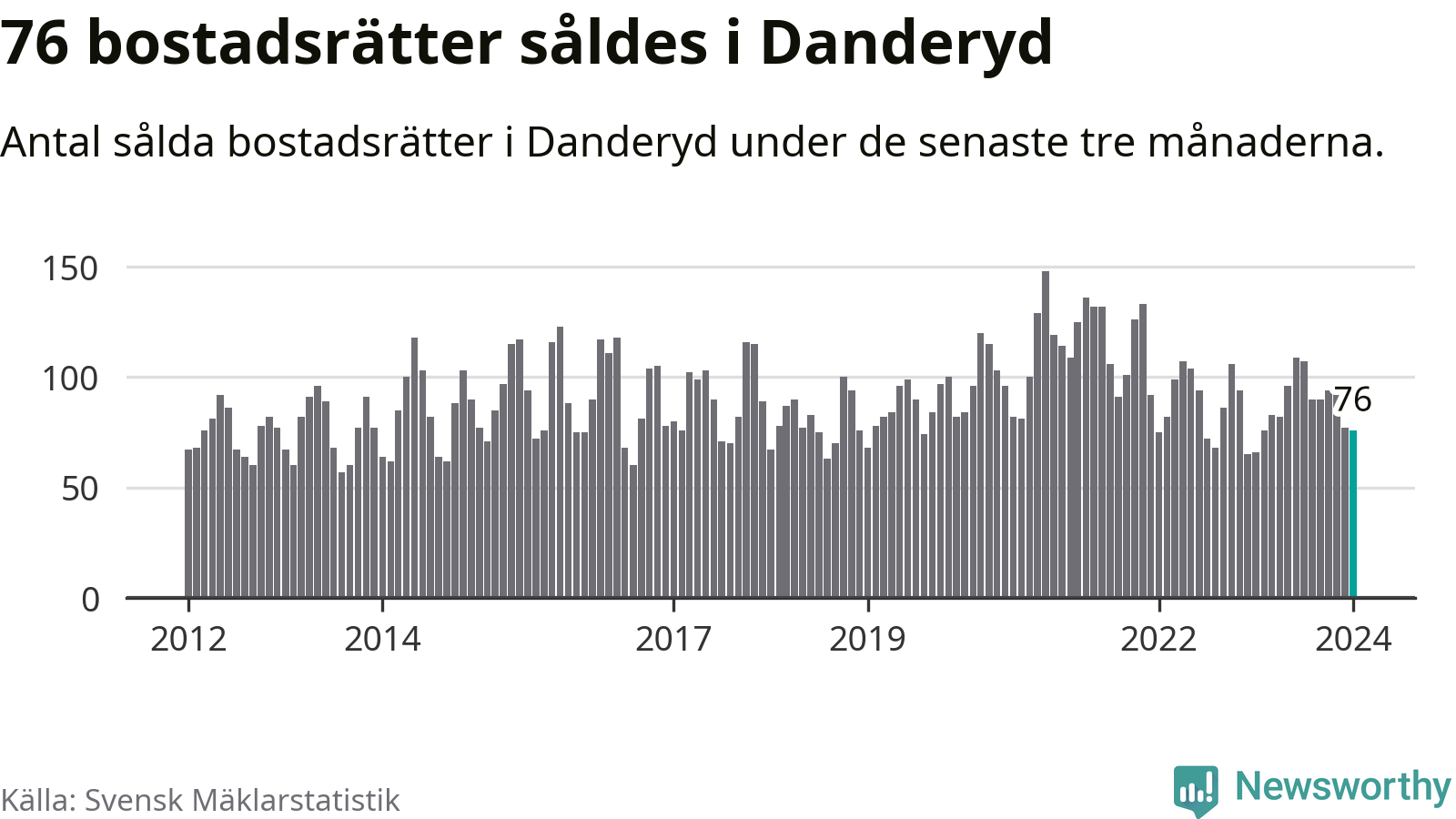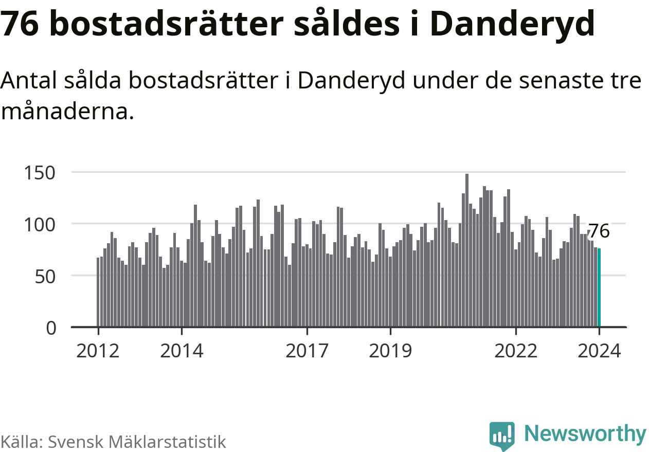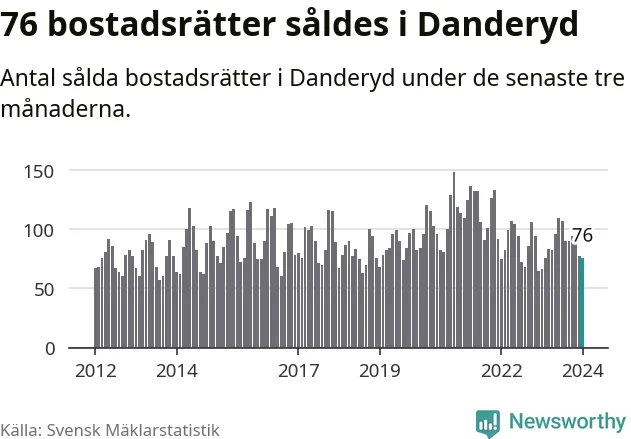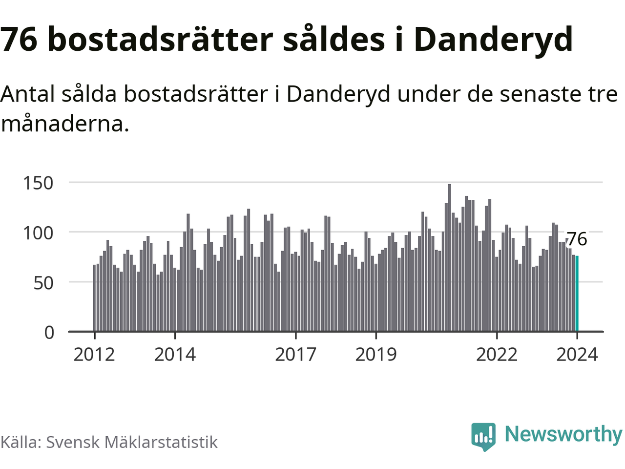 Sammanlagt såldes 76 bostadsrätter i Danderyds kommun mellan november och januari till ett genomsnittligt pris på 4,4 miljoner kronor. I fjol gjordes 66 affärer vid den här tiden på året.