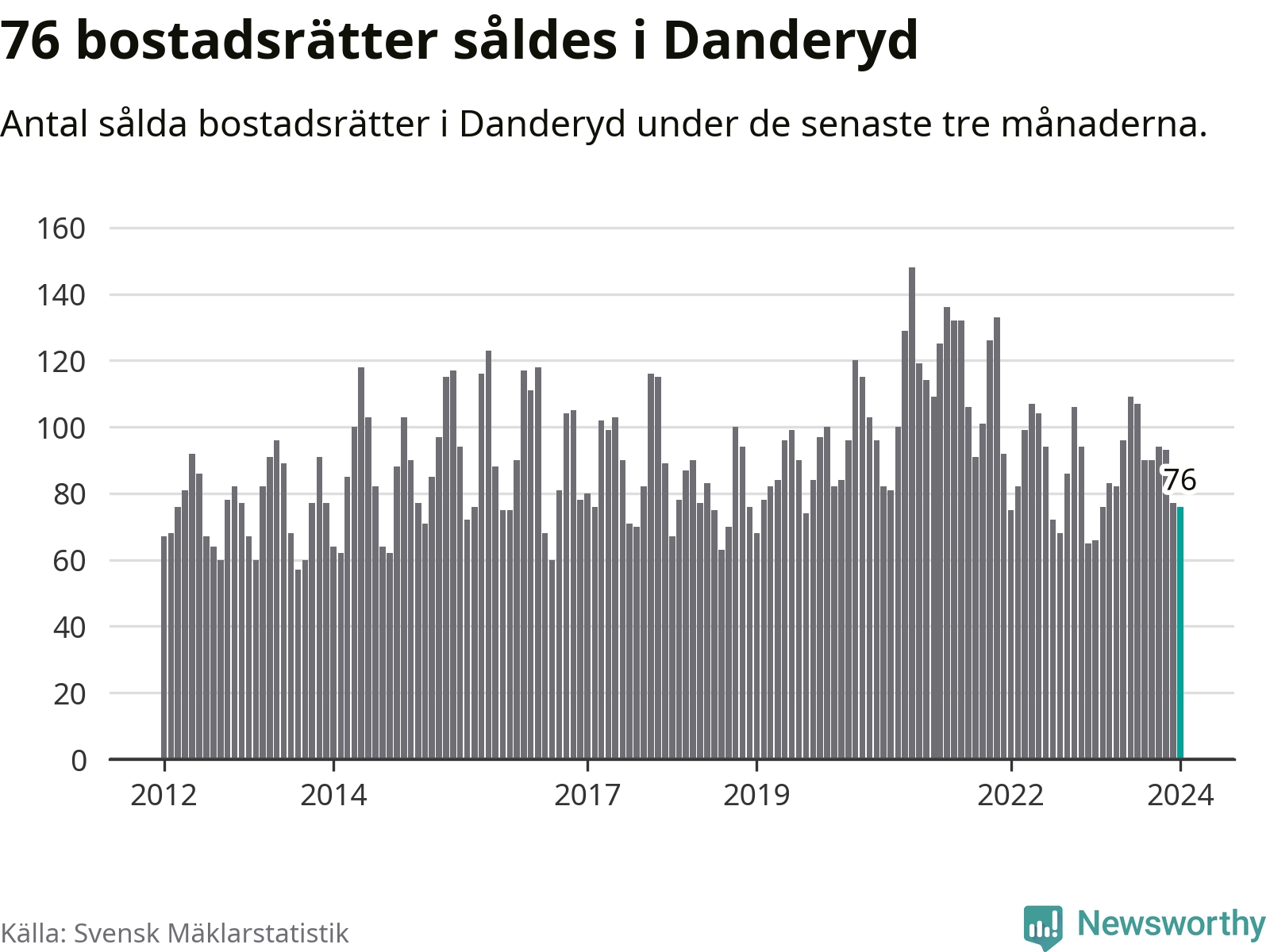 Graf: Antal sålda bostadsrätter i Danderyds kommun