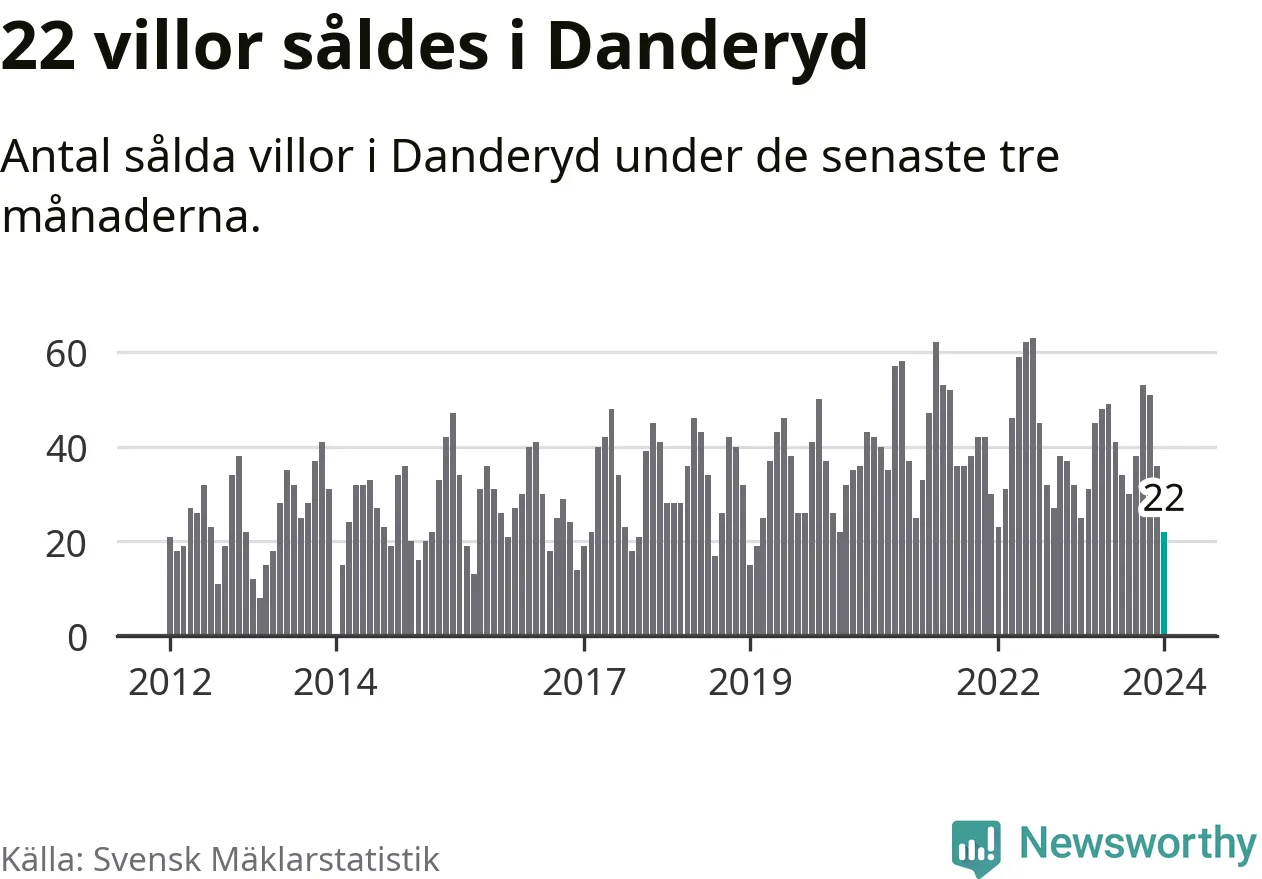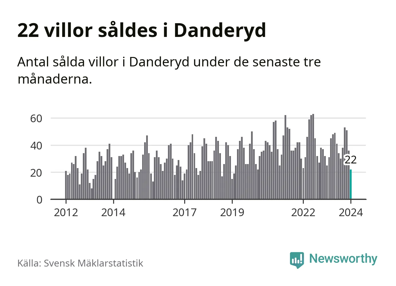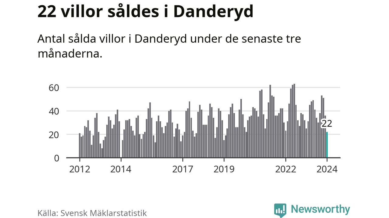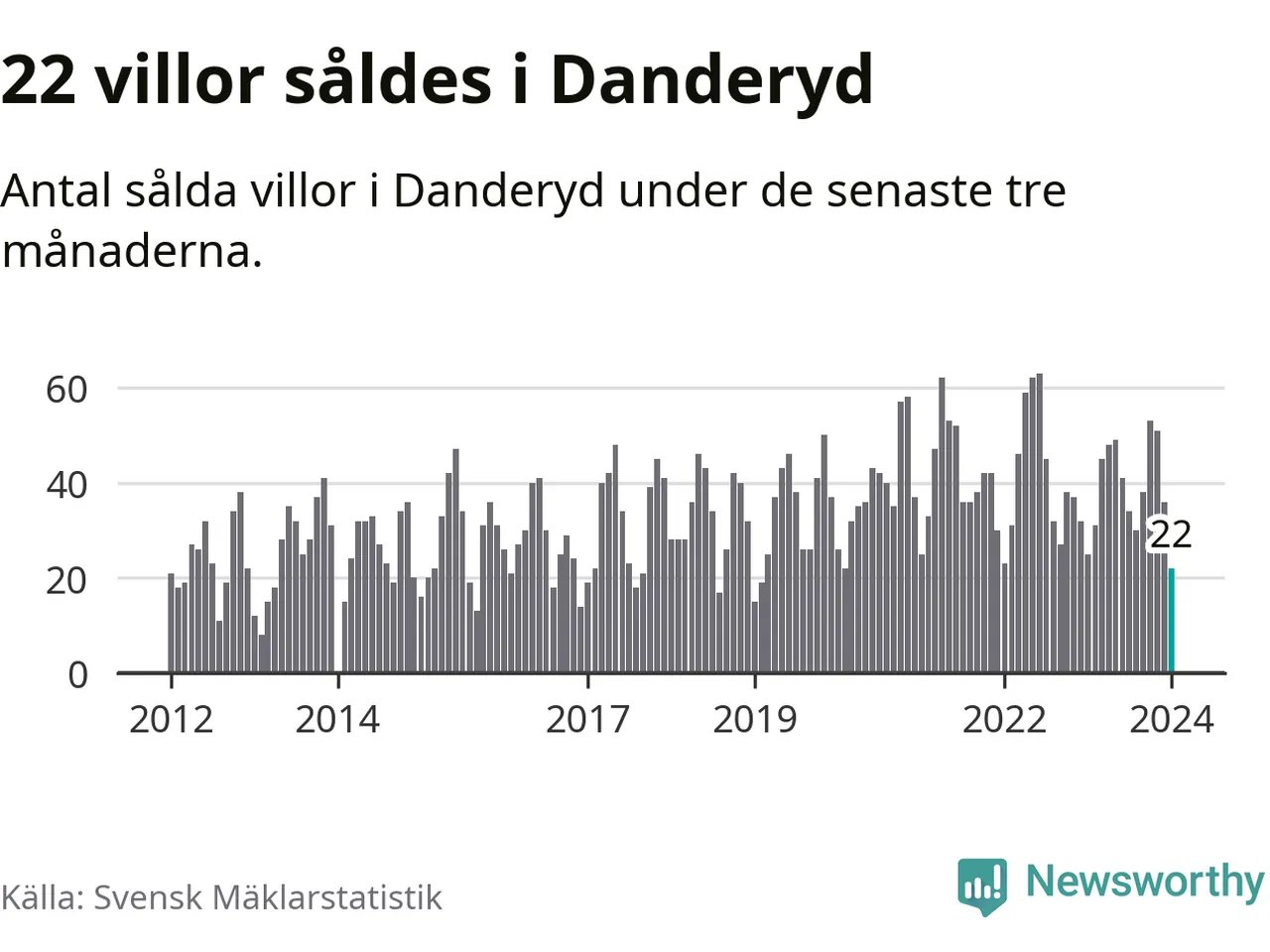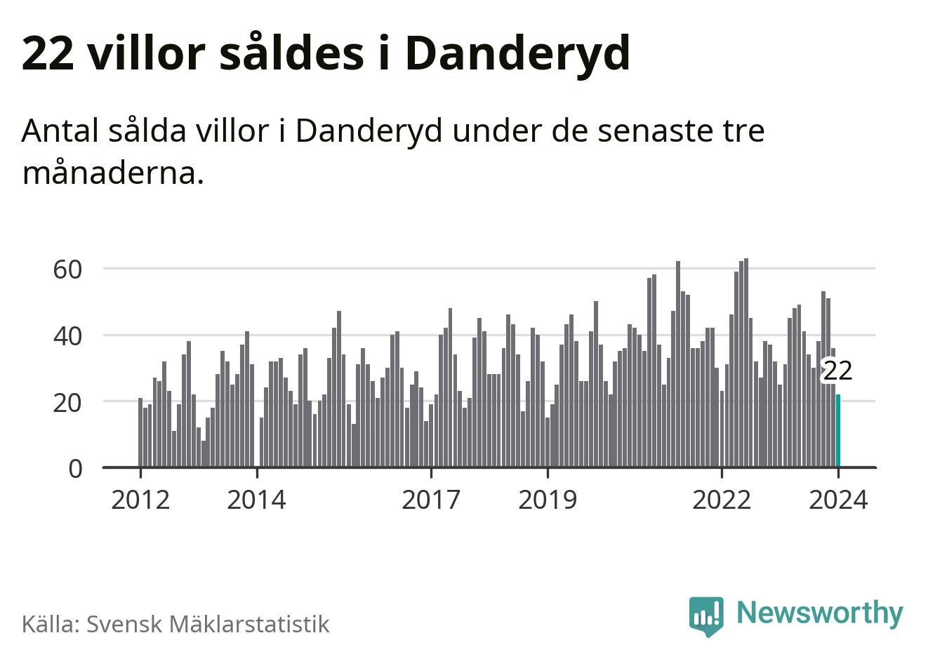 Mellan november och januari såldes 22 villor i Danderyds kommun. Det är färre än någon tremånadersperiod sedan 2020.