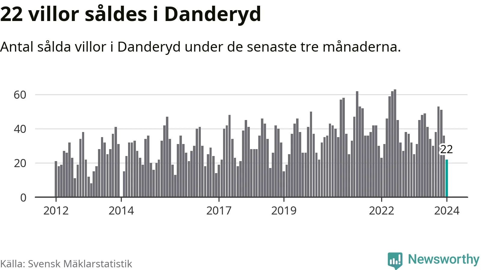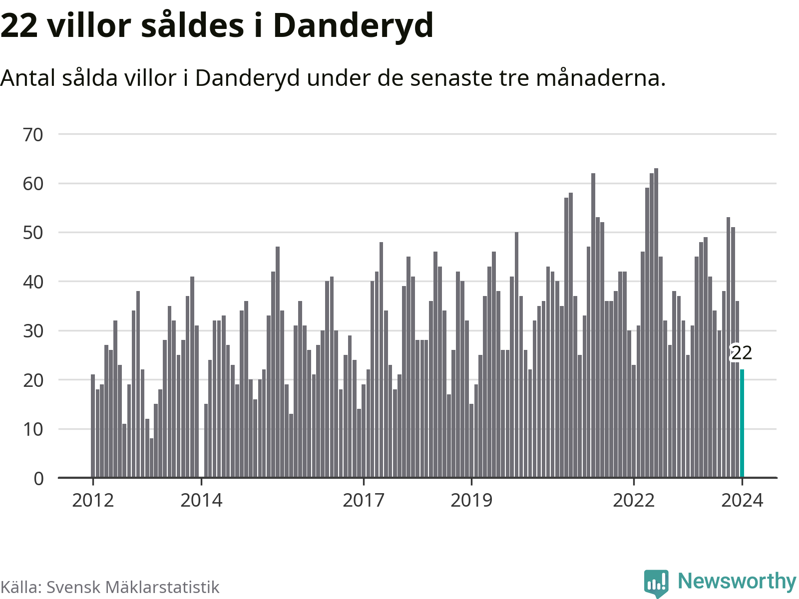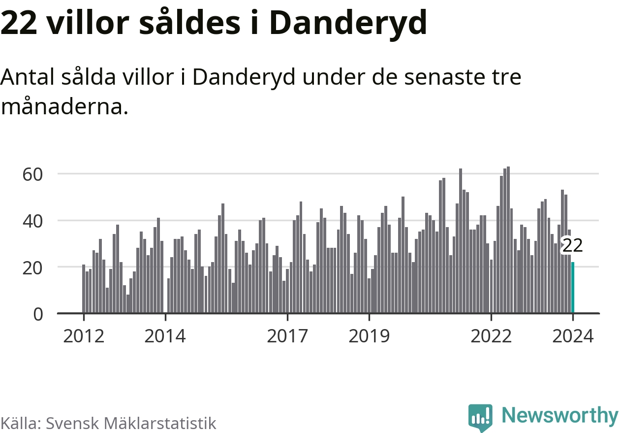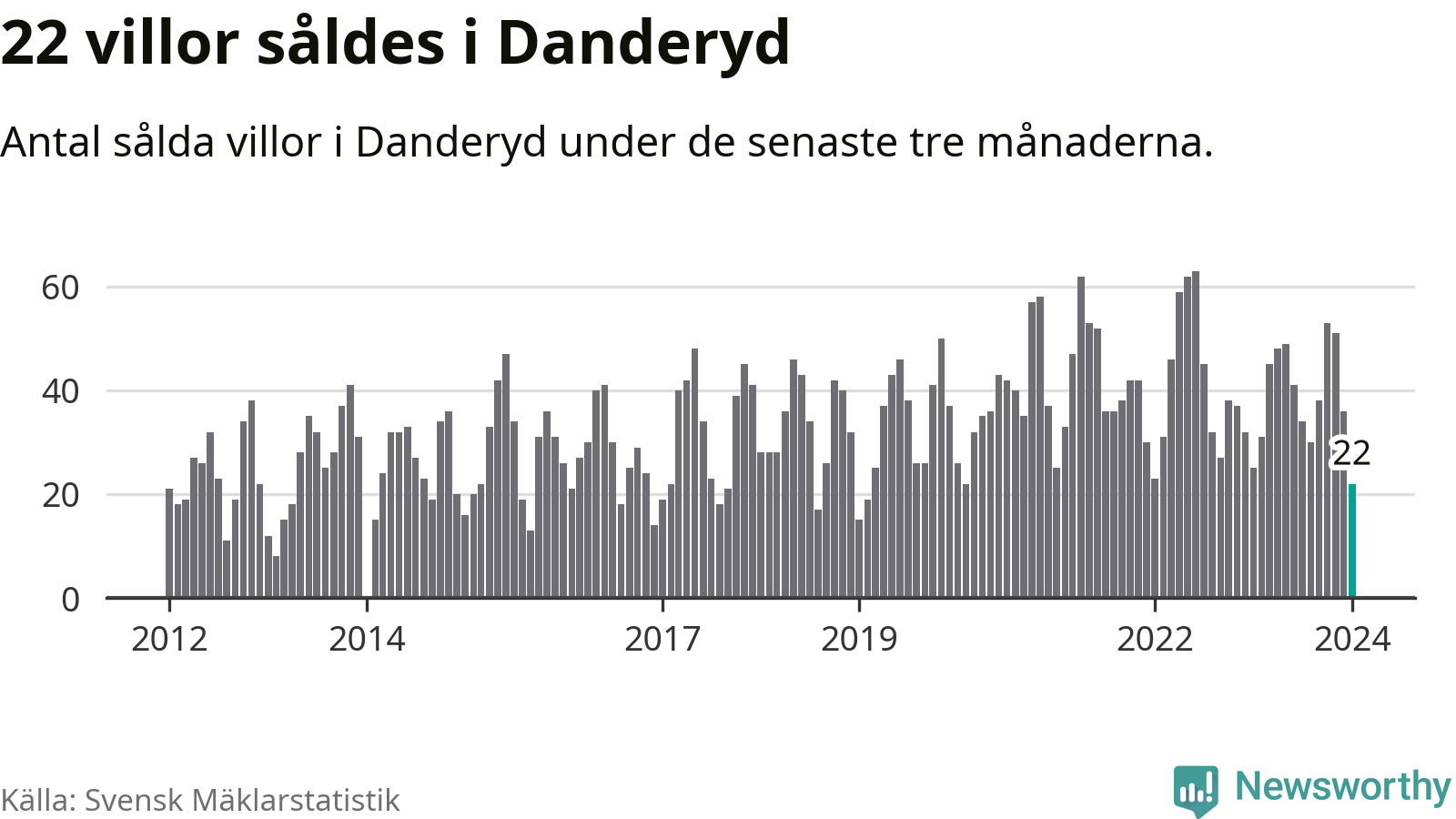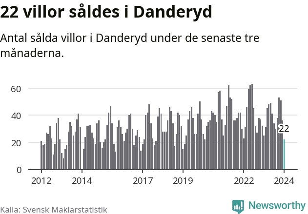 Mellan november och januari såldes 22 villor i Danderyds kommun. Det är färre än någon tremånadersperiod sedan 2020.