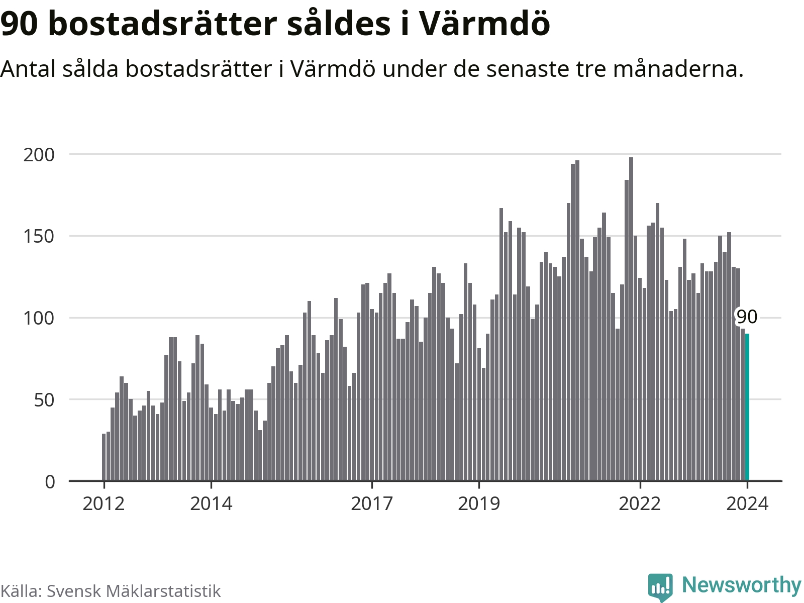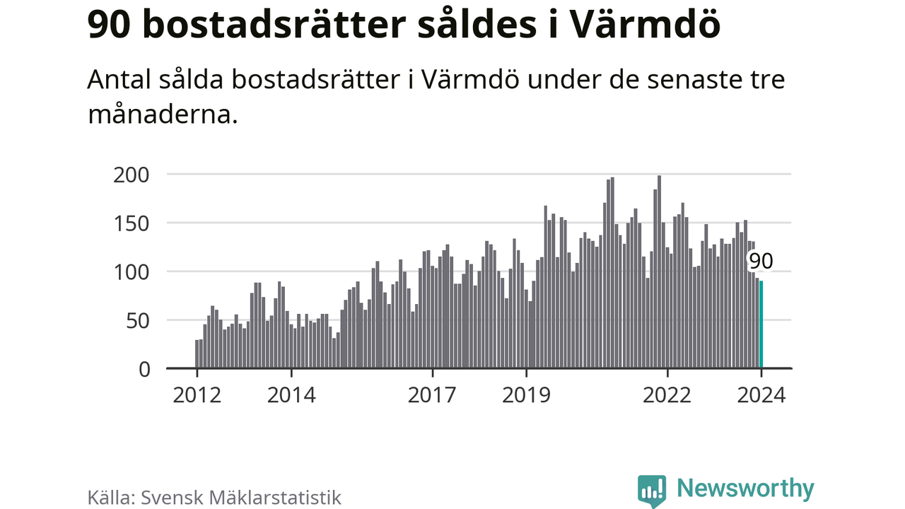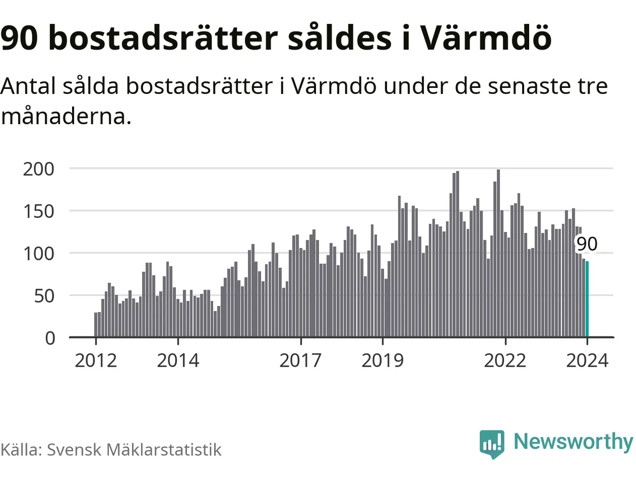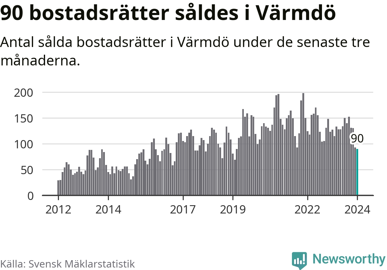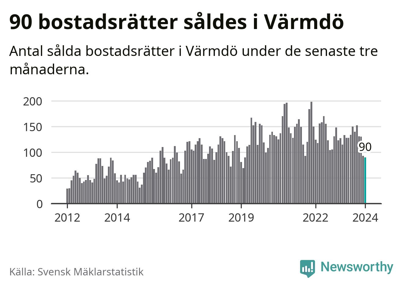 Mellan november och januari såldes 90 bostadsrätter i Värmdö kommun. Det är färre än någon tremånadersperiod sedan 2019.