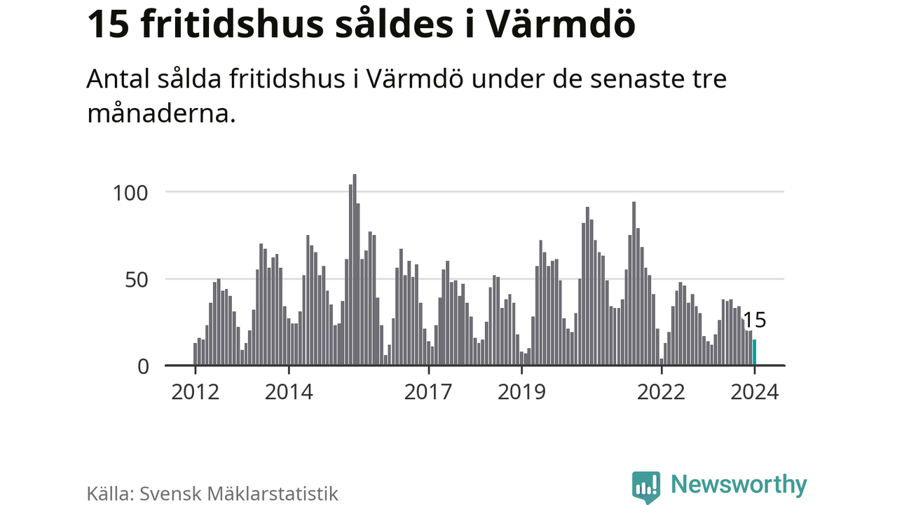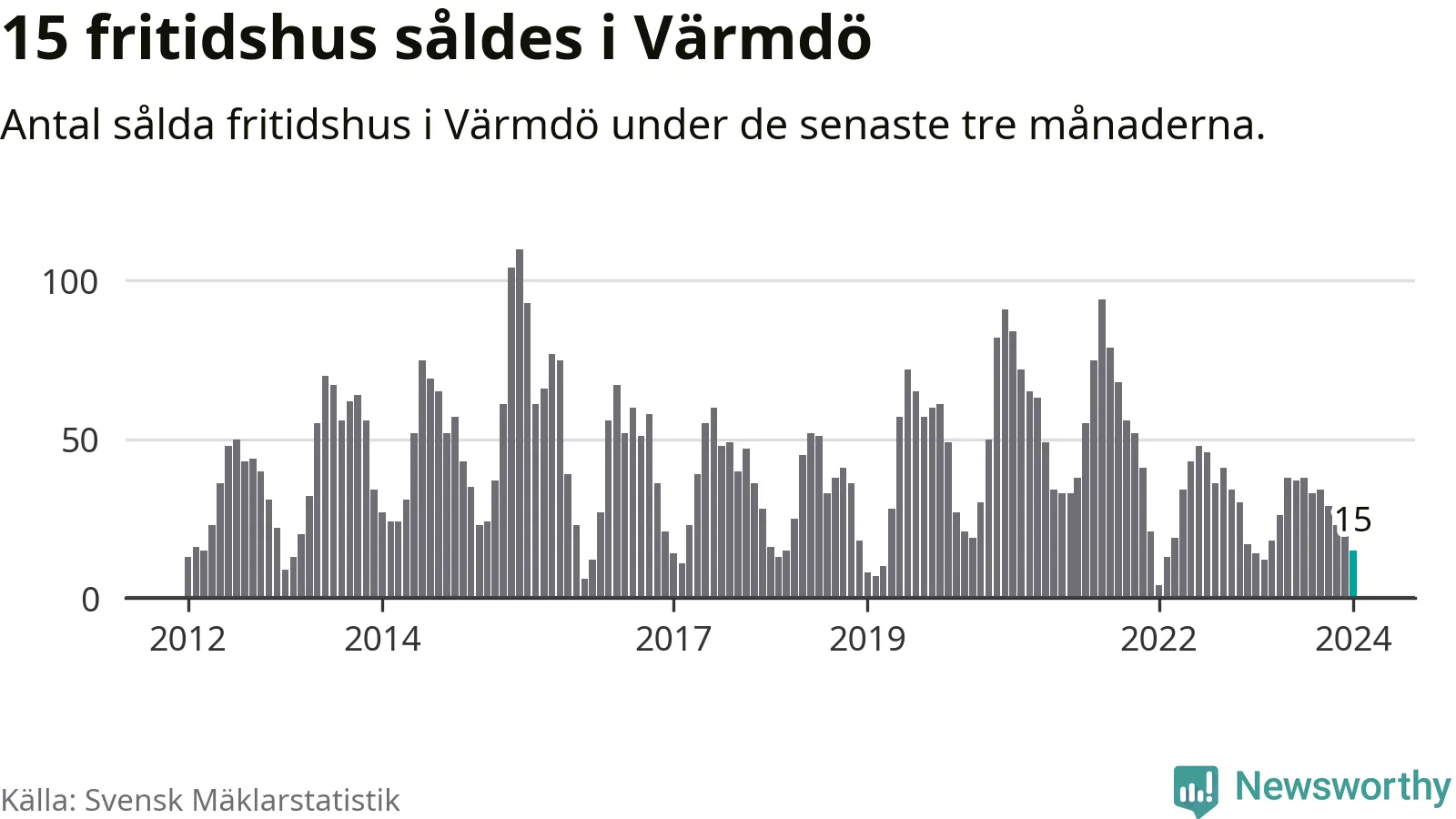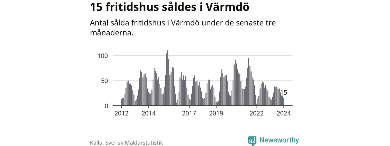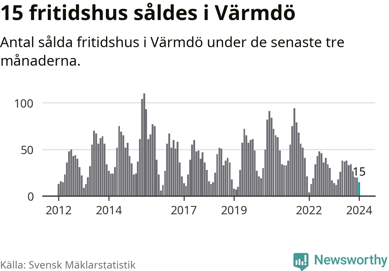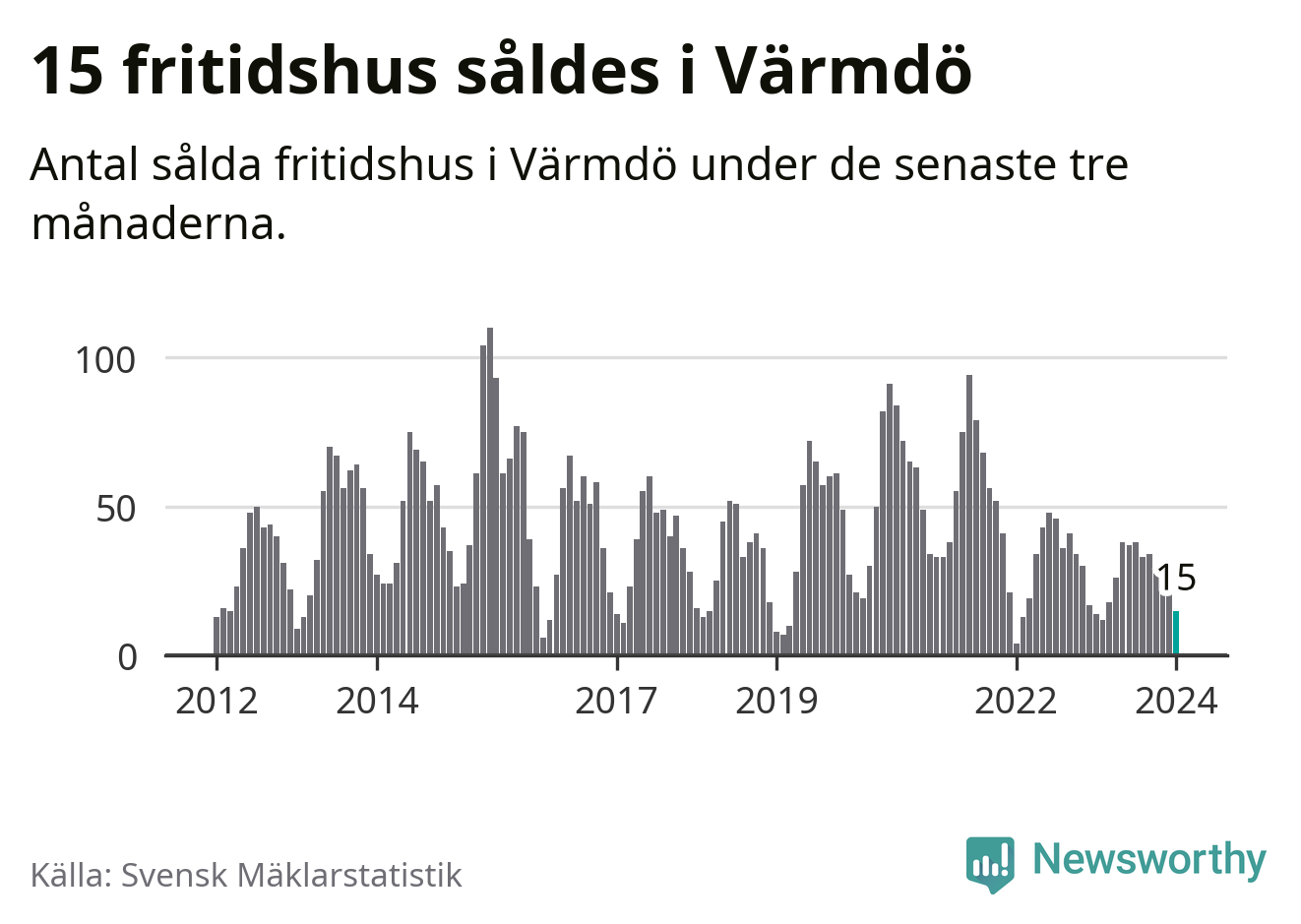 Sammanlagt såldes 15 fritidshus i Värmdö kommun mellan november 2023 och januari till ett genomsnittligt pris på 4,1 miljoner kronor. I fjol gjordes 14 affärer vid den här tiden på året.