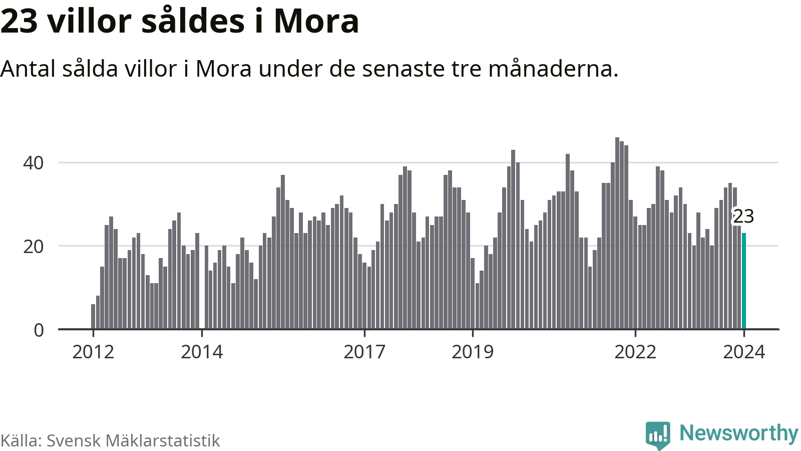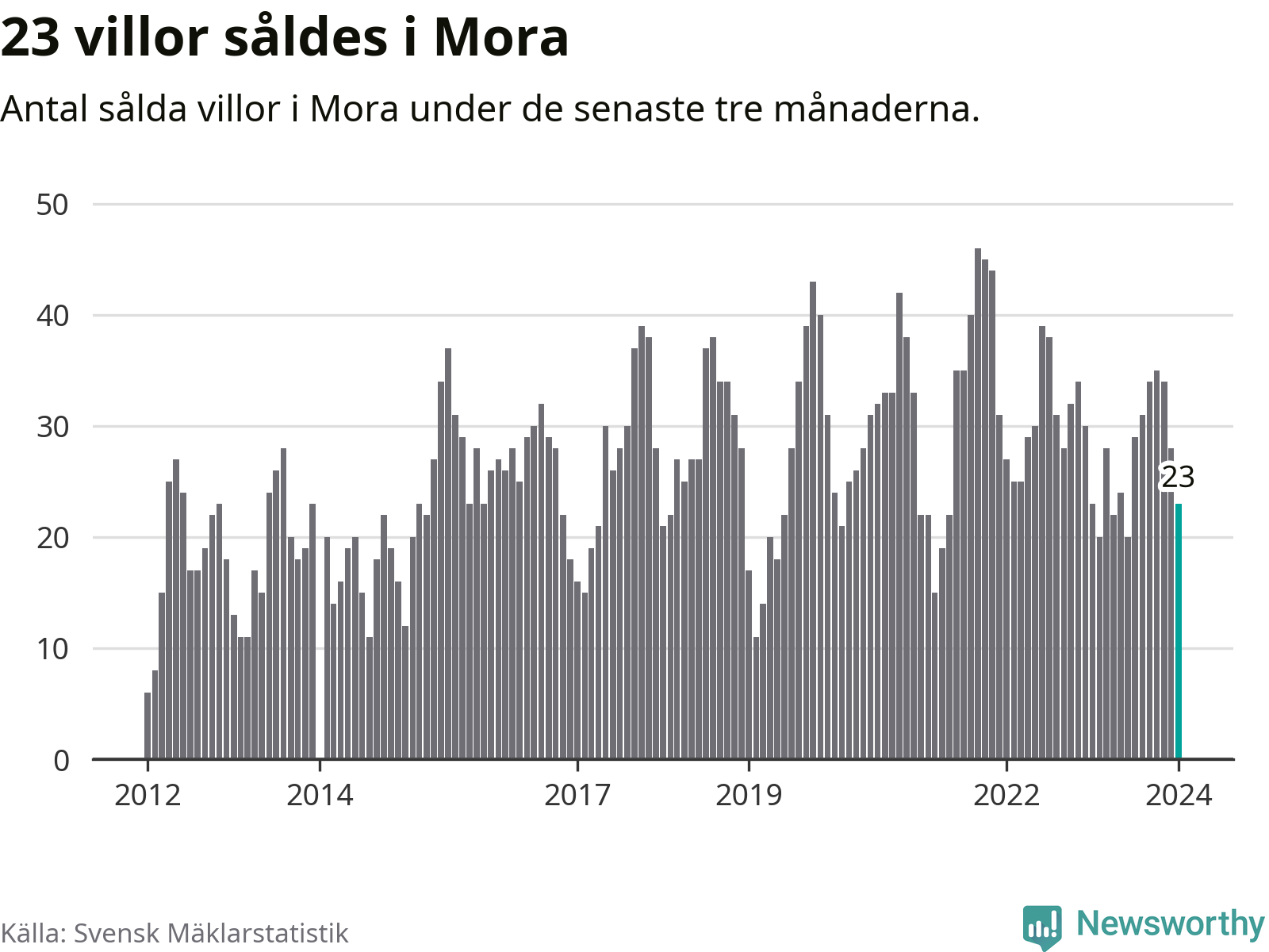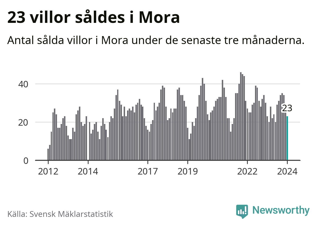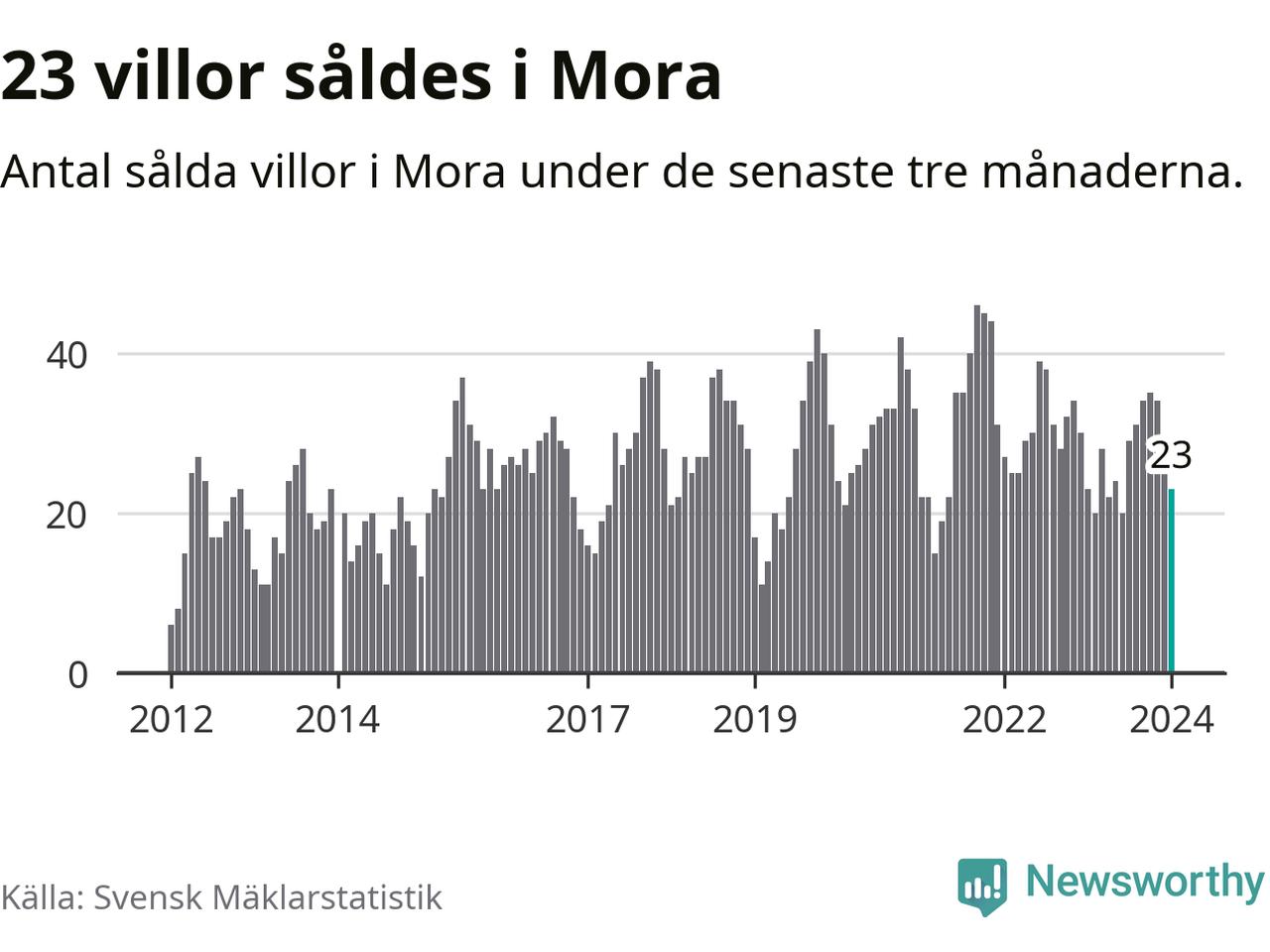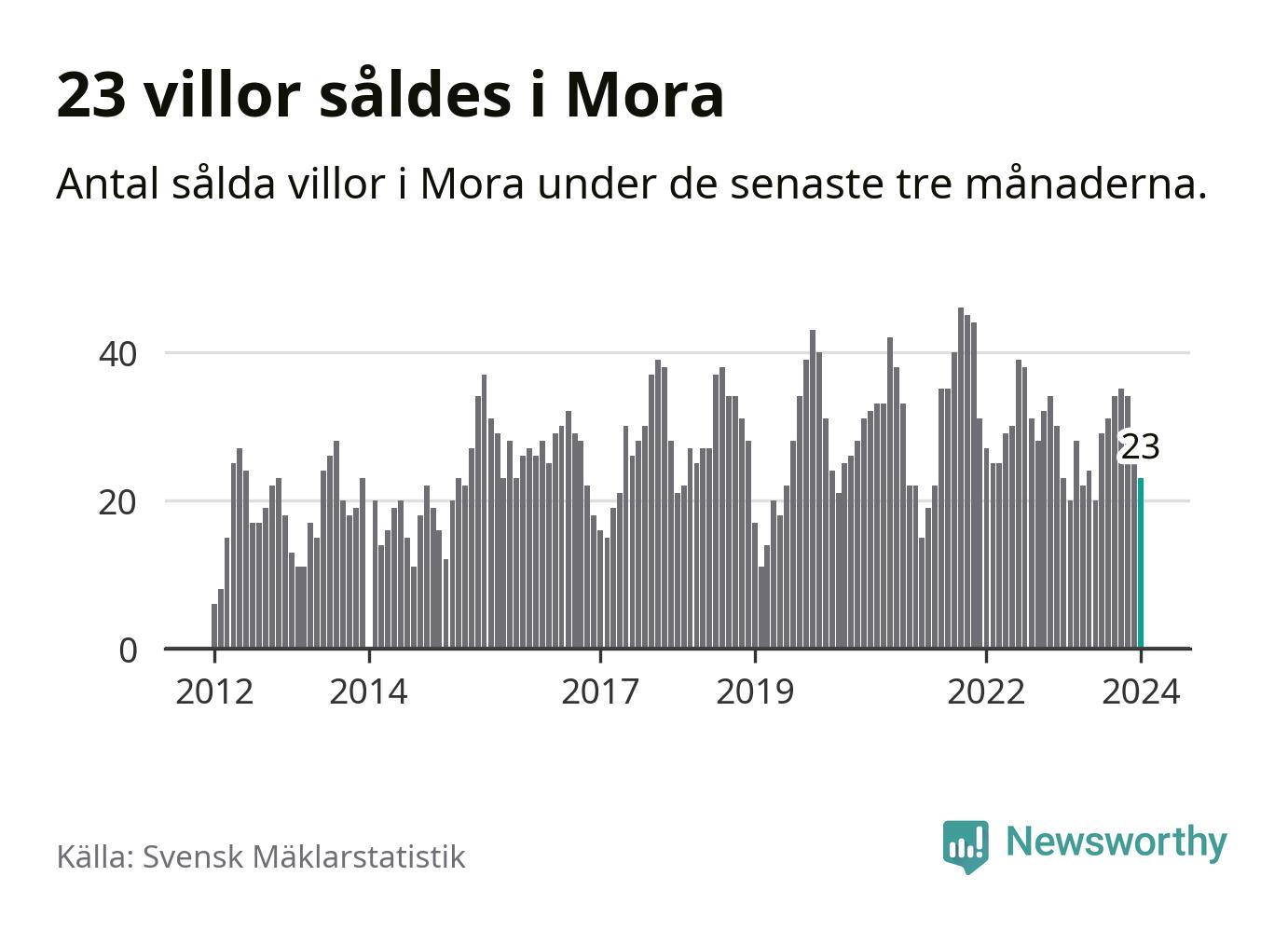 Graf: Antal sålda villor i Mora kommun