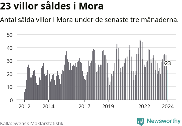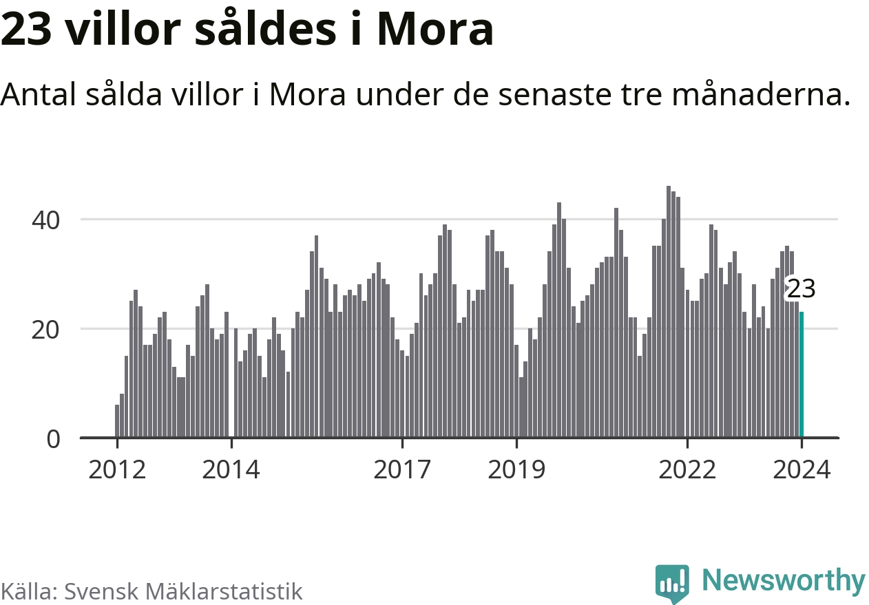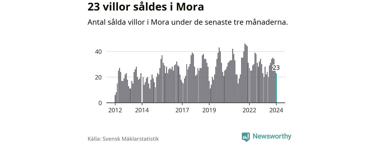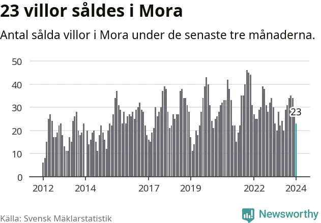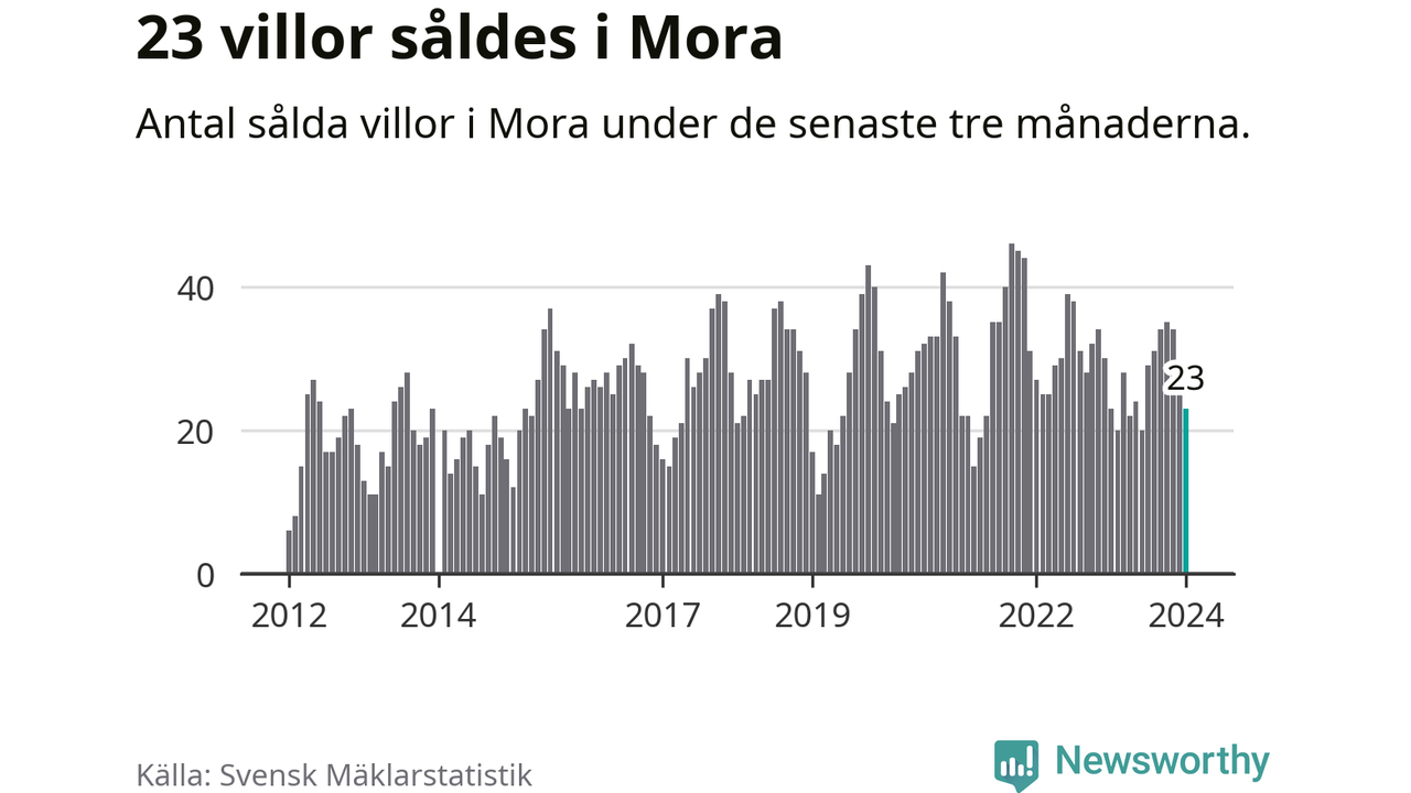 Mellan november och januari gjordes sammanlagt 23 affärer med villor i Mora kommun. Det är lika många affärer som vid motsvarande tid i fjol.