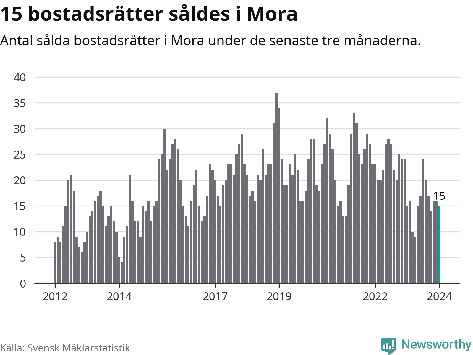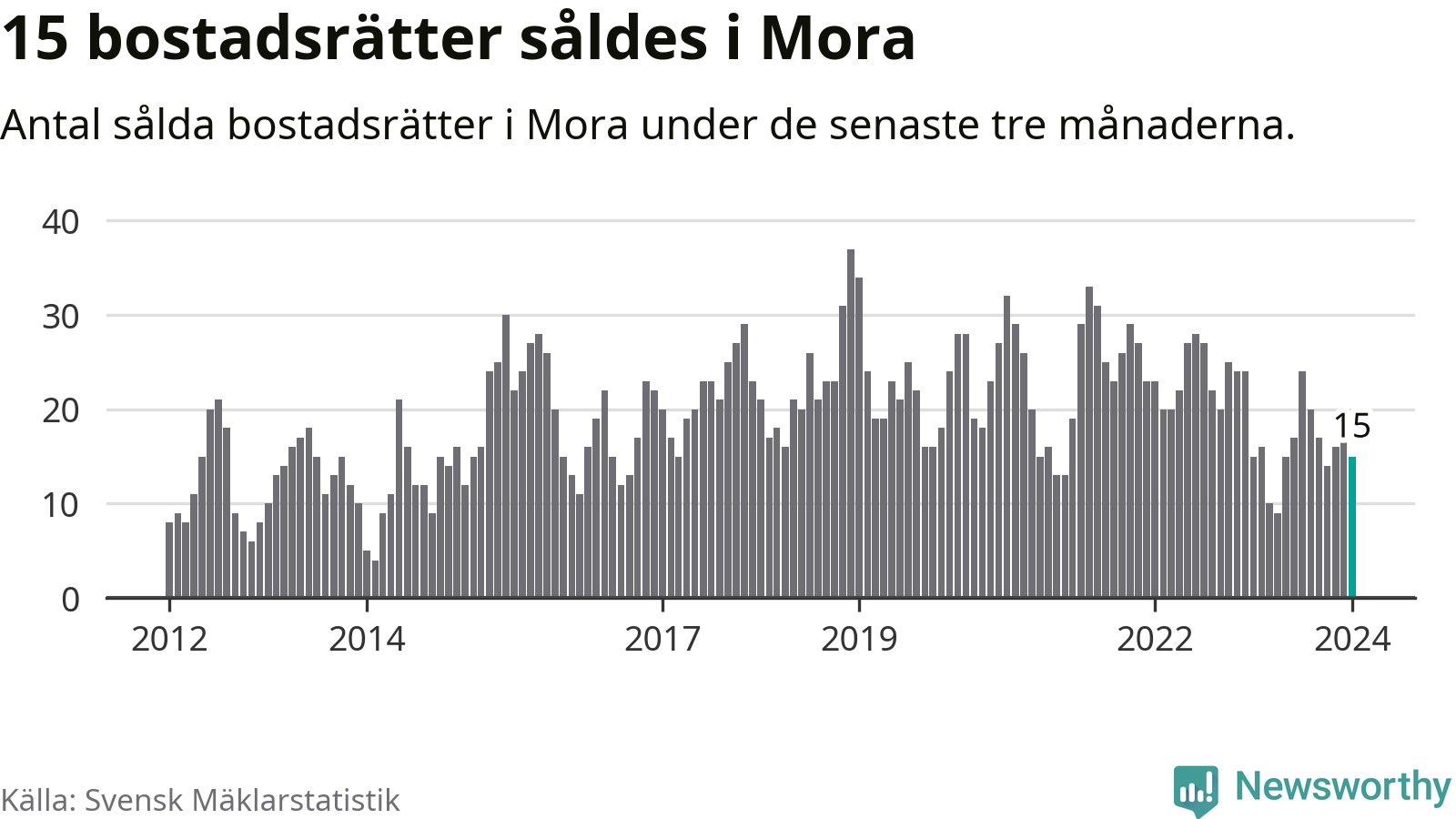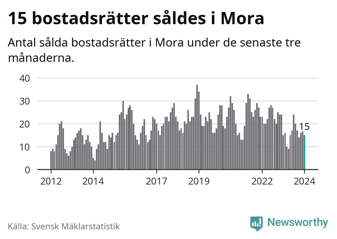 Graf: Antal sålda bostadsrätter i Mora kommun