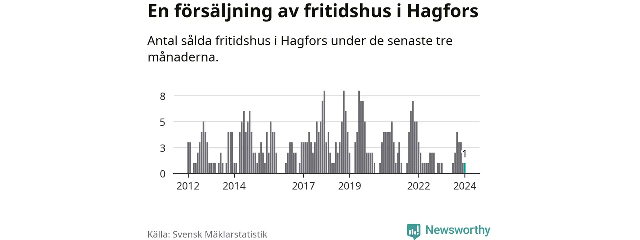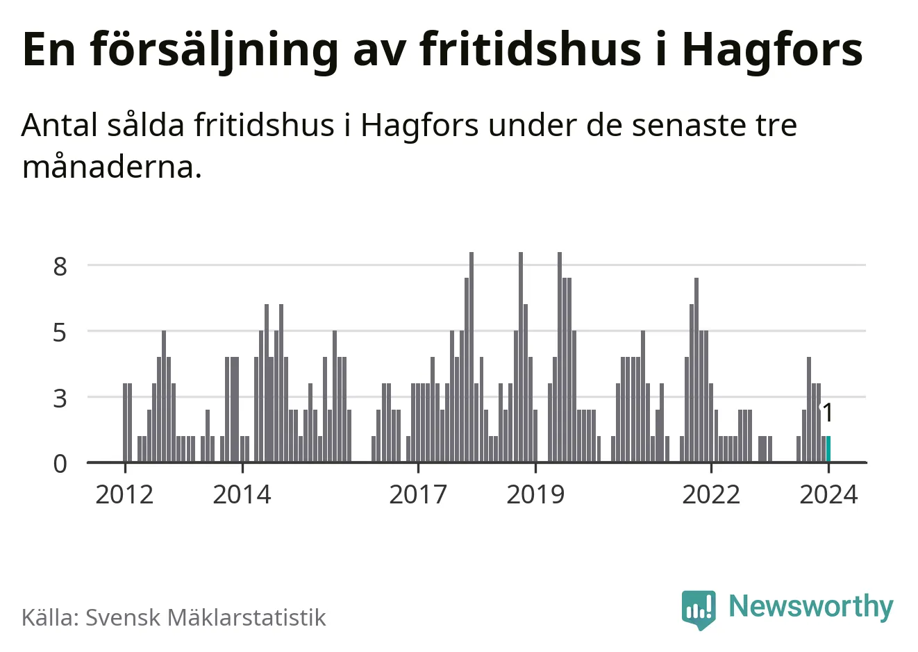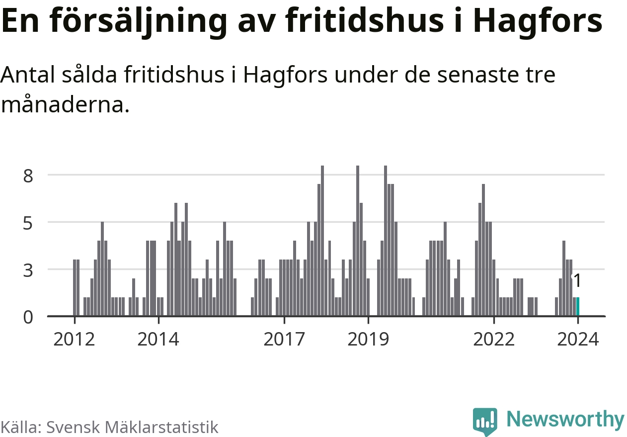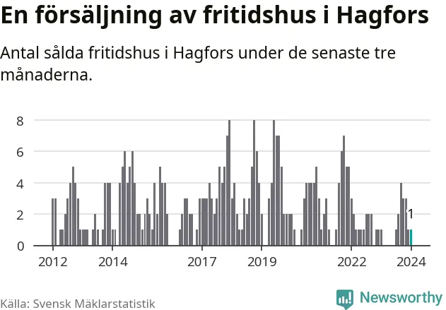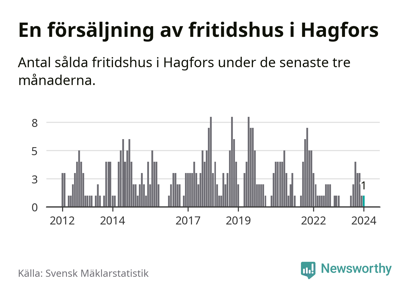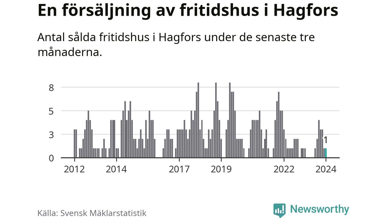 Mellan november och januari gjordes sammanlagt en affär med fritidshus i Hagfors kommun. Det är lika många affärer som vid motsvarande tid i fjol.