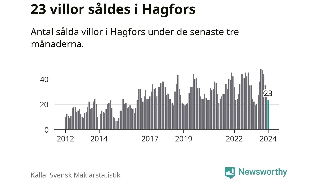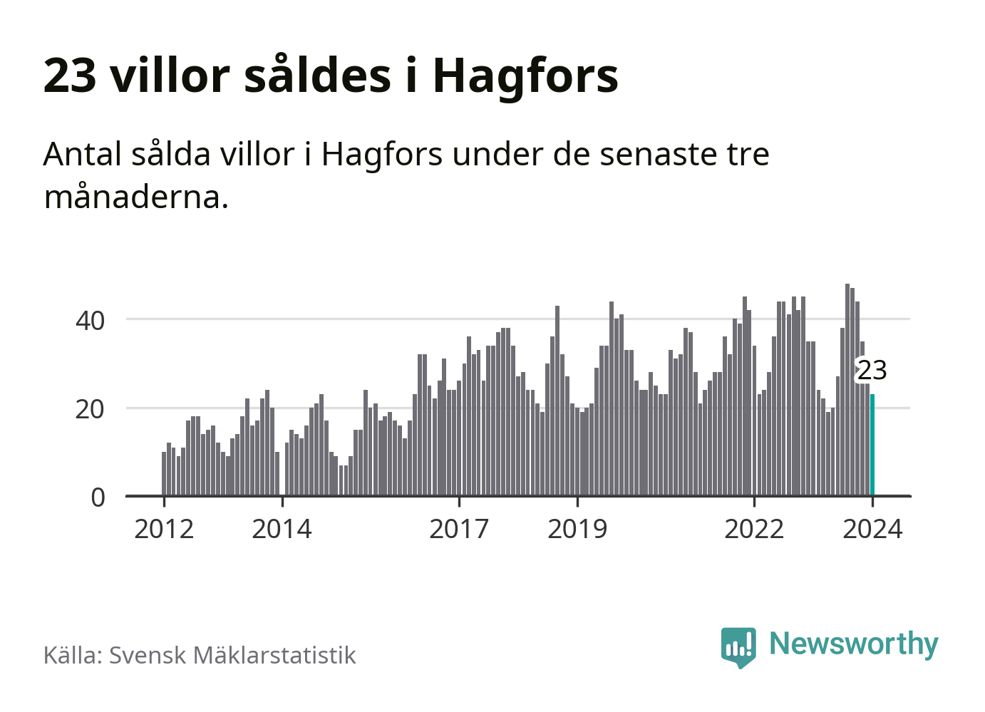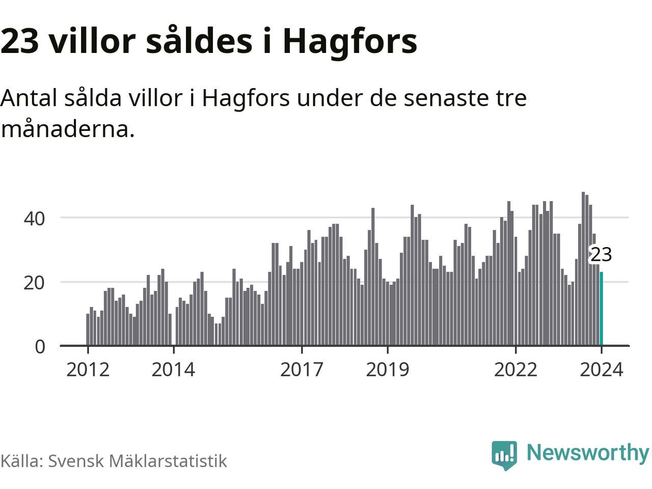 Mellan november och januari gjordes sammanlagt 23 affärer med villor i Hagfors kommun. Det kan jämföras med 35 vid motsvarande tid i fjol.