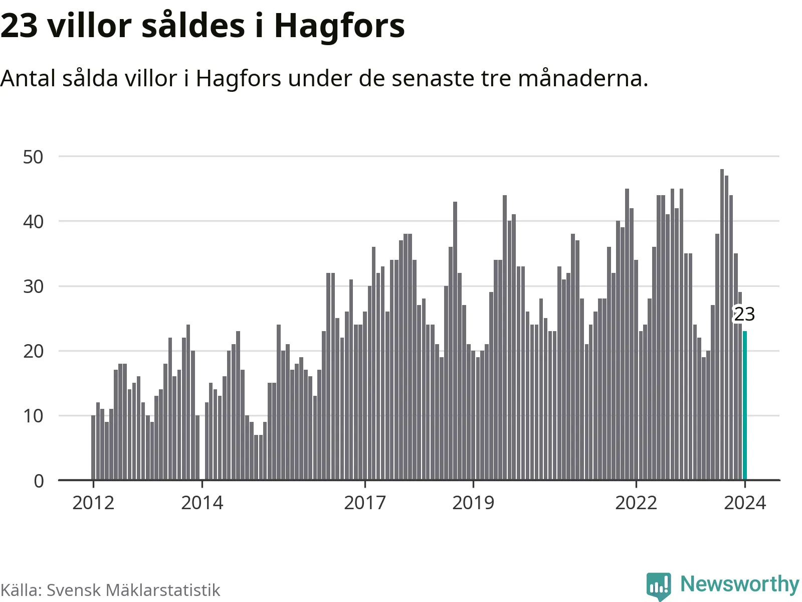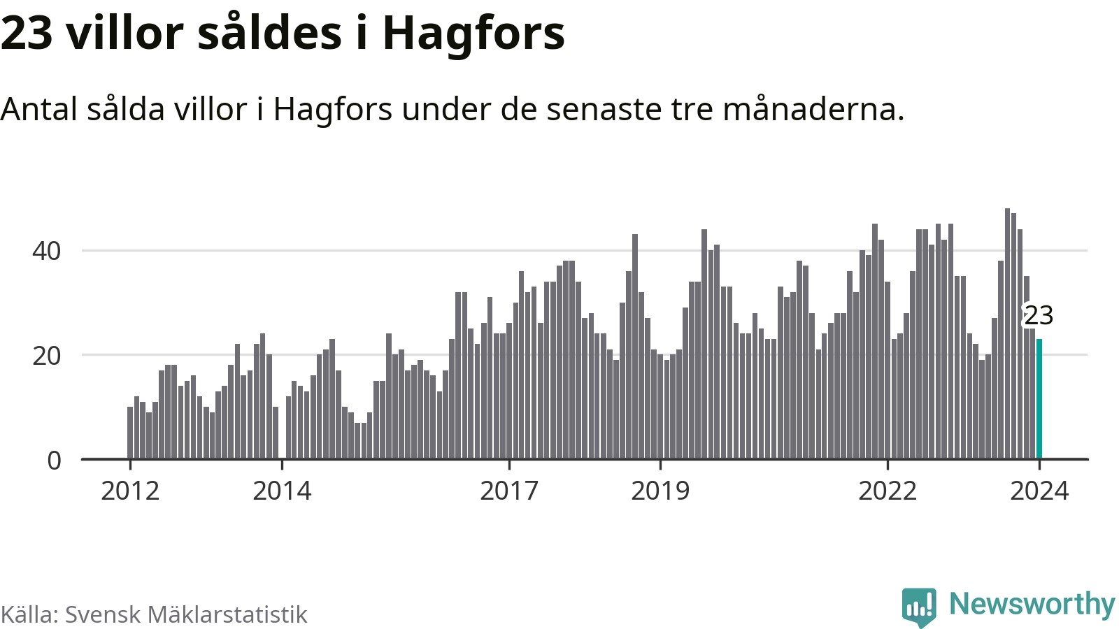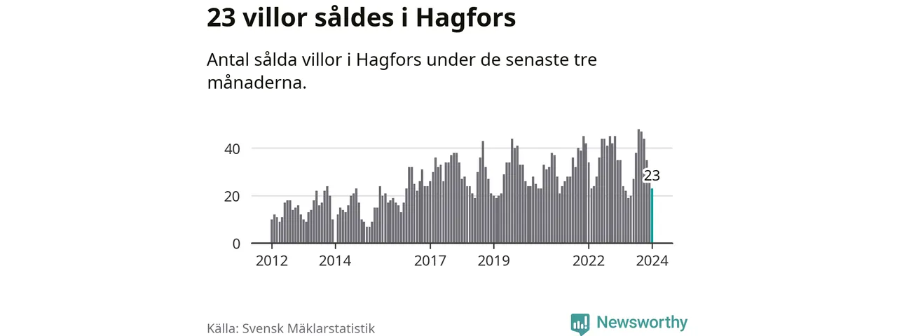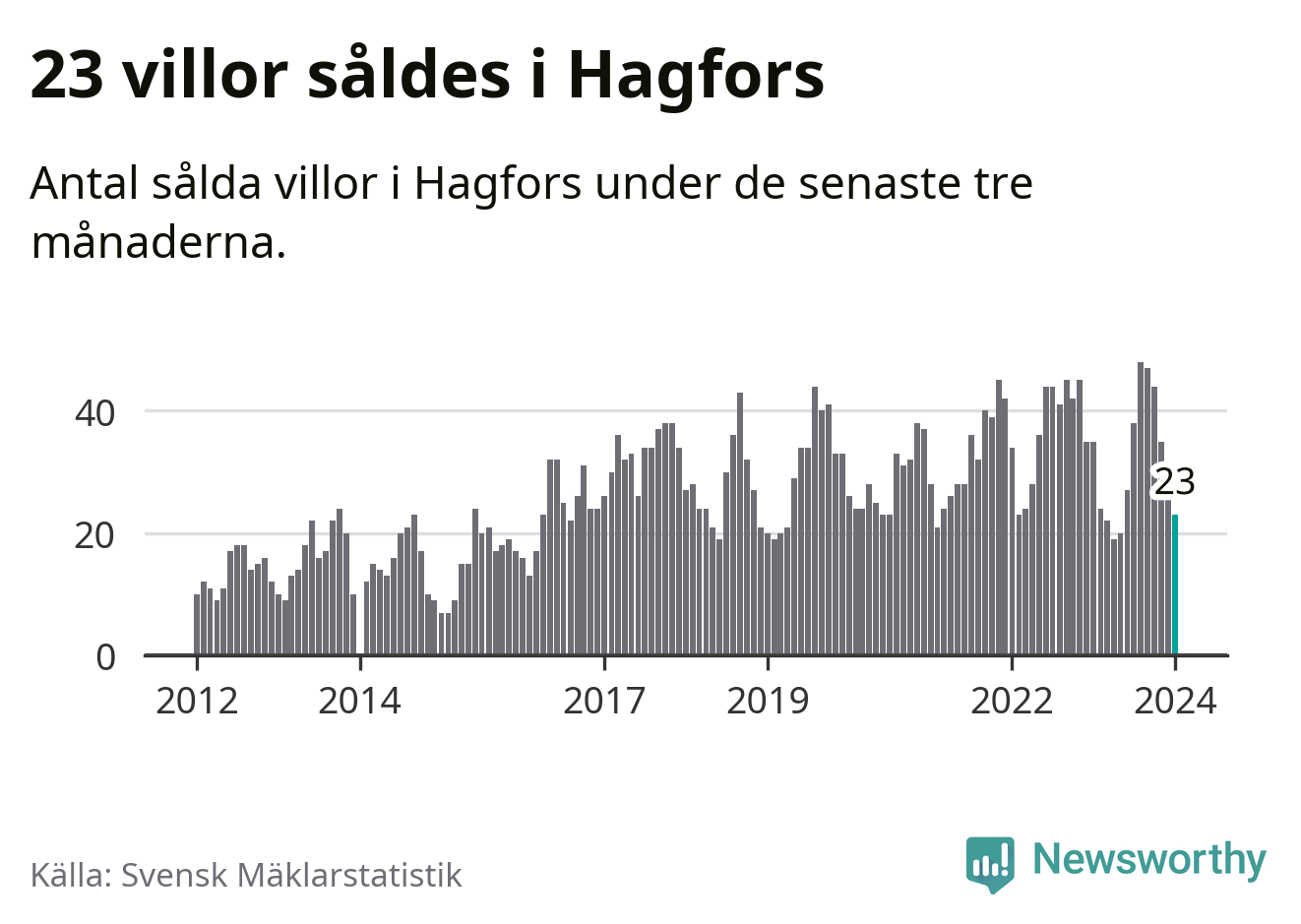 Mellan november och januari gjordes sammanlagt 23 affärer med villor i Hagfors kommun. Det kan jämföras med 35 vid motsvarande tid i fjol.