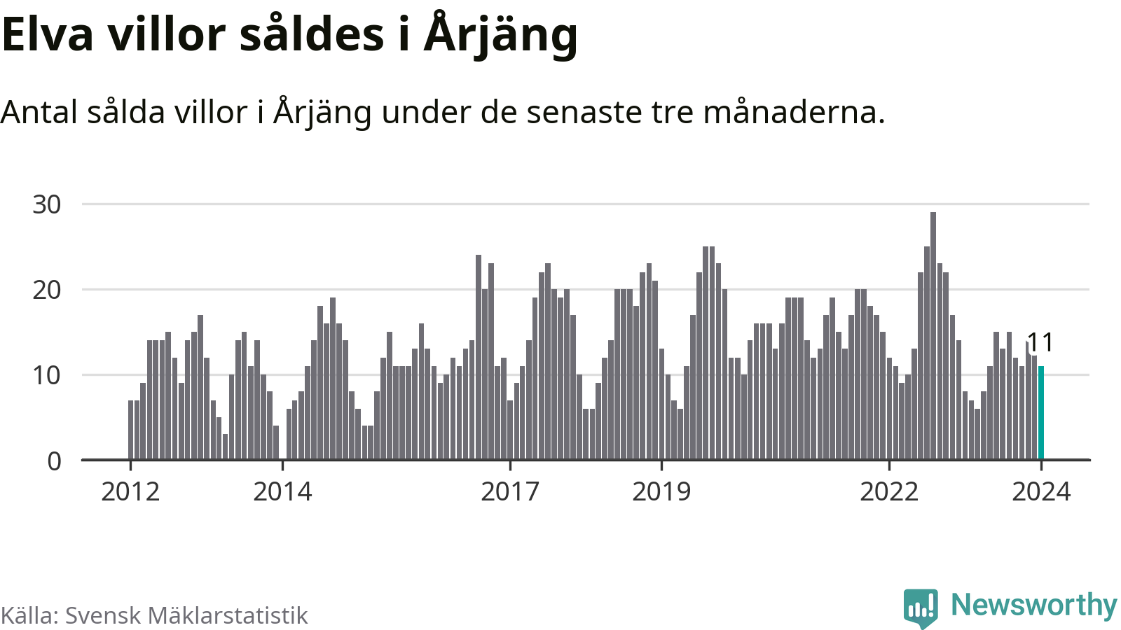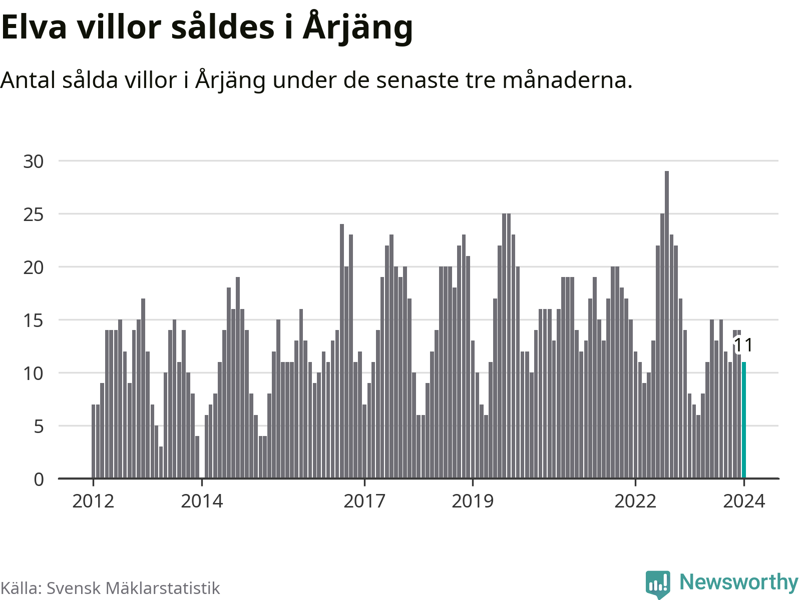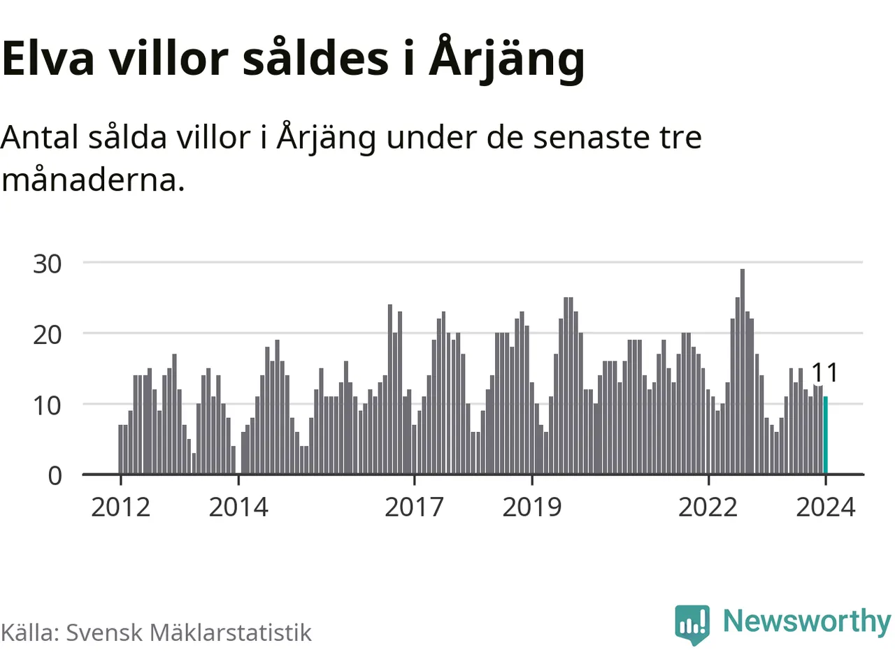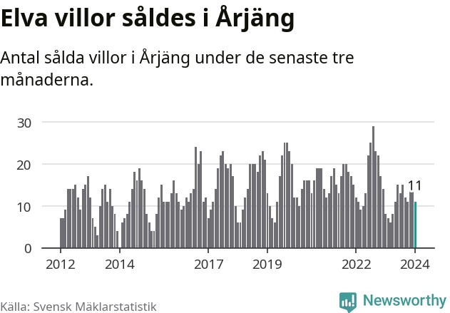 Mellan november och januari gjordes sammanlagt elva affärer med villor i Årjängs kommun. Det kan jämföras med åtta vid motsvarande tid i fjol.