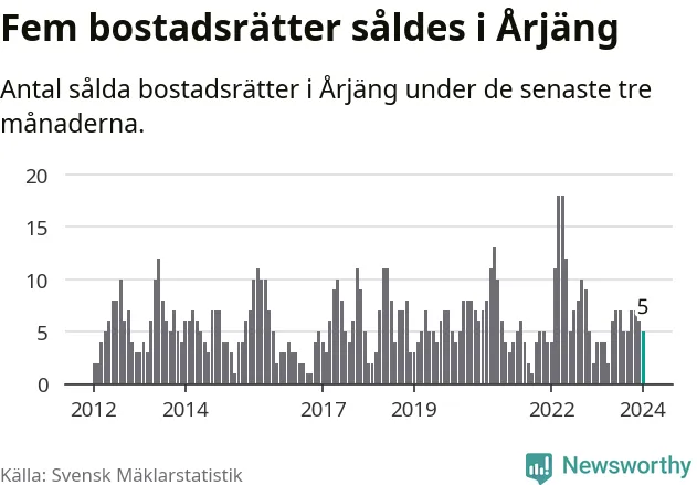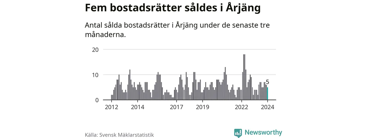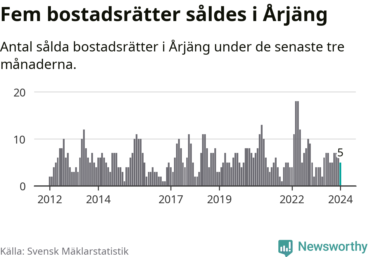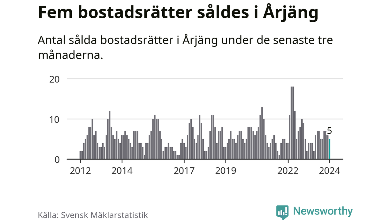 Mellan november och januari gjordes sammanlagt fem affärer med bostadsrätter i Årjängs kommun. Det kan jämföras med fyra vid motsvarande tid i fjol.