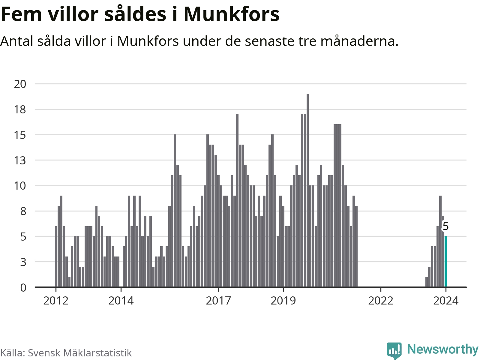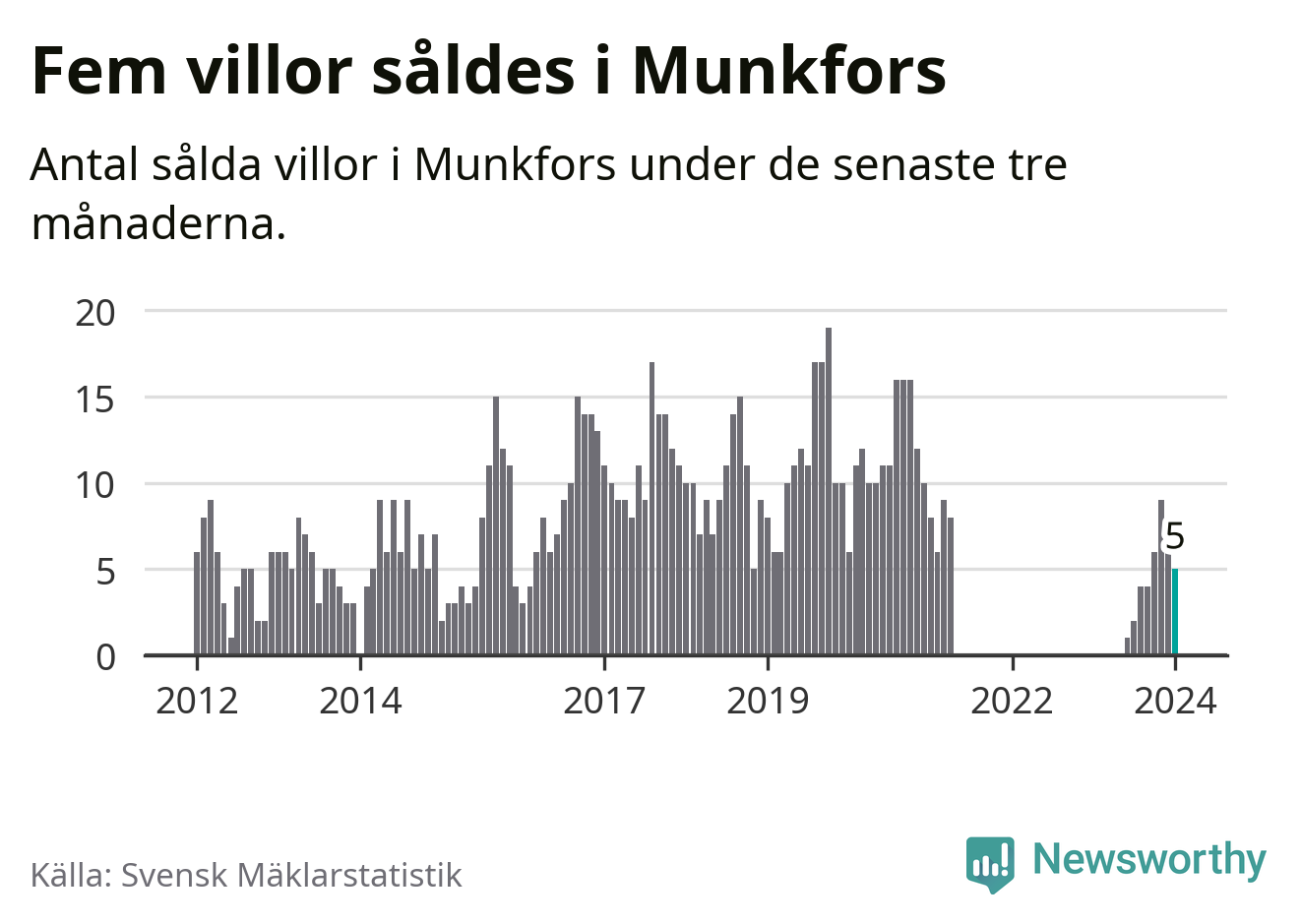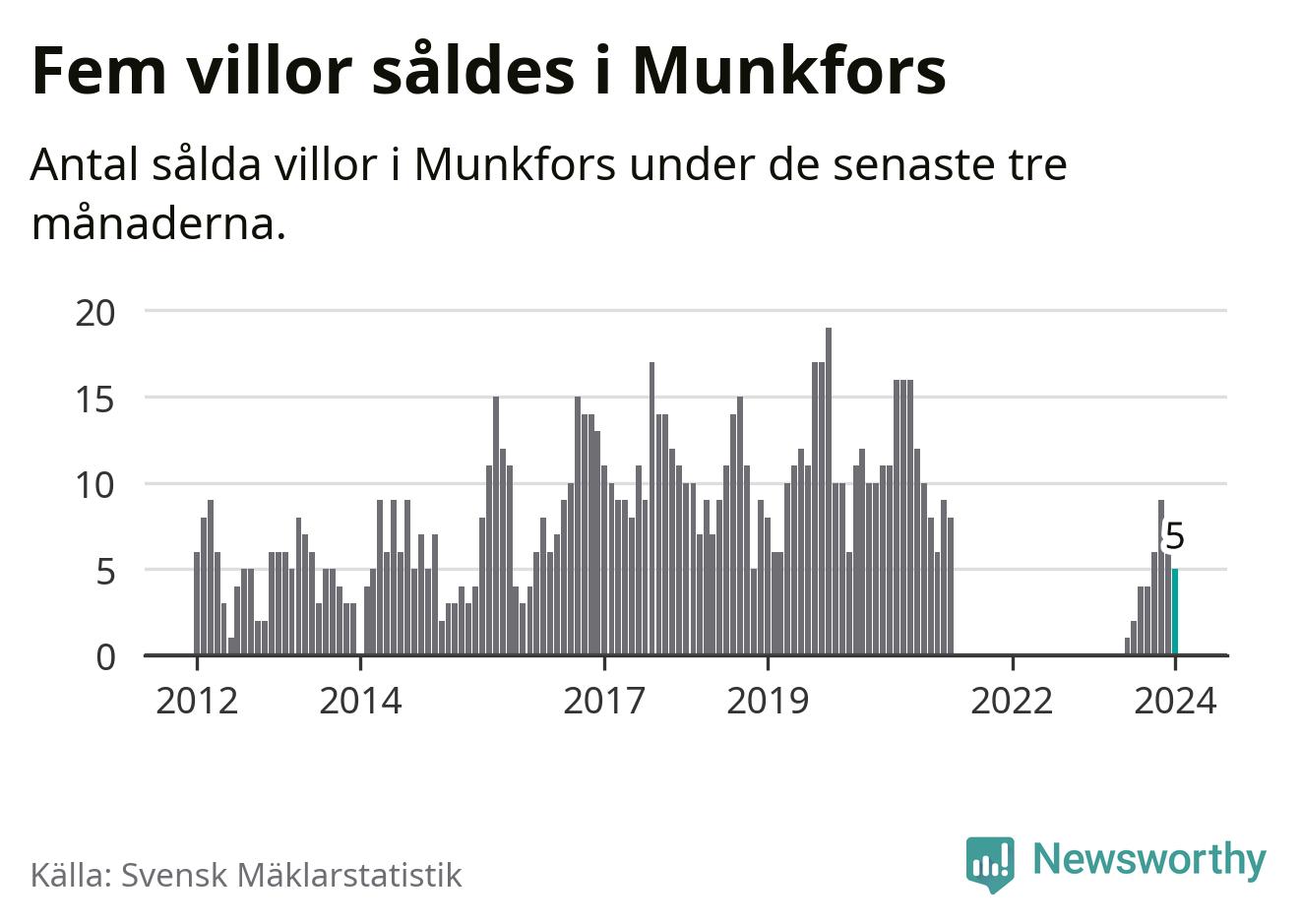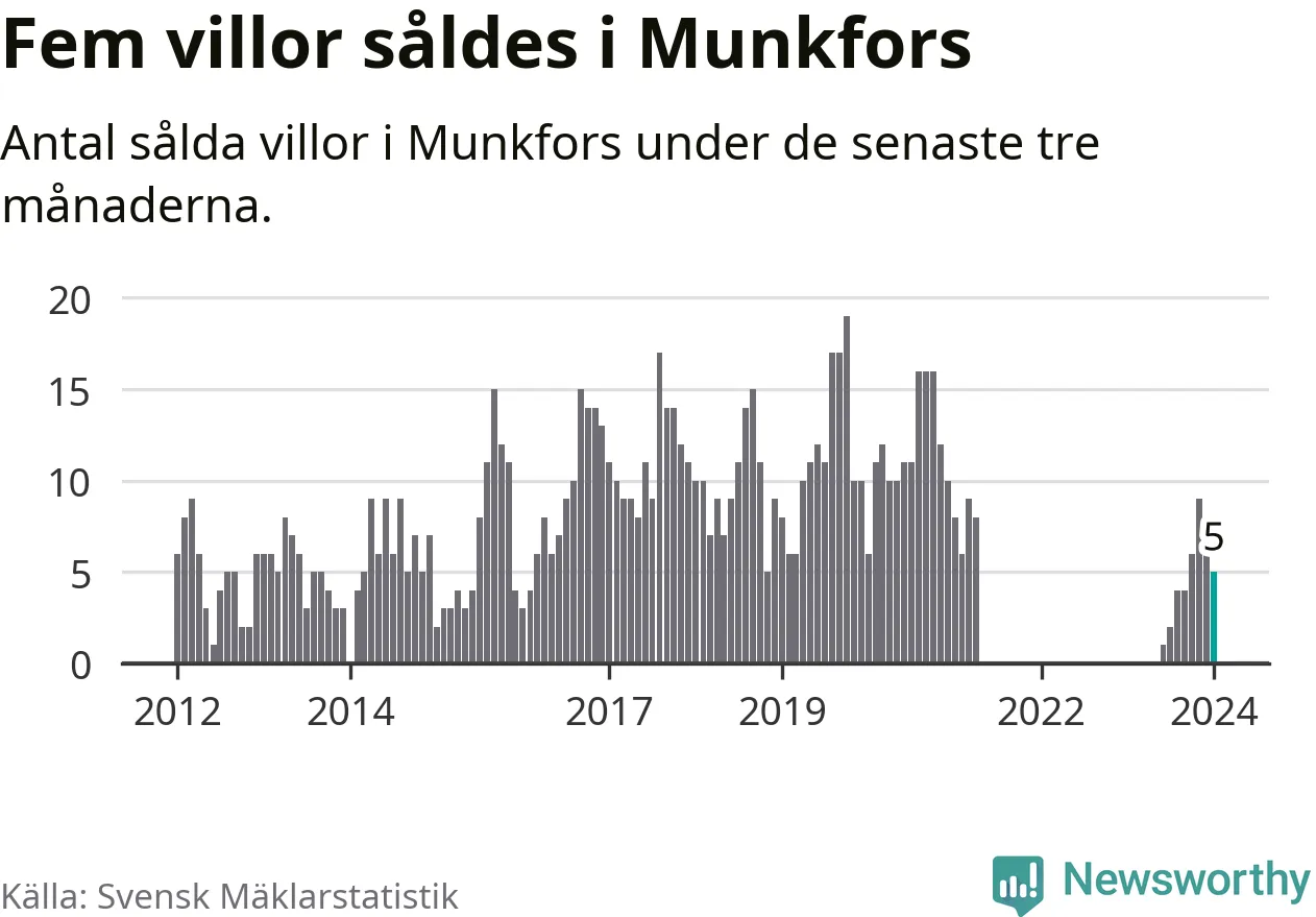 Graf: Antal sålda villor i Munkfors kommun