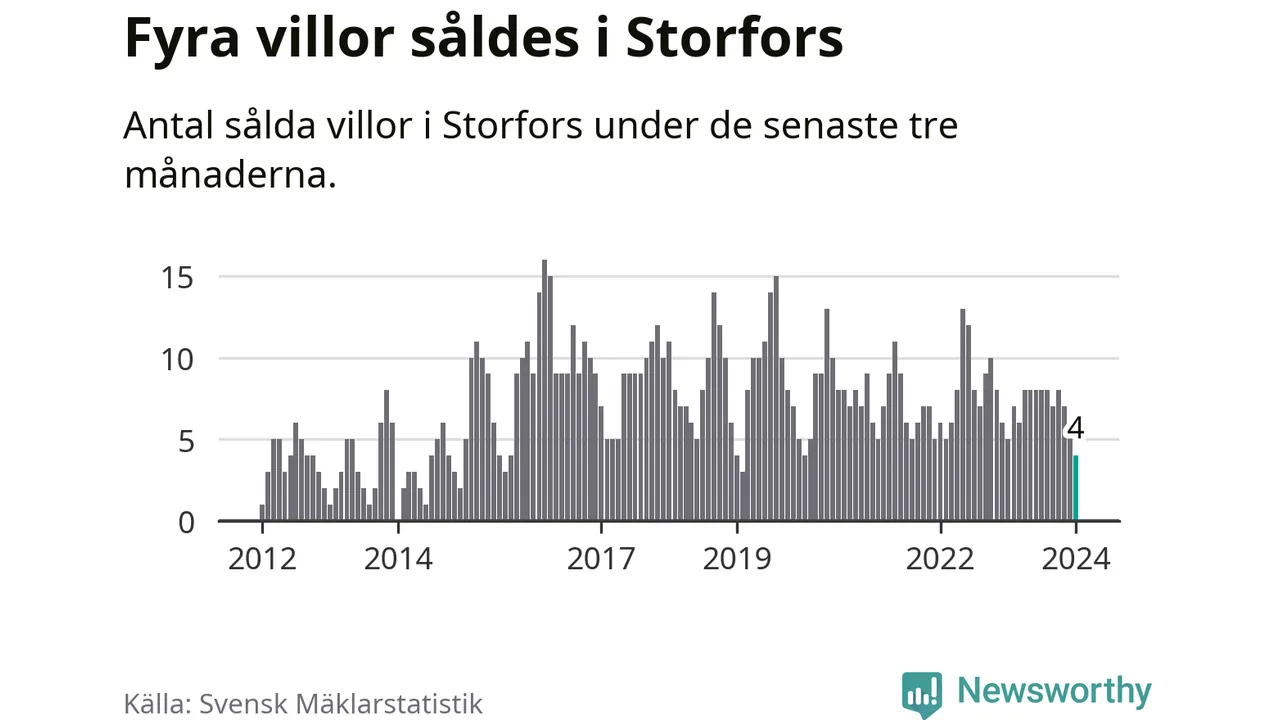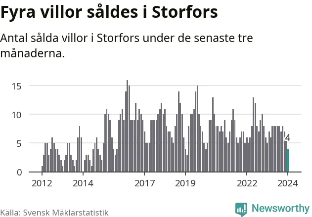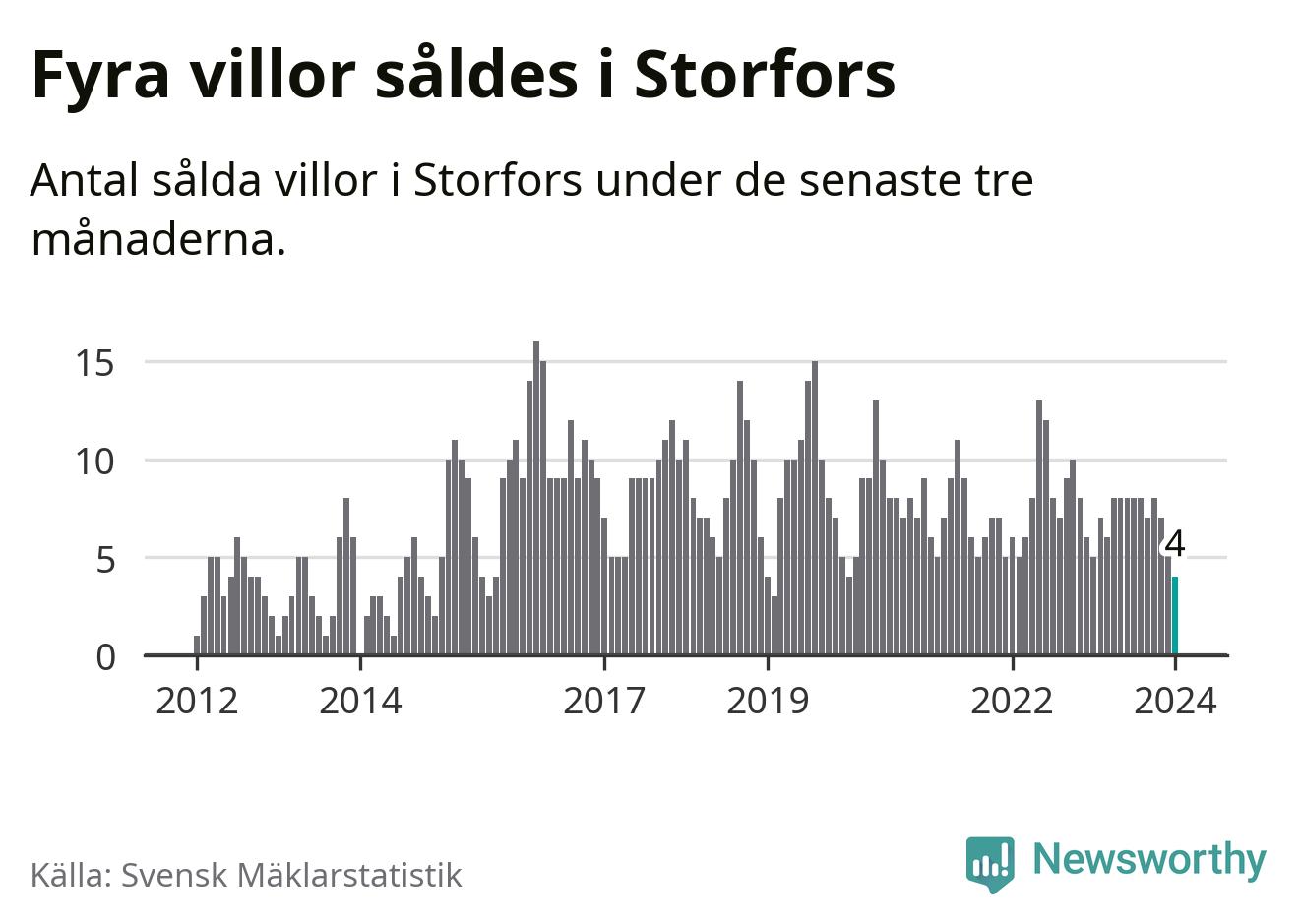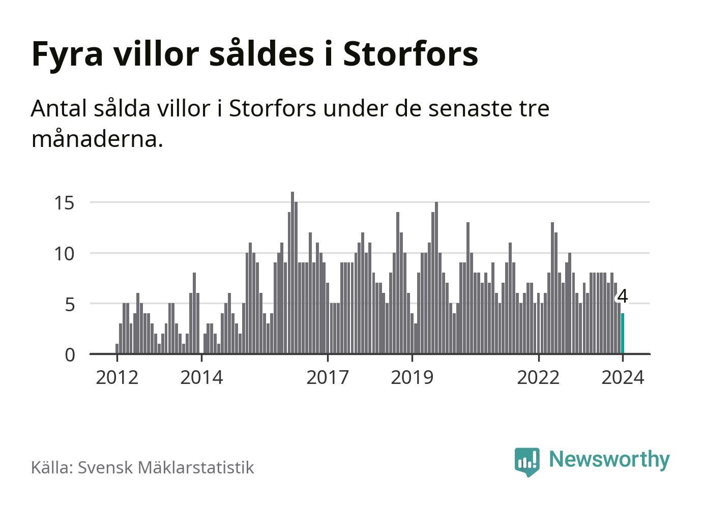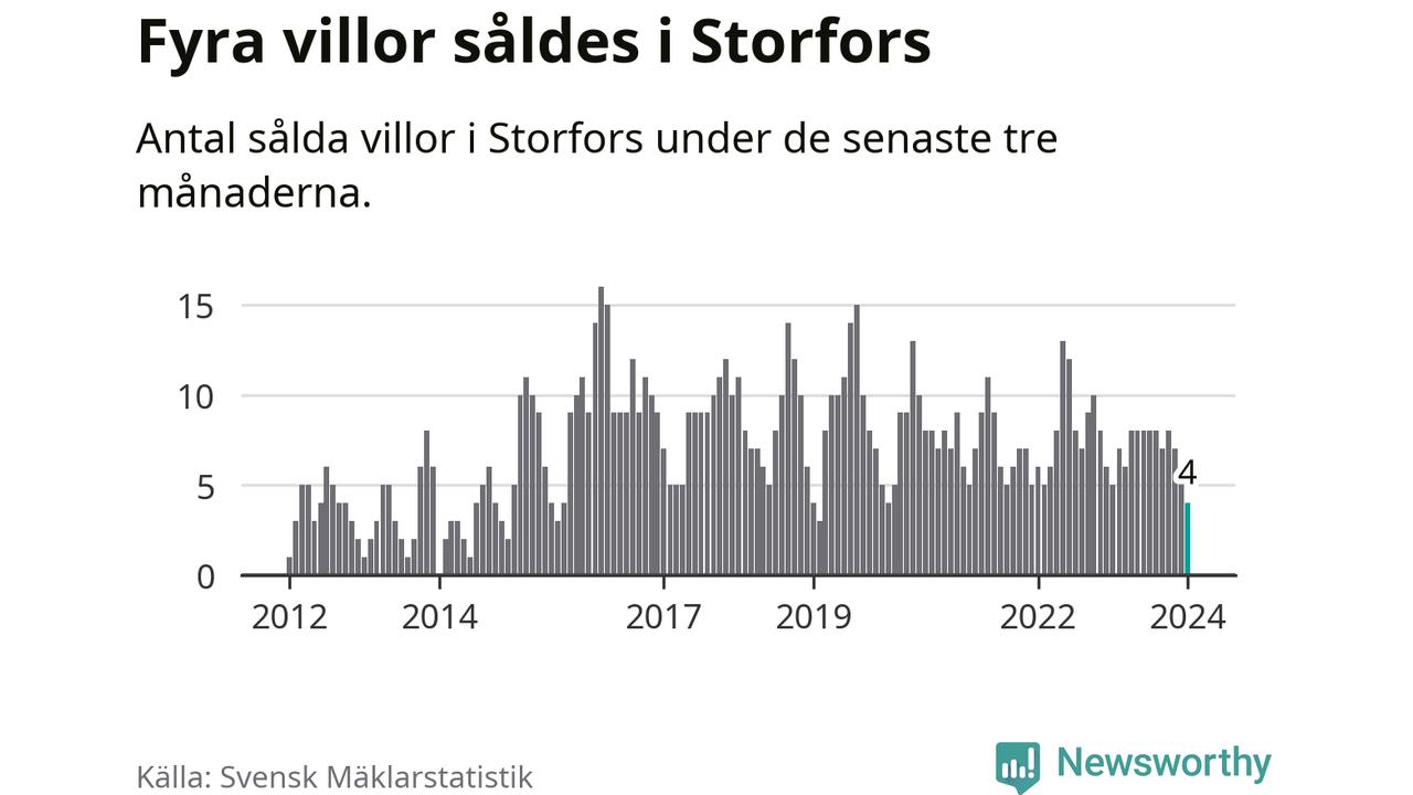 Mellan november och januari gjordes sammanlagt fyra affärer med villor i Storfors kommun. Det kan jämföras med fem vid motsvarande tid i fjol.