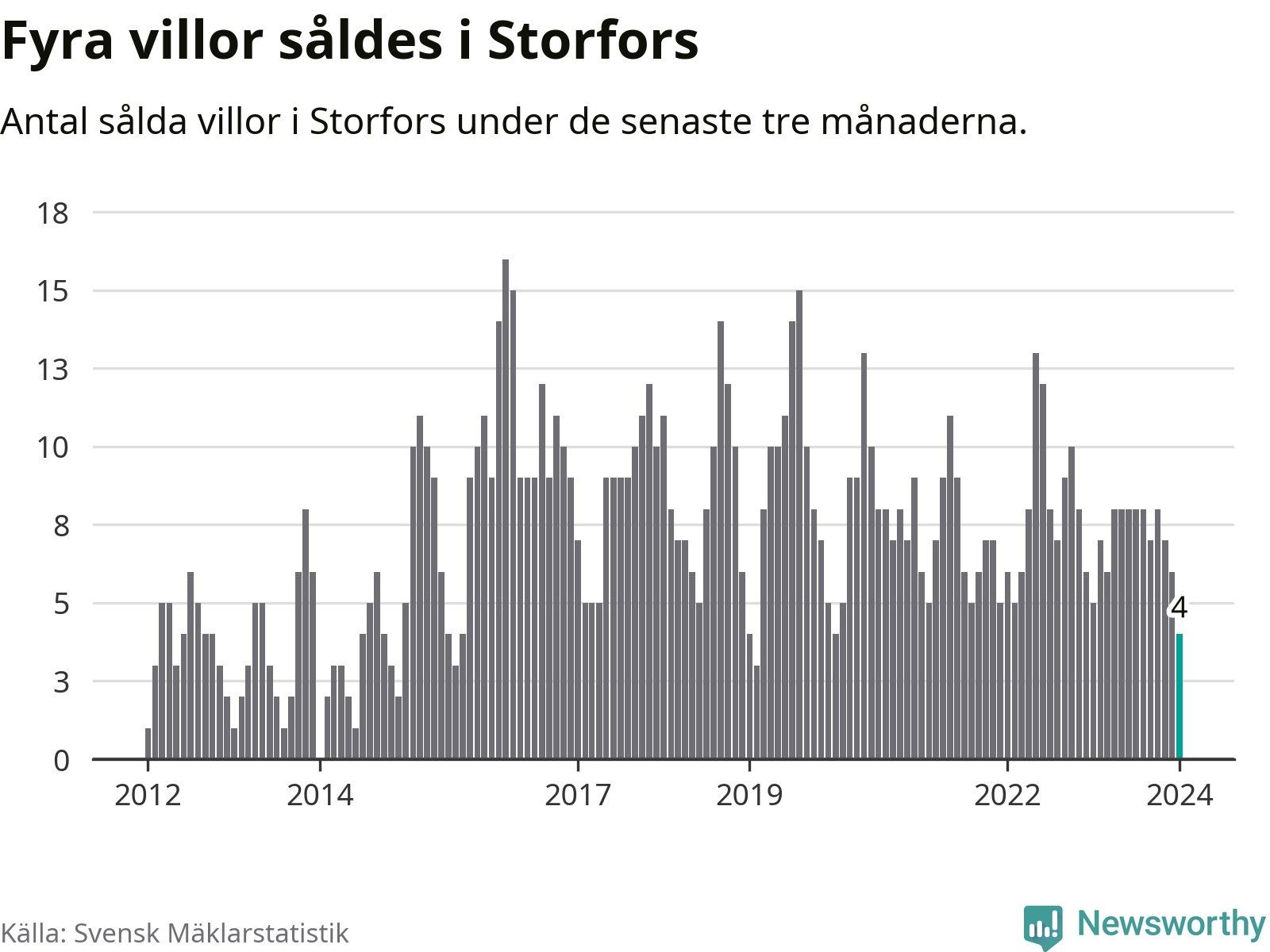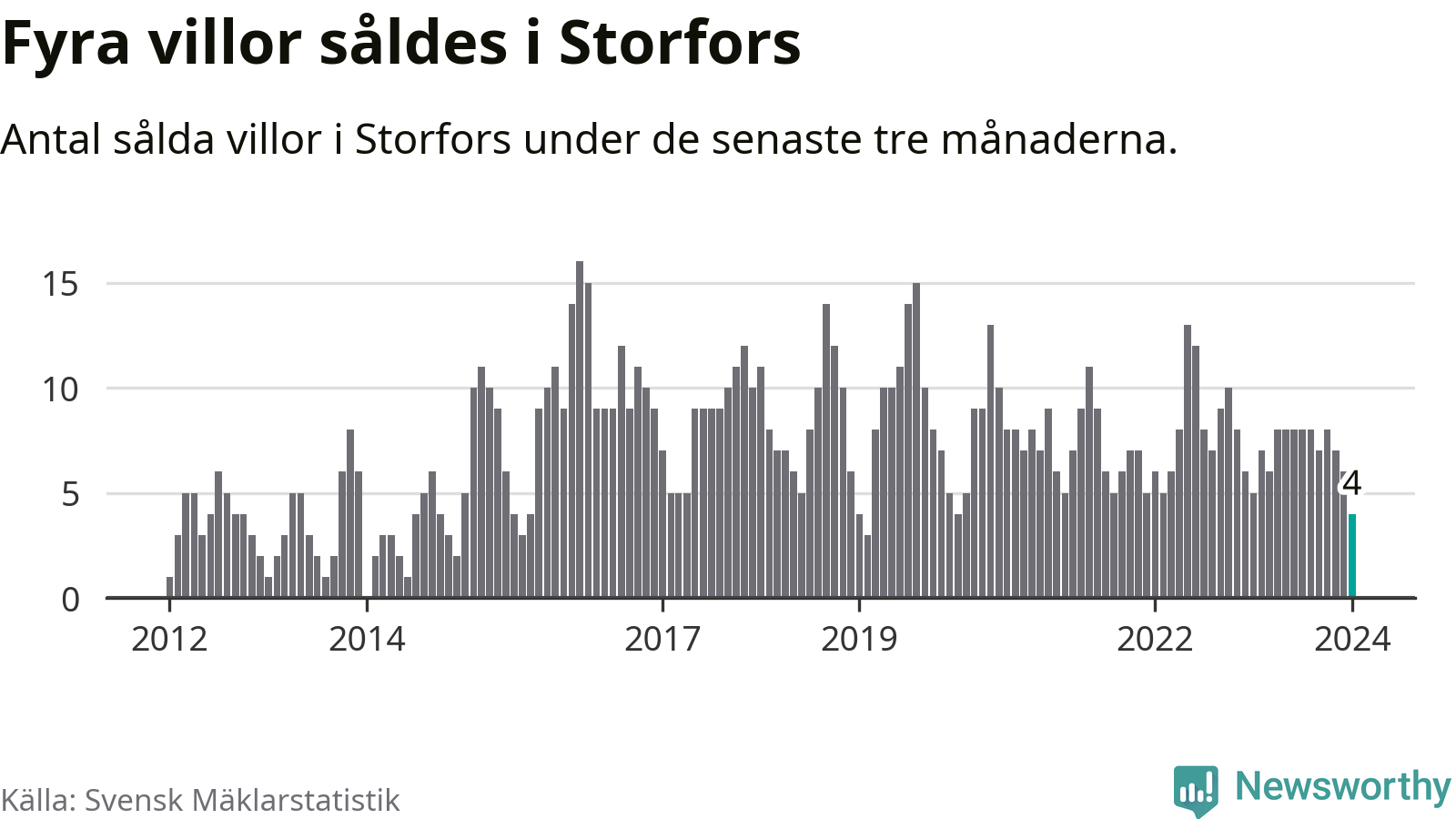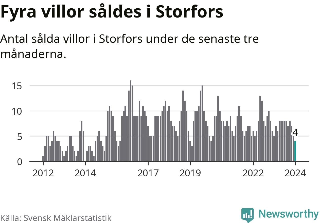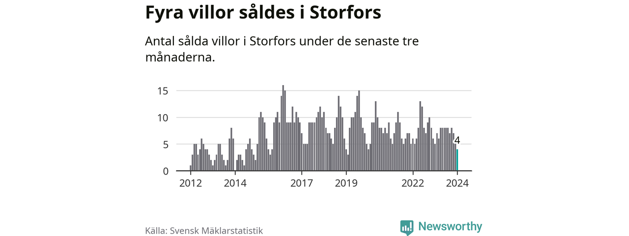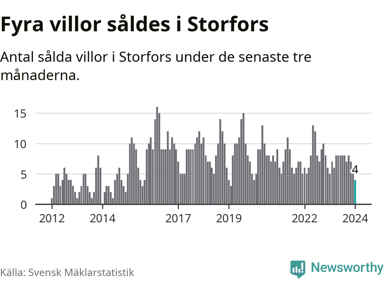 Mellan november och januari gjordes sammanlagt fyra affärer med villor i Storfors kommun. Det kan jämföras med fem vid motsvarande tid i fjol.